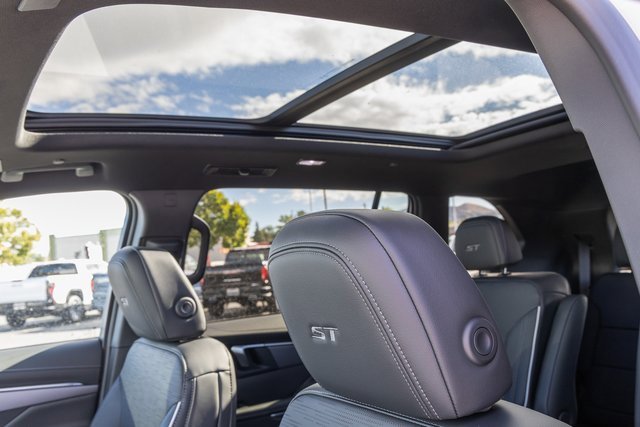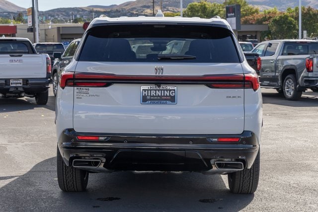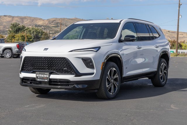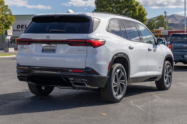 FWD. Front Mounting License Plate Bracket Package, Power Package (110-Volt Power Outlet, 2nd Row 1-Touch Flat Folding Seat, 3rd Row 60/40 Power Split-Folding Bench, Head-Up Display, Heated Wiper Park, Inside Rearview Auto-Dimming Rear Camera Mirror, Memory Settings, and Universal Home Remote), Preferred Equipment Group 1SM, FWD, 12 Speakers, 3rd row seats: split-bench, 4-Wheel Disc Brakes, ABS brakes, Air Conditioning, Alloy wheels, AM/FM radio: SiriusXM with 360L, Apple CarPlay/Android Auto, Auto High-beam Headlights, Auto-dimming door mirrors, Auto-dimming Rear-View mirror, Automatic temperature control, Bose Premium 12-Speaker Audio System, Brake assist, Bumpers: body-color, Compass, Delay-off headlights, Driver 4-Way Power Lumbar Seat Adjuster, Driver 8-Way Power Seat Adjuster, Driver door bin, Driver vanity mirror, Dual front impact airbags, Dual front side impact airbags, Electronic Stability Control, Emergency communication system: OnStar and Buick connected services capable, Four wheel independent suspension, Front anti-roll bar, Front Bucket Seats, Front Center Armrest, Front dual zone A/C, Front Passenger 4-Way Power Lumbar Seat Adjuster, Front Passenger 6-Way Power Seat Adjuster, Front reading lights, Fully automatic headlights, Heated door mirrors, Heated Driver & Front Passenger Seats, Heated front seats, Heated steering wheel, Illuminated entry, Leather steering wheel, Low tire pressure warning, Navigation System, Occupant sensing airbag, Outside temperature display, Overhead airbag, Overhead console, Panic alarm, Passenger door bin, Passenger vanity mirror, Perforated Leatherette Seat Trim, Power door mirrors, Power driver seat, Power Liftgate, Power Panoramic Sunroof w/Sunshade, Power passenger seat, Power steering, Power windows, Premium audio system: Buick Infotainment System, Radio data system, Radio: Infotainment Center, Rear air conditioning, Rear anti-roll bar, Rear reading lights, Rear side impact airbag, Rear window defroster, Rear window wiper, Remote keyless entry, Security system, SiriusXM w/360L Trial Subscription, Speed control, Speed-sensing steering, Spoiler, Sport steering wheel, Steering wheel mounted audio controls, Tachometer, Telescoping steering wheel, Tilt steering wheel, Traction control, Trip computer, Turn signal indicator mirrors, Variably intermittent wipers, Voltmeter, Wheels: 20 Alloy w/High Gloss Black, Wireless Apple CarPlay, and Wireless Google Android Auto.