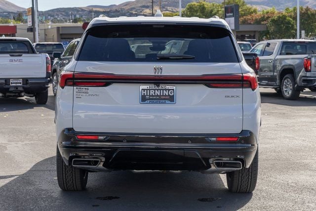 AWD. Front Mounting License Plate Bracket Package, Power Package (110-Volt Power Outlet, 2nd Row 1-Touch Flat Folding Seat, 3rd Row 60/40 Power Split-Folding Bench Seat, Head-Up Display, Heated Wiper Park, Inside Rearview Auo-Dimming Rear Camera Mirror, Memory Settings, and Universal Home Remote), Preferred Equipment Group 1SM, AWD, 12 Speakers, 3rd row seats: split-bench, 4-Wheel Disc Brakes, ABS brakes, Air Conditioning, Alloy wheels, AM/FM radio: SiriusXM with 360L, Apple CarPlay/Android Auto, Auto High-beam Headlights, Auto-dimming door mirrors, Auto-dimming Rear-View mirror, Automatic temperature control, Bose Premium 12-Speaker Audio System with Subwoofer, Brake assist, Bumpers: body-color, Compass, Delay-off headlights, Driver 4-Way Power Lumbar Seat Adjuster, Driver 8-Way Power Seat Adjuster, Driver door bin, Driver vanity mirror, Dual front impact airbags, Dual front side impact airbags, Electronic Stability Control, Emergency communication system: OnStar and Buick connected services capable, Four wheel independent suspension, Front anti-roll bar, Front Bucket Seats, Front Center Armrest, Front dual zone A/C, Front Passenger 4-Way Power Lumbar Seat Adjuster, Front Passenger 6-Way Power Seat Adjuster, Front reading lights, Fully automatic headlights, Heated door mirrors, Heated Driver and Front Passenger Seats, Heated front seats, Heated steering wheel, Illuminated entry, Leather steering wheel, Low tire pressure warning, Navigation System, Occupant sensing airbag, Outside temperature display, Overhead airbag, Overhead console, Panic alarm, Passenger door bin, Passenger vanity mirror, Perforated Leatherette Seat Trim, Power door mirrors, Power driver seat, Power Liftgate, Power Panoramic Sunroof with Sunshade, Power passenger seat, Power steering, Power windows, Premium audio system: Buick Infotainment System, Radio data system, Radio: Infotainment Center, Rear air conditioning, Rear anti-roll bar, Rear reading lights, Rear side impact airbag, Rear window defroster, Rear window wiper, Remote keyless entry, Security system, SiriusXM with 360L Trial Subscription, Speed control, Speed-sensing steering, Spoiler, Sport steering wheel, Steering wheel mounted audio controls, Tachometer, Telescoping steering wheel, Tilt steering wheel, Traction control, Trip computer, Turn signal indicator mirrors, Variably intermittent wipers, Voltmeter, Wheels: 20 Alloy with High Gloss Black and Machine Finish, Wireless Apple CarPlay, and Wireless Google Android Auto.