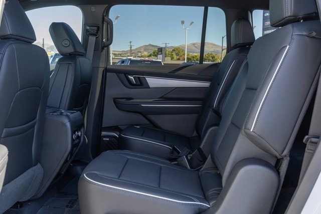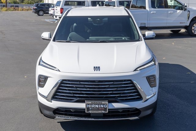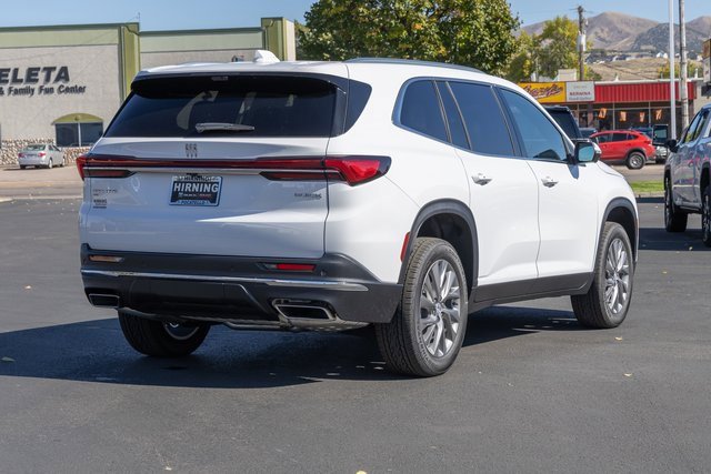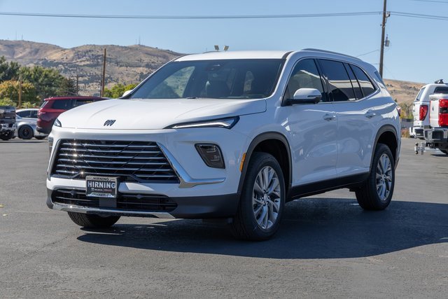 FWD. Front Mounting License Plate Bracket Package, Power Package (110-Volt Power Outlet, 2nd Row 1-Touch Flat Folding Seat, 3rd Row 60/40 Power Split-Folding Bench, Head-Up Display, Heated Wiper Park, Inside Rearview Auto-Dimming Rear Camera Mirror, Memory Settings, and Universal Home Remote), Preferred Equipment Group 1SD, FWD, 12 Speakers, 3rd row seats: split-bench, 4-Wheel Disc Brakes, ABS brakes, Air Conditioning, Alloy wheels, AM/FM radio: SiriusXM with 360L, Apple CarPlay/Android Auto, Auto High-beam Headlights, Auto-dimming door mirrors, Auto-dimming Rear-View mirror, Automatic temperature control, Bose Premium 12-Speaker Audio System, Brake assist, Bumpers: body-color, Compass, Delay-off headlights, Driver 4-Way Power Lumbar Seat Adjuster, Driver 8-Way Power Seat Adjuster, Driver door bin, Driver vanity mirror, Dual front impact airbags, Dual front side impact airbags, Electronic Stability Control, Emergency communication system: OnStar and Buick connected services capable, Four wheel independent suspension, Front anti-roll bar, Front Bucket Seats, Front Center Armrest, Front dual zone A/C, Front Passenger 4-Way Power Lumbar Seat Adjuster, Front Passenger 6-Way Power Seat Adjuster, Front reading lights, Fully automatic headlights, Heated door mirrors, Heated Driver & Front Passenger Seats, Heated front seats, Heated steering wheel, Illuminated entry, Leather steering wheel, Leatherette Seat Trim, Low tire pressure warning, Navigation System, Occupant sensing airbag, Outside temperature display, Overhead airbag, Overhead console, Panic alarm, Passenger door bin, Passenger vanity mirror, Power door mirrors, Power driver seat, Power Liftgate, Power passenger seat, Power steering, Power windows, Premium audio system: Buick Infotainment System, Radio data system, Radio: Infotainment Center, Rear air conditioning, Rear anti-roll bar, Rear reading lights, Rear side impact airbag, Rear window defroster, Rear window wiper, Remote keyless entry, Security system, SiriusXM w/360L Trial Subscription, Speed control, Speed-sensing steering, Spoiler, Steering wheel mounted audio controls, Tachometer, Telescoping steering wheel, Tilt steering wheel, Traction control, Trip computer, Turn signal indicator mirrors, Variably intermittent wipers, Voltmeter, Wheels: 20 Alloy w/Medium Android Finish, Wireless Apple CarPlay, and Wireless Google Android Auto.