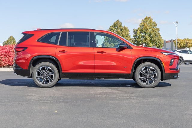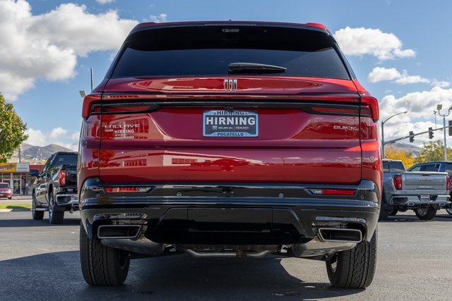 FWD. Front Mounting License Plate Bracket Package, Power Package (110-Volt Power Outlet, 2nd Row 1-Touch Flat Folding Seat, 3rd Row 60/40 Power Split-Folding Bench, Head-Up Display, Heated Wiper Park, Inside Rearview Auto-Dimming Rear Camera Mirror, Memory Settings, and Universal Home Remote), Preferred Equipment Group 1SM, FWD, 12 Speakers, 3rd row seats: split-bench, 4-Wheel Disc Brakes, ABS brakes, Air Conditioning, Alloy wheels, AM/FM radio: SiriusXM with 360L, Apple CarPlay/Android Auto, Auto High-beam Headlights, Auto-dimming door mirrors, Auto-dimming Rear-View mirror, Automatic temperature control, Bose Premium 12-Speaker Audio System, Brake assist, Bumpers: body-color, Compass, Delay-off headlights, Driver 4-Way Power Lumbar Seat Adjuster, Driver 8-Way Power Seat Adjuster, Driver door bin, Driver vanity mirror, Dual front impact airbags, Dual front side impact airbags, Electronic Stability Control, Emergency communication system: OnStar and Buick connected services capable, Four wheel independent suspension, Front anti-roll bar, Front Bucket Seats, Front Center Armrest, Front dual zone A/C, Front Passenger 4-Way Power Lumbar Seat Adjuster, Front Passenger 6-Way Power Seat Adjuster, Front reading lights, Fully automatic headlights, Heated door mirrors, Heated Driver & Front Passenger Seats, Heated front seats, Heated steering wheel, Illuminated entry, Leather steering wheel, Low tire pressure warning, Navigation System, Occupant sensing airbag, Outside temperature display, Overhead airbag, Overhead console, Panic alarm, Passenger door bin, Passenger vanity mirror, Perforated Leatherette Seat Trim, Power door mirrors, Power driver seat, Power Liftgate, Power Panoramic Sunroof w/Sunshade, Power passenger seat, Power steering, Power windows, Premium audio system: Buick Infotainment System, Radio data system, Radio: Infotainment Center, Rear air conditioning, Rear anti-roll bar, Rear reading lights, Rear side impact airbag, Rear window defroster, Rear window wiper, Remote keyless entry, Security system, SiriusXM w/360L Trial Subscription, Speed control, Speed-sensing steering, Spoiler, Sport steering wheel, Steering wheel mounted audio controls, Tachometer, Telescoping steering wheel, Tilt steering wheel, Traction control, Trip computer, Turn signal indicator mirrors, Variably intermittent wipers, Voltmeter, Wheels: 20 Alloy w/High Gloss Black, Wireless Apple CarPlay, and Wireless Google Android Auto.