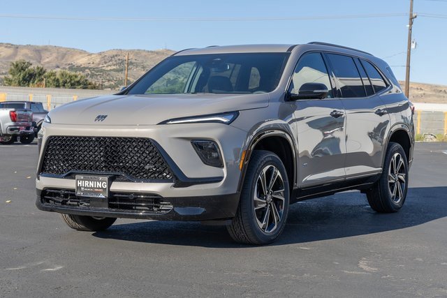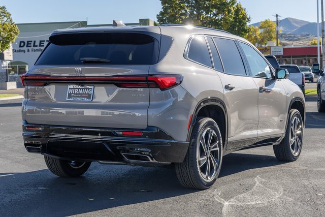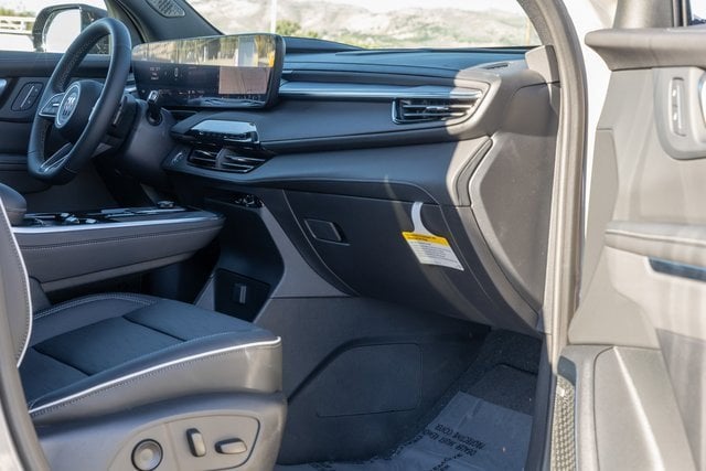 FWD. Front Mounting License Plate Bracket Package, Preferred Equipment Group 1SM, FWD, 12 Speakers, 3rd row seats: split-bench, 4-Wheel Disc Brakes, ABS brakes, Air Conditioning, Alloy wheels, AM/FM radio: SiriusXM with 360L, Apple CarPlay/Android Auto, Auto High-beam Headlights, Auto-dimming door mirrors, Auto-dimming Rear-View mirror, Automatic temperature control, Bose Premium 12-Speaker Audio System, Brake assist, Bumpers: body-color, Compass, Delay-off headlights, Driver 4-Way Power Lumbar Seat Adjuster, Driver 8-Way Power Seat Adjuster, Driver door bin, Driver vanity mirror, Dual front impact airbags, Dual front side impact airbags, Electronic Stability Control, Emergency communication system: OnStar and Buick connected services capable, Four wheel independent suspension, Front anti-roll bar, Front Bucket Seats, Front Center Armrest, Front dual zone A/C, Front Passenger 4-Way Power Lumbar Seat Adjuster, Front Passenger 6-Way Power Seat Adjuster, Front reading lights, Fully automatic headlights, Heated door mirrors, Heated Driver & Front Passenger Seats, Heated front seats, Heated steering wheel, Illuminated entry, Leather steering wheel, Low tire pressure warning, Navigation System, Occupant sensing airbag, Outside temperature display, Overhead airbag, Overhead console, Panic alarm, Passenger door bin, Passenger vanity mirror, Perforated Leatherette Seat Trim, Power door mirrors, Power driver seat, Power Liftgate, Power passenger seat, Power steering, Power windows, Premium audio system: Buick Infotainment System, Radio data system, Radio: Infotainment Center, Rear air conditioning, Rear anti-roll bar, Rear reading lights, Rear side impact airbag, Rear window defroster, Rear window wiper, Remote keyless entry, Security system, SiriusXM w/360L Trial Subscription, Speed control, Speed-sensing steering, Spoiler, Sport steering wheel, Steering wheel mounted audio controls, Tachometer, Telescoping steering wheel, Tilt steering wheel, Traction control, Trip computer, Turn signal indicator mirrors, Variably intermittent wipers, Voltmeter, Wheels: 20 Alloy w/High Gloss Black, Wireless Apple CarPlay, and Wireless Google Android Auto.