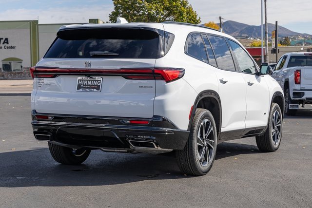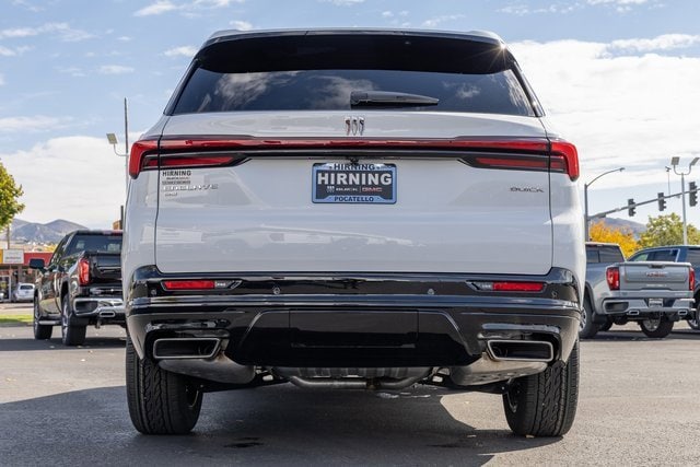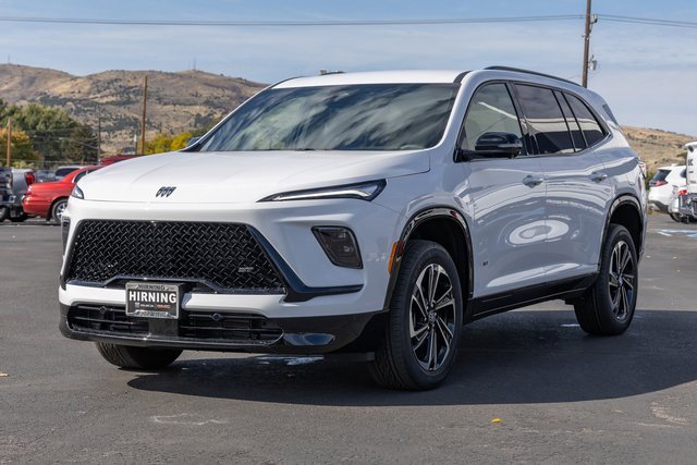 FWD. Front Mounting License Plate Bracket Package, Preferred Equipment Group 1SM, FWD, 12 Speakers, 3rd row seats: split-bench, 4-Wheel Disc Brakes, ABS brakes, Air Conditioning, Alloy wheels, AM/FM radio: SiriusXM with 360L, Apple CarPlay/Android Auto, Auto High-beam Headlights, Auto-dimming door mirrors, Auto-dimming Rear-View mirror, Automatic temperature control, Bose Premium 12-Speaker Audio System, Brake assist, Bumpers: body-color, Compass, Delay-off headlights, Driver 4-Way Power Lumbar Seat Adjuster, Driver 8-Way Power Seat Adjuster, Driver door bin, Driver vanity mirror, Dual front impact airbags, Dual front side impact airbags, Electronic Stability Control, Emergency communication system: OnStar and Buick connected services capable, Four wheel independent suspension, Front anti-roll bar, Front Bucket Seats, Front Center Armrest, Front dual zone A/C, Front Passenger 4-Way Power Lumbar Seat Adjuster, Front Passenger 6-Way Power Seat Adjuster, Front reading lights, Fully automatic headlights, Heated door mirrors, Heated Driver & Front Passenger Seats, Heated front seats, Heated steering wheel, Illuminated entry, Leather steering wheel, Low tire pressure warning, Navigation System, Occupant sensing airbag, Outside temperature display, Overhead airbag, Overhead console, Panic alarm, Passenger door bin, Passenger vanity mirror, Perforated Leatherette Seat Trim, Power door mirrors, Power driver seat, Power Liftgate, Power passenger seat, Power steering, Power windows, Premium audio system: Buick Infotainment System, Radio data system, Radio: Infotainment Center, Rear air conditioning, Rear anti-roll bar, Rear reading lights, Rear side impact airbag, Rear window defroster, Rear window wiper, Remote keyless entry, Security system, SiriusXM w/360L Trial Subscription, Speed control, Speed-sensing steering, Spoiler, Sport steering wheel, Steering wheel mounted audio controls, Tachometer, Telescoping steering wheel, Tilt steering wheel, Traction control, Trip computer, Turn signal indicator mirrors, Variably intermittent wipers, Voltmeter, Wheels: 20 Alloy w/High Gloss Black, Wireless Apple CarPlay, and Wireless Google Android Auto.