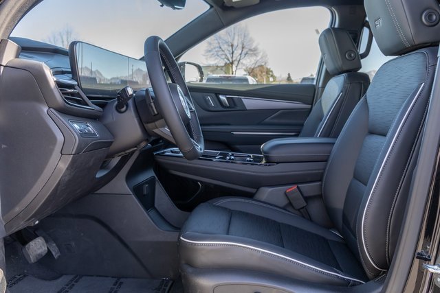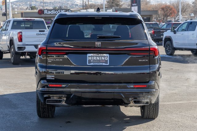 FWD. Front Mounting License Plate Bracket Package, Power Package (110-Volt Power Outlet, 2nd Row 1-Touch Flat Folding Seat, 3rd Row 60/40 Power Split-Folding Bench Seat, Head-Up Display, Heated Wiper Park, Inside Rearview Auo-Dimming Rear Camera Mirror, Memory Settings, and Universal Home Remote), Preferred Equipment Group 1SM, FWD, 12 Speakers, 3rd row seats: split-bench, 4-Wheel Disc Brakes, ABS brakes, Air Conditioning, Alloy wheels, AM/FM radio: SiriusXM with 360L, Apple CarPlay/Android Auto, Auto High-beam Headlights, Auto-dimming door mirrors, Auto-dimming Rear-View mirror, Automatic temperature control, Bose Premium 12-Speaker Audio System with Subwoofer, Brake assist, Bumpers: body-color, Compass, Delay-off headlights, Driver 4-Way Power Lumbar Seat Adjuster, Driver 8-Way Power Seat Adjuster, Driver door bin, Driver vanity mirror, Dual front impact airbags, Dual front side impact airbags, Electronic Stability Control, Emergency communication system: OnStar and Buick connected services capable, Four wheel independent suspension, Front anti-roll bar, Front Bucket Seats, Front Center Armrest, Front dual zone A/C, Front Passenger 4-Way Power Lumbar Seat Adjuster, Front Passenger 6-Way Power Seat Adjuster, Front reading lights, Fully automatic headlights, Heated door mirrors, Heated Driver and Front Passenger Seats, Heated front seats, Heated steering wheel, Illuminated entry, Leather steering wheel, Low tire pressure warning, Navigation System, Occupant sensing airbag, Outside temperature display, Overhead airbag, Overhead console, Panic alarm, Passenger door bin, Passenger vanity mirror, Perforated Leatherette Seat Trim, Power door mirrors, Power driver seat, Power Liftgate, Power Panoramic Sunroof with Sunshade, Power passenger seat, Power steering, Power windows, Premium audio system: Buick Infotainment System, Radio data system, Radio: Infotainment Center, Rear air conditioning, Rear anti-roll bar, Rear reading lights, Rear side impact airbag, Rear window defroster, Rear window wiper, Remote keyless entry, Security system, SiriusXM with 360L Trial Subscription, Speed control, Speed-sensing steering, Spoiler, Sport steering wheel, Steering wheel mounted audio controls, Tachometer, Telescoping steering wheel, Tilt steering wheel, Traction control, Trip computer, Turn signal indicator mirrors, Variably intermittent wipers, Voltmeter, Wheels: 20 Alloy with High Gloss Black and Machine Finish, Wireless Apple CarPlay, and Wireless Google Android Auto.