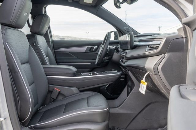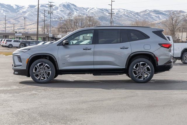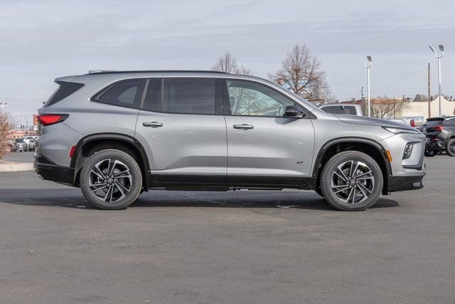 AWD. Front Mounting License Plate Bracket Package, Power Package (110-Volt Power Outlet, 2nd Row 1-Touch Flat Folding Seat, 3rd Row 60/40 Power Split-Folding Bench Seat, Head-Up Display, Heated Wiper Park, Inside Rearview Auo-Dimming Rear Camera Mirror, Memory Settings, and Universal Home Remote), Preferred Equipment Group 1SM, AWD, 12 Speakers, 3rd row seats: split-bench, 4-Wheel Disc Brakes, ABS brakes, Air Conditioning, Alloy wheels, AM/FM radio: SiriusXM with 360L, Apple CarPlay/Android Auto, Auto High-beam Headlights, Auto-dimming door mirrors, Auto-dimming Rear-View mirror, Automatic temperature control, Bose Premium 12-Speaker Audio System with Subwoofer, Brake assist, Bumpers: body-color, Compass, Delay-off headlights, Driver 4-Way Power Lumbar Seat Adjuster, Driver 8-Way Power Seat Adjuster, Driver door bin, Driver vanity mirror, Dual front impact airbags, Dual front side impact airbags, Electronic Stability Control, Emergency communication system: OnStar and Buick connected services capable, Four wheel independent suspension, Front anti-roll bar, Front Bucket Seats, Front Center Armrest, Front dual zone A/C, Front Passenger 4-Way Power Lumbar Seat Adjuster, Front Passenger 6-Way Power Seat Adjuster, Front reading lights, Fully automatic headlights, Heated door mirrors, Heated Driver and Front Passenger Seats, Heated front seats, Heated steering wheel, Illuminated entry, Leather steering wheel, Low tire pressure warning, Navigation System, Occupant sensing airbag, Outside temperature display, Overhead airbag, Overhead console, Panic alarm, Passenger door bin, Passenger vanity mirror, Perforated Leatherette Seat Trim, Power door mirrors, Power driver seat, Power Liftgate, Power Panoramic Sunroof with Sunshade, Power passenger seat, Power steering, Power windows, Premium audio system: Buick Infotainment System, Radio data system, Radio: Infotainment Center, Rear air conditioning, Rear anti-roll bar, Rear reading lights, Rear side impact airbag, Rear window defroster, Rear window wiper, Remote keyless entry, Security system, SiriusXM with 360L Trial Subscription, Speed control, Speed-sensing steering, Spoiler, Sport steering wheel, Steering wheel mounted audio controls, Tachometer, Telescoping steering wheel, Tilt steering wheel, Traction control, Trip computer, Turn signal indicator mirrors, Variably intermittent wipers, Voltmeter, Wheels: 20 Alloy with High Gloss Black and Machine Finish, Wireless Apple CarPlay, and Wireless Google Android Auto.