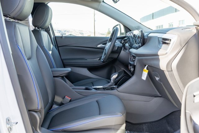 3.17 Final Drive Axle Ratio, 4-Way Manual Passenger Seat Adjuster, 4-Wheel Disc Brakes, 6-Way Manual Driver Seat Adjuster, 7 Speakers, ABS brakes, Air Conditioning, Alloy wheels, AM/FM radio: SiriusXM, Auto High-beam Headlights, Automatic temperature control, Brake assist, Bumpers: body-color, Compass, Delay-off headlights, Driver door bin, Driver vanity mirror, Dual front impact airbags, Dual front side impact airbags, Electronic Stability Control, Emergency communication system: OnStar and Buick connected services capable, Enhanced Performance 7-Speaker System with Amplifier, Front anti-roll bar, Front Bucket Seats, Front Center Armrest, Front reading lights, Front wheel independent suspension, Fully automatic headlights, Heated door mirrors, Illuminated entry, Knee airbag, Leatherette Seat Trim, Low tire pressure warning, Occupant sensing airbag, Outside temperature display, Overhead airbag, Overhead console, Panic alarm, Passenger door bin, Passenger vanity mirror, Power door mirrors, Power steering, Power windows, Radio data system, Radio: AM/FM Audio System, Rear reading lights, Rear side impact airbag, Rear window defroster, Rear window wiper, Remote keyless entry, Ride and Handling Suspension, Security system, SiriusXM Trial Subscription, Speed control, Speed-sensing steering, Split folding rear seat, Spoiler, Sport steering wheel, Steering wheel mounted audio controls, Tachometer, Telescoping steering wheel, Tilt steering wheel, Traction control, Trip computer, Variably intermittent wipers, Wheels: 18 Gloss Black Aluminum, and Wireless Apple CarPlay/Wireless Android Auto.