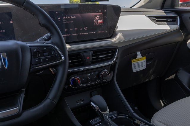 Comfort Package (2-Way Power Driver Lumbar Control, 8-Way Power Driver Seat Adjuster, Flat-Folding Front Passenger Seatback, Heated Driver & Front Passenger Seats, Heated Steering Wheel, and Rear Center Armrest), Preferred Equipment Group 1SD, 3.17 Final Drive Axle Ratio, 4-Way Manual Passenger Seat Adjuster, 4-Wheel Disc Brakes, 6-Way Manual Driver Seat Adjuster, 7 Speakers, ABS brakes, Air Conditioning, Alloy wheels, AM/FM radio: SiriusXM, Auto High-beam Headlights, Automatic temperature control, Brake assist, Bumpers: body-color, Compass, Delay-off headlights, Driver door bin, Driver vanity mirror, Dual front impact airbags, Dual front side impact airbags, Electronic Stability Control, Emergency communication system: OnStar and Buick connected services capable, Enhanced Performance 7-Speaker System w/Amplifier, Front anti-roll bar, Front Bucket Seats, Front Center Armrest, Front License Plate Bracket, Front reading lights, Front wheel independent suspension, Fully automatic headlights, Heated door mirrors, Illuminated entry, Knee airbag, Leatherette Seat Trim, Low tire pressure warning, Mechanical Jack w/Tools, Occupant sensing airbag, Outside temperature display, Overhead airbag, Overhead console, Panic alarm, Passenger door bin, Passenger vanity mirror, Power door mirrors, Power steering, Power windows, Radio data system, Radio: AM/FM Audio System, Rear reading lights, Rear side impact airbag, Rear window defroster, Rear window wiper, Remote keyless entry, Ride & Handling Suspension, Security system, SiriusXM Trial Subscription, Speed control, Speed-sensing steering, Split folding rear seat, Spoiler, Sport steering wheel, Steering wheel mounted audio controls, Tachometer, Telescoping steering wheel, Tilt steering wheel, Traction control, Trip computer, Variably intermittent wipers, Wheels: 18 Gloss Black Aluminum, and Wireless Apple CarPlay/Wireless Android Auto.