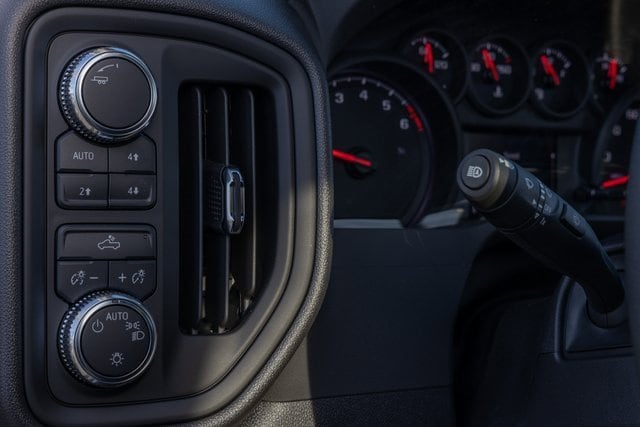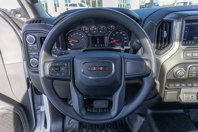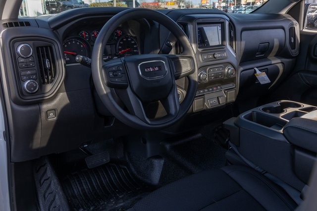10-Speed Automatic, 4WD, Black Cloth. Convenience Package (Deep-Tinted Glass, Electric Rear-Window Defogger, EZ Lift Power Lock & Release Tailgate, and LED Cargo Area Lighting), Preferred Equipment Group 1SA (2 Charge/Data USB Ports, 220 Amp Alternator, Chrome Header w/Flat Black Grille Insert Bars, Front Frame-Mounted Black Recovery Hooks, HD Rear Vision Camera, OnStar Services Capable, Power Door Locks, Power Front Windows w/Driver Express Up/Down, Power Front Windows w/Passenger Express Down, Push Button Start, Remote Keyless Entry, Solar Absorbing Tinted Glass, and Wi-Fi Hotspot Capable), Pro Value Package, Standard Suspension Package, Trailering Package (Hitch Guidance), 10-Speed Automatic, 4WD, Black Cloth, 170 Amp Alternator, 2 Speakers, 2-Speaker Audio System Feature, 4-Way Manual Driver Seat Adjuster, 4-Way Manual Passenger Seat Adjuster, 4-Wheel Disc Brakes, ABS brakes, Air Conditioning, AM/FM radio, Apple CarPlay/Android Auto, Auto High-beam Headlights, Auto-Locking Rear Differential, Automatic Emergency Braking, Auxiliary External Transmission Oil Cooler, Brake assist, Buckle to Drive, Bumpers: chrome, Compass, Delay-off headlights, Driver door bin, Dual front impact airbags, Dual front side impact airbags, Electronic Stability Control, Emergency communication system: OnStar, External Engine Oil Cooling, Following Distance Indicator, Forward Collision Alert, Front 40/20/40 Split-Bench Seat, Front anti-roll bar, Front Center Armrest w/Storage, Front License Plate Kit, Front Pedestrian Braking, Front reading lights, Front wheel independent suspension, Fully automatic headlights, Heated door mirrors, Illuminated entry, IntelliBeam Automatic High Beam On/Off, Lane Keep Assist w/Lane Departure Warning, Low tire pressure warning, Occupant sensing airbag, Outside temperature display, Overhead airbag, Overhead console, Panic alarm, Passenger door bin, Passenger vanity mirror, Power door mirrors, Power steering, Power windows, Radio data system, Radio: GMC Infotainment Audio System, Rear reading lights, Rear step bumper, Remote keyless entry, Speed control, Speed-sensing steering, Tachometer, Tilt steering wheel, Traction control, Trip computer, Upfitter Switch Kit (5), Variably intermittent wipers, Vinyl Seat Trim, Voltmeter, Wheels: 17 x 8 Silver Painted Steel, and Wireless Apple CarPlay/Wireless Android Auto.