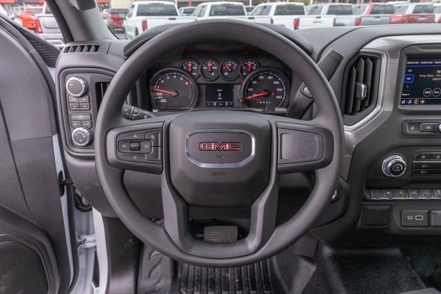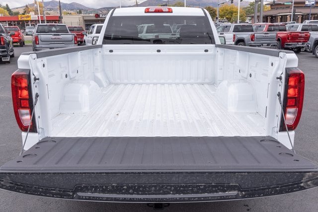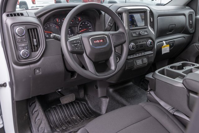 10-Speed Automatic, 4WD, Black Cloth. Convenience Package (Deep-Tinted Glass, Electric Rear-Window Defogger, EZ Lift Power Lock & Release Tailgate, and LED Cargo Area Lighting), Preferred Equipment Group 1SA (2 Charge/Data USB Ports, 220 Amp Alternator, Chrome Header w/Flat Black Grille Insert Bars, Front Frame-Mounted Black Recovery Hooks, HD Rear Vision Camera, OnStar Services Capable, Power Door Locks, Power Front Windows w/Driver Express Up/Down, Power Front Windows w/Passenger Express Down, Push Button Start, Remote Keyless Entry, Solar Absorbing Tinted Glass, and Wi-Fi Hotspot Capable), Pro Value Package, Standard Suspension Package, Trailering Package (Hitch Guidance), 10-Speed Automatic, 4WD, Black Cloth, 170 Amp Alternator, 2 Speakers, 2-Speaker Audio System Feature, 4-Way Manual Driver Seat Adjuster, 4-Way Manual Passenger Seat Adjuster, 4-Wheel Disc Brakes, ABS brakes, Air Conditioning, AM/FM radio, Apple CarPlay/Android Auto, Auto High-beam Headlights, Auto-Locking Rear Differential, Automatic Emergency Braking, Auxiliary External Transmission Oil Cooler, Brake assist, Buckle to Drive, Bumpers: chrome, Compass, Delay-off headlights, Driver door bin, Dual front impact airbags, Dual front side impact airbags, Electronic Stability Control, Emergency communication system: OnStar, External Engine Oil Cooling, Following Distance Indicator, Forward Collision Alert, Front 40/20/40 Split-Bench Seat, Front anti-roll bar, Front Center Armrest w/Storage, Front License Plate Kit, Front Pedestrian Braking, Front reading lights, Front wheel independent suspension, Fully automatic headlights, Heated door mirrors, Illuminated entry, IntelliBeam Automatic High Beam On/Off, Lane Keep Assist w/Lane Departure Warning, Low tire pressure warning, Occupant sensing airbag, Outside temperature display, Overhead airbag, Overhead console, Panic alarm, Passenger door bin, Passenger vanity mirror, Power door mirrors, Power steering, Power windows, Radio data system, Radio: GMC Infotainment Audio System, Rear reading lights, Rear step bumper, Remote keyless entry, Speed control, Speed-sensing steering, Tachometer, Tilt steering wheel, Traction control, Trip computer, Upfitter Switch Kit (5), Variably intermittent wipers, Vinyl Seat Trim, Voltmeter, Wheels: 17 x 8 Silver Painted Steel, and Wireless Apple CarPlay/Wireless Android Auto.