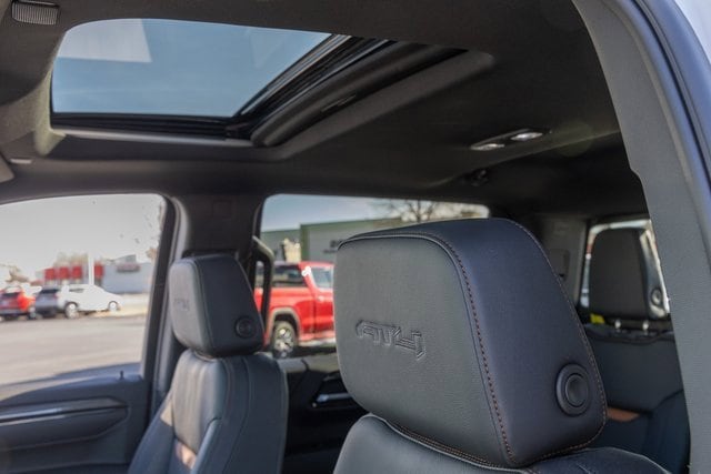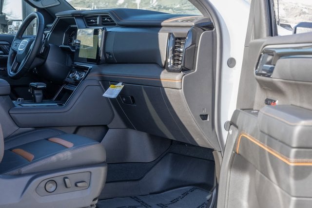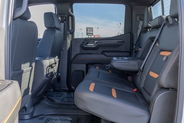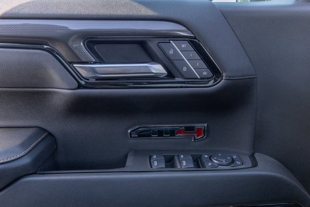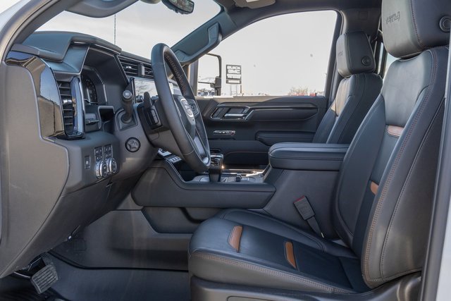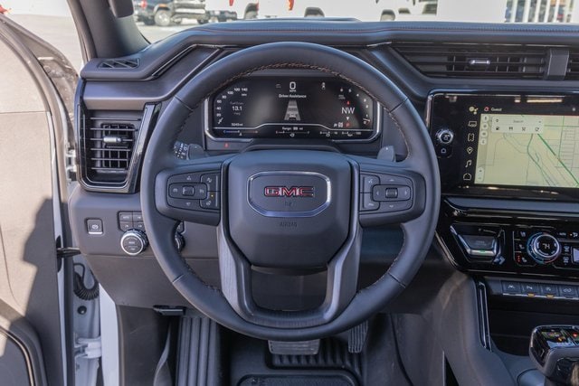 10-Speed Automatic, 4WD, Jet Black With Kalahari Accents Leather. AT4 Preferred Package (Power Sliding Rear Window w/Rear Defogger and Universal Home Remote), Preferred Equipment Group 4SB (120-Volt Bed Mounted Power Outlet, 120-Volt Interior Power Outlet, 2 Charge/Data USB Ports Inside Center Console, 2 Type-C Charge-Only Rear USB Ports, 2 USB Ports, 220 Amp Alternator, Auto-Locking Rear Differential, Black Chrome Grille Insert Bars, Color-Keyed Carpeting Floor Covering, Deep-Tinted Glass, Electric Rear-Window Defogger, Floor-Mounted Center Console, Front Prem Floor Liners w/Removable Carpet Insert, Front Rain-Sensing Wipers, HD Surround Vision, Heated 2nd Row Outboard Seats, Heated Driver & Front Outboard Passenger Seating, Heavy-Duty Air Filter, Hill Descent Control, Hitch View, In-Vehicle Trailering System App, Integrated Trailer Brake Controller, Keyless Open & Start, LED Cargo Area Lighting, OnStar Services Capable, Perimeter Lighting, Power Door Locks, Power Front Passenger Windows w/Express Up/Down, Power Front Windows w/Driver Express Up/Down, Power Rake & Telescoping Steering Column, Power Rear Windows w/Express Down, Premium Bose 7-Speaker Sound System, Push Button Start, Rear Cross Traffic Braking, Rear Pedestrian Detection, Rear Prem Floor Liners w/Removable Carpet Insert, Rear Wheelhouse Liners, Red Recovery Hooks, Remote Vehicle Starter System, SiriusXM w/360L Trial Subscription, Spray-On Pickup Bedliner w/GMC Logo, Steering Wheel Audio Controls, Theft Deterrent System (Unauthorized Entry), Trailer Camera Provisions, Trailer Side Blind Zone Alert, Ultrasonic Front & Rear Park Assist, Ventilated Driver & Front Passenger Seats, Wi-Fi Hotspot Capable, and Wireless Charging), Technology Package (Bed View Camera, Multicolor 15 Diagonal Head-Up Display, and Rear Camera Mirror), Trailering Package (Hitch Guidance), 10-Speed Automatic, 4WD, Jet Black With Kalahari Accents Leather, 10-Way Power Driver Seat Adjuster w/Lumbar, 10-Way Power Passenger Seat Adjuster w/Lumbar, 170 Amp Alternator, 3.23 Rear Axle Ratio, 4-Wheel Disc Brakes, 7 Speakers, ABS brakes, Air Conditioning, Alloy wheels, AM/FM radio: SiriusXM with 360L, Apple CarPlay/Android Auto, Auto High-beam Headlights, Auto-dimming door mirrors, Auto-dimming Rear-View mirror, Automatic Emergency Braking, Automatic temperature control, Auxiliary External Transmission Oil Cooler, Block heater, Brake assist, Buckle to Drive, Bumpers: body-color, Chrome Mirror Caps, Compass, Delay-off headlights, Driver door bin, Driver Memory, Driver vanity mirror, Dual Active Exhaust, Dual front impact airbags, Dual front side impact airbags, Electronic Stability Control, Emergency communication system: OnStar, External Engine Oil Cooling, Following Distance Indicator, Forward Collision Alert, Front anti-roll bar, Front Bucket Seats, Front Center Armrest, Front dual zone A/C, Front fog lights, Front License Plate Kit, Front Pedestrian Braking, Front reading lights, Front wheel independent suspension, Fully automatic headlights, Hard Folding Truck Bed Cover (LPO), Heated door mirrors, Heated front seats, Heated rear seats, Heated steering wheel, Illuminated entry, IntelliBeam Automatic High Beam On/Off, Lane Keep Assist w/Lane Departure Warning, Low tire pressure warning, Memory seat, Navigation System, Occupant sensing airbag, Off-Road Suspension, Outside temperature display, Overhead airbag, Overhead console, Panic alarm, Passenger door bin, Passenger vanity mirror, Perforated Front Leather Seat Trim, Power door mirrors, Power driver seat, Power passenger seat, Power steering, Power Sunroof, Power windows, Pwr-Adjustable Vertical Trailering Outside Mirrors, Radio data system, Radio: Premium GMC Infotainment Audio System, Rain sensing wipers, Rear reading lights, Rear seat center armrest, Rear step bumper, Rear window defroster, Remote keyless entry