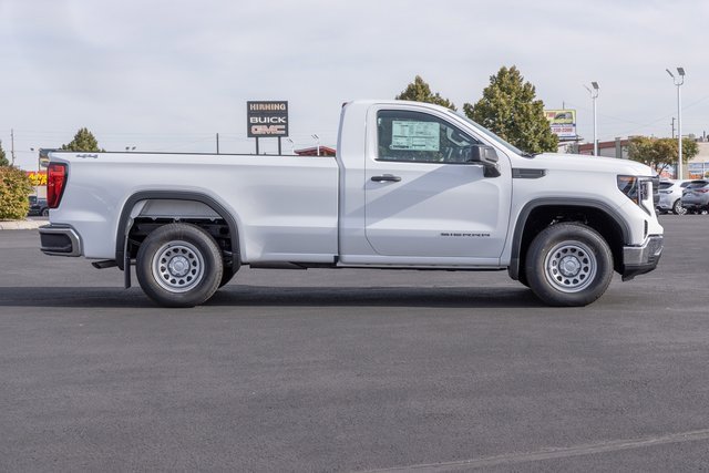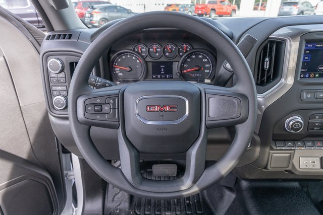 10-Speed Automatic, 4WD, Black Cloth. Convenience Package (Deep-Tinted Glass, Electric Rear-Window Defogger, EZ Lift Power Lock & Release Tailgate, and LED Cargo Area Lighting), Preferred Equipment Group 1SA (2 Charge/Data USB Ports, 220 Amp Alternator, Chrome Header w/Flat Black Grille Insert Bars, Front Frame-Mounted Black Recovery Hooks, HD Rear Vision Camera, OnStar Services Capable, Power Door Locks, Power Front Windows w/Driver Express Up/Down, Power Front Windows w/Passenger Express Down, Push Button Start, Remote Keyless Entry, Solar Absorbing Tinted Glass, and Wi-Fi Hotspot Capable), Pro Value Package, Standard Suspension Package, Trailering Package (Hitch Guidance), 10-Speed Automatic, 4WD, Black Cloth, 170 Amp Alternator, 2 Speakers, 2-Speaker Audio System Feature, 4-Way Manual Driver Seat Adjuster, 4-Way Manual Passenger Seat Adjuster, 4-Wheel Disc Brakes, ABS brakes, Air Conditioning, AM/FM radio, Apple CarPlay/Android Auto, Auto High-beam Headlights, Auto-Locking Rear Differential, Automatic Emergency Braking, Auxiliary External Transmission Oil Cooler, Brake assist, Buckle to Drive, Bumpers: chrome, Compass, Delay-off headlights, Driver door bin, Dual front impact airbags, Dual front side impact airbags, Electronic Stability Control, Emergency communication system: OnStar, External Engine Oil Cooling, Following Distance Indicator, Forward Collision Alert, Front 40/20/40 Split-Bench Seat, Front anti-roll bar, Front Center Armrest w/Storage, Front License Plate Kit, Front Pedestrian Braking, Front reading lights, Front wheel independent suspension, Fully automatic headlights, Heated door mirrors, Illuminated entry, IntelliBeam Automatic High Beam On/Off, Lane Keep Assist w/Lane Departure Warning, Low tire pressure warning, Occupant sensing airbag, Outside temperature display, Overhead airbag, Overhead console, Panic alarm, Passenger door bin, Passenger vanity mirror, Power door mirrors, Power steering, Power windows, Radio data system, Radio: GMC Infotainment Audio System, Rear reading lights, Rear step bumper, Remote keyless entry, Speed control, Speed-sensing steering, Tachometer, Tilt steering wheel, Traction control, Trip computer, Upfitter Switch Kit (5), Variably intermittent wipers, Vinyl Seat Trim, Voltmeter, Wheels: 17 x 8 Silver Painted Steel, and Wireless Apple CarPlay/Wireless Android Auto.