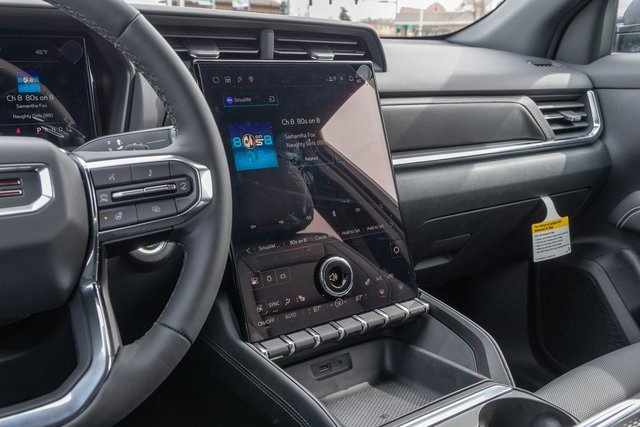 AWD. Convenience Package II (2-Way Power Driver Lumbar Seat Adjuster, 3-Channel Programmable Universal Home Remote, 8-Way Power Driver Seat Adjuster, AutoSense Hands-Free Power Programmable Liftgate, Brushed Aluminum Roof Rails, Cabin Humidity & Windshield Temperature Sensor, Dual-Zone Automatic Climate Control, Front Intermittent RainSense Wipers, Heated Wiper Park, Overhead Sunglass Storage, and Wireless Charging For Devices), Elevation Premium Package (CoreTec Seat Trim and Wheels: 19 Technical Gray Machine-Face Aluminum), License Plate Front Mounting Package, Preferred Equipment Group 3SB, Technology Package II (Front LED Fog Lamps, HD Surround Vision, Rear Camera Mirror, Rear Camera Mirror Washer, Rear Pedestrian Alert, and Traffic Sign Recognition), AWD, 3.47 Final Drive Axle Ratio, 4-Wheel Disc Brakes, 6 Speakers, 6-Speaker Audio System Feature, ABS brakes, Air Conditioning, Alloy wheels, AM/FM radio: SiriusXM, Auto High-beam Headlights, Automatic temperature control, Brake assist, Bumpers: body-color, Compass, Delay-off headlights, Driver & Front Passenger Heated Seats, Driver 6-Way Manual Seat Adjuster, Driver door bin, Driver vanity mirror, Dual front impact airbags, Dual front side impact airbags, Electronic Stability Control, Emergency communication system: OnStar and GMC connected services capable, Four wheel independent suspension, Front anti-roll bar, Front Bucket Seats, Front Center Armrest, Front fog lights, Front Passenger 4-Way Manual Seat Adjuster, Front reading lights, Fully automatic headlights, Garage door transmitter, Heated door mirrors, Heated front seats, Heated steering wheel, Illuminated entry, Low tire pressure warning, Memory seat, Occupant sensing airbag, Outside temperature display, Overhead airbag, Panic alarm, Passenger door bin, Passenger vanity mirror, Power door mirrors, Power steering, Power windows, Premium Cloth Seat Trim, Radio data system, Radio: Premium GMC Infotainment System, Rear anti-roll bar, Rear seat center armrest, Rear window defroster, Rear window wiper, Remote keyless entry, Security system, SiriusXM Trial Subscription, Speed control, Speed-sensing steering, Split folding rear seat, Spoiler, Steering wheel mounted audio controls, Tachometer, Telescoping steering wheel, Tilt steering wheel, Traction control, Trip computer, Variably intermittent wipers, Wheels: 17 Grazen Metallic Machined Aluminum, and Wireless Apple CarPlay/Wireless Android Auto.