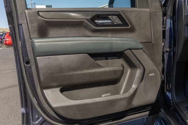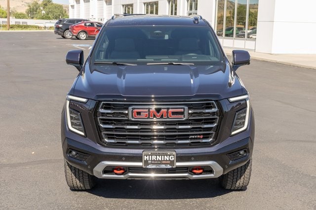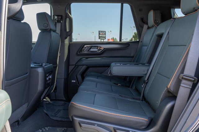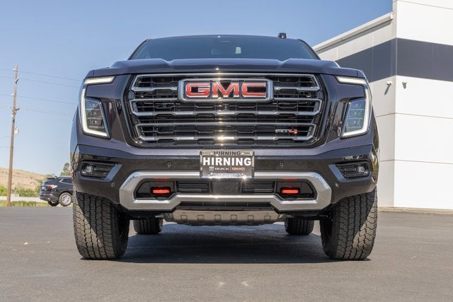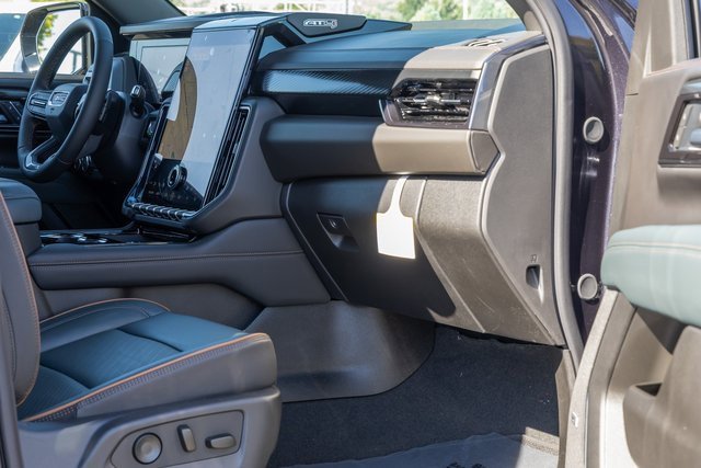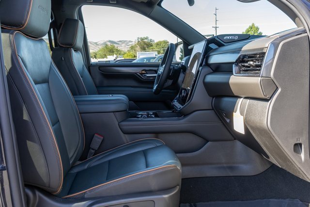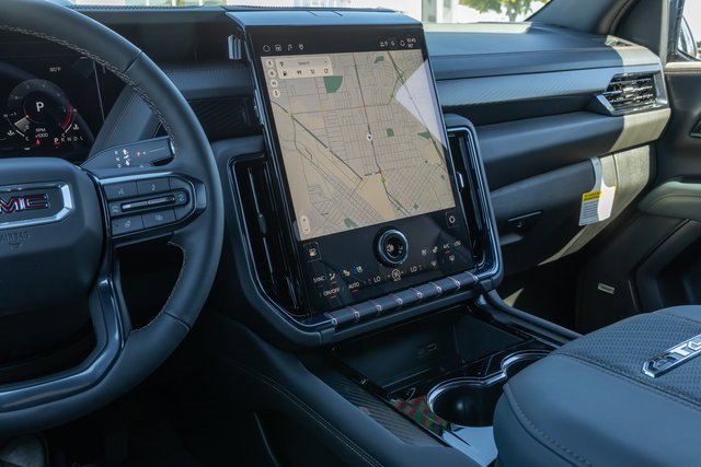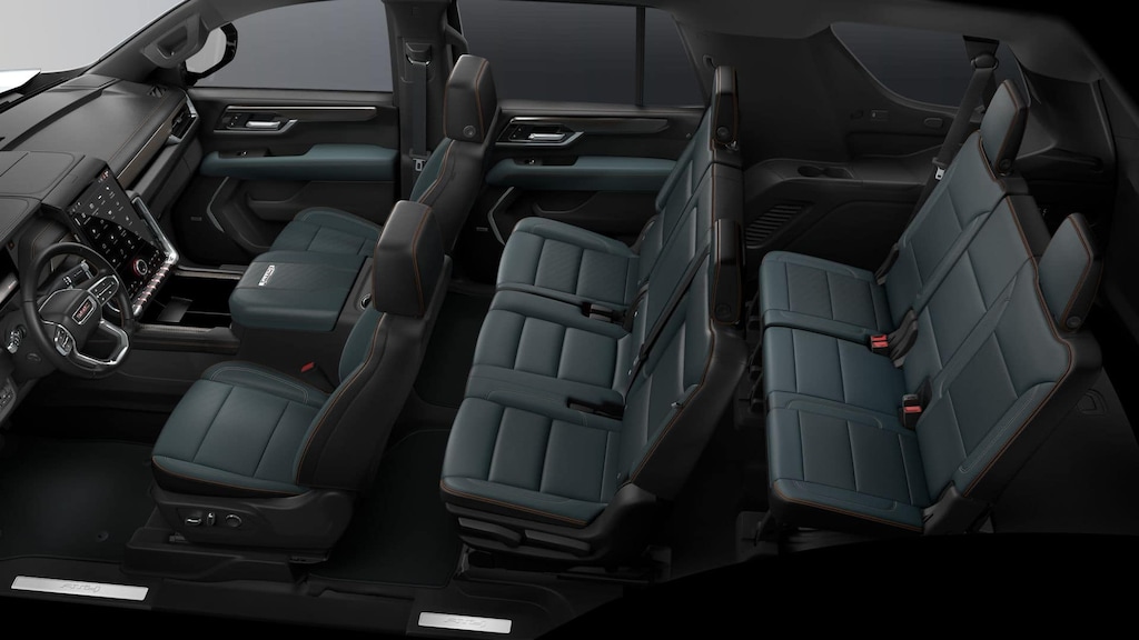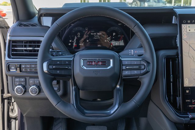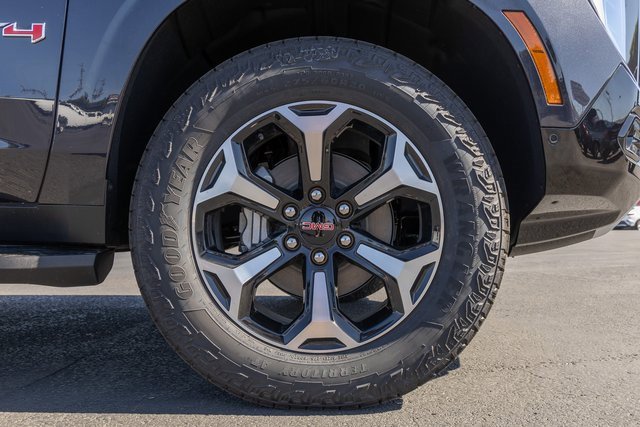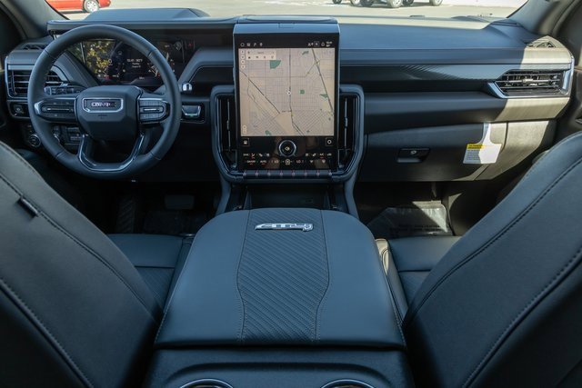4WD. License Plate Front Mounting Package, Max Trailering Package (Blind Zone Steering Assist w/Trailering, Extra Capacity Cooling System, Hitch View, Integrated Trailer Brake Controller, and Smart Trailer Integration Indicator), Preferred Equipment Group 4SB (4-Way Power Driver Lumbar Seat Adjuster, 4-Way Power Front Passenger Lumbar Seat Adjuster, AutoSense Hands-Free Power Liftgate, Black Roof-Mounted Luggage Rack Side Rails, Body-Color Door Handles, Bright Front & Rear Door Sill Plates, Dual Exhaust System, Front High-Approach Angle Fascia, Heavy-Duty Air Filter, Hill Descent Control, Perforated Heated & Ventilated Dr & Frt Pass Seats, Power Tilt & Telescopic Steering Column, and Red Horizontal-Mounted Recovery Hooks), Premium Capability Package w/Active Response 4WD (Air Ride Adaptive Suspension and Electronic Limited Slip Differential (eLSD)), Premium Trailering Package, 4WD, 10 Speakers, 3.23 Rear Axle Ratio, 3rd row seats: split-bench, 4-Wheel Disc Brakes, ABS brakes, Adaptive suspension, Air Conditioning, Alloy wheels, AM/FM radio: SiriusXM with 360L, Apple CarPlay/Android Auto, Audio memory, Auto High-beam Headlights, Auto-dimming door mirrors, Auto-dimming Rear-View mirror, Auto-leveling suspension, Automatic temperature control, Bose 10-Speaker Surround w/CenterPoint, Brake assist, Bumpers: body-color, Compass, Delay-off headlights, Driver door bin, Driver vanity mirror, Dual front impact airbags, Dual front side impact airbags, Electronic Stability Control, Emergency communication system: OnStar and GMC connected services capable, Exterior Parking Camera Rear, Four wheel independent suspension, Front anti-roll bar, Front Bucket Seats, Front Center Armrest, Front dual zone A/C, Front fog lights, Front reading lights, Fully automatic headlights, Garage door transmitter, Heated door mirrors, Heated Driver & Front Passenger Seats, Heated front seats, Heated rear seats, Heated steering wheel, Illuminated entry, Low tire pressure warning, Magnetic Ride Control Suspension, Memory seat, Navigation system: GMC Connected Navigation, Occupant sensing airbag, Outside temperature display, Overhead airbag, Overhead console, Panic alarm, Passenger door bin, Passenger vanity mirror, Perforated Leather Seating Surfaces, Power door mirrors, Power driver seat, Power Liftgate, Power passenger seat, Power steering, Power windows, Radio: 16.8 Diagonal Premium GMC Infotainment Sys, Rain sensing wipers, Rear air conditioning, Rear anti-roll bar, Rear reading lights, Rear seat center armrest, Rear window defroster, Rear window wiper, Remote keyless entry, Security system, SiriusXM w/360L, Speed control, Speed-sensing steering, Split folding rear seat, Spoiler, Steering wheel memory, Steering wheel mounted audio controls, Tachometer, Telescoping steering wheel, Tilt steering wheel, Traction control, Trip computer, Turn signal indicator mirrors, Variably intermittent wipers, Ventilated front seats, Voltmeter, and Wheels: 20 x 9 Machined & Painted.