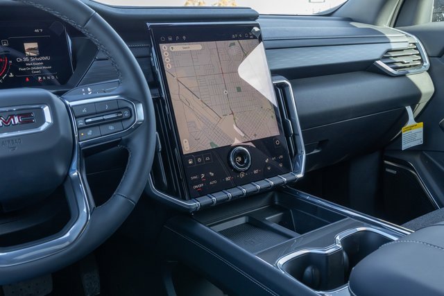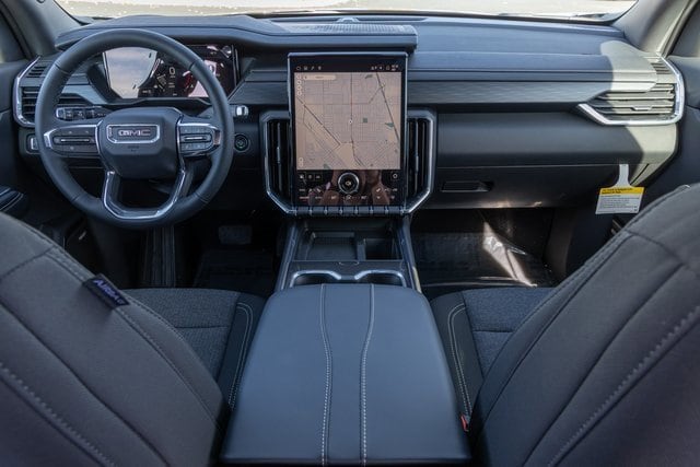 AWD, Cloth. AWD, Cloth, 12 Speakers, 18 x 7.5 Aluminum Wheels, 3.49 Final Drive Axle Ratio, 3rd row seats: split-bench, 4-Way Manual Front Passenger Seat Adjuster, 4-Wheel Disc Brakes, 8-Passenger Seating (2-3-3 Seating Configuration), 8-Way Power Driver Seat Adjuster, ABS brakes, Air Conditioning, Alloy wheels, AM/FM radio: SiriusXM with 360L, Apple CarPlay/Android Auto, Auto High-beam Headlights, Automatic temperature control, Bodyside moldings, Bose Premium 12-Speaker System w/Sub-Woofer, Brake assist, Bumpers: body-color, Cloth Seat Trim, Compass, Delay-off headlights, Driver 2-Way Power Lumbar Seat Adjuster, Driver door bin, Driver vanity mirror, Dual front impact airbags, Dual front side impact airbags, Electronic Stability Control, Emergency communication system: OnStar Services capable, Exterior Parking Camera Rear, Four wheel independent suspension, Front anti-roll bar, Front Bucket Seats, Front Center Armrest, Front dual zone A/C, Front fog lights, Front reading lights, Fully automatic headlights, Heated door mirrors, Heated Driver & Front Passenger Seats, Heated front seats, Heated steering wheel, Illuminated entry, Leather steering wheel, Low tire pressure warning, Navigation System, Occupant sensing airbag, Outside temperature display, Overhead airbag, Overhead console, Panic alarm, Passenger door bin, Passenger vanity mirror, Power door mirrors, Power driver seat, Power Liftgate, Power steering, Power windows, Radio data system, Radio: 15 Premium GMC Infotainment System, Rear air conditioning, Rear anti-roll bar, Rear reading lights, Rear seat center armrest, Rear side impact airbag, Rear window defroster, Rear window wiper, Remote keyless entry, Security system, SiriusXM w/360L, Speed control, Speed-sensing steering, Split folding rear seat, Spoiler, Sport steering wheel, Steering wheel mounted audio controls, Tachometer, Telescoping steering wheel, Tilt steering wheel, Traction control, Trip computer, Turn signal indicator mirrors, Variably intermittent wipers, and Voltmeter.