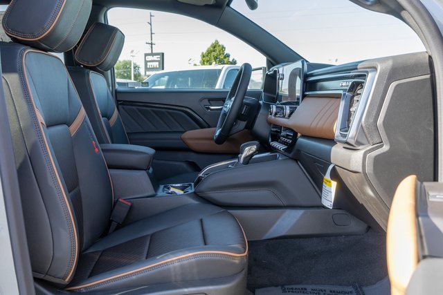 4WD. AT4 Premium Package (6-Way Power Passenger Seat Adjuster, Driver and Front Passenger Ventilated Seats, Driver Memory, Driver Seatback Map Pocket, Heated Steering Wheel, Perforated Leather-Appointed Seat Trim, Power Passenger Lumbar Control Seat Adjuster, Rear Center Fold-Down Armrest with 2 Cupholders, and Wireless Phone Charging), Canyon Safety Plus Package (Blind Zone Steering Assist with Trailering, Rear Cross Traffic Braking, and Ultrasonic Rear Park Assist), Preferred Equipment Group 4SG (120-Volt Bed Mounted Power Outlet, 2 Rear USB Ports in Center Console (Charge-Only), 8-Way Power Driver Seat Adjuster, Automatic Emergency Braking, Canyon Pro Safety, Driver and Front Passenger Illuminated Visors, Dual-Zone Automatic Climate Control Air Conditioning, EZ-Lift and Lower Tailgate, Following Distance Indicator, Forward Collision Alert, Front LED Fog Lamps, Front Pedestrian and Bicyclist Braking, Heated Driver and Front Passenger Seats, Inside Rear-View Auto-Dimming Mirror, IntelliBeam Automatic High Beam on/Off, Interior Overhead Courtesy Light with Dual Reading Lamp, Lane Keep Assist with Lane Departure Warning, MultiStow Tailgate Storage Compartment, Power Driver Lumbar Control Seat Adjuster, Rear of Console 120-Volt Power Outlet, Remote Vehicle Starter System, Tailgate Keyed Cylinder Lock, and Til and Telescopic Manual Steering Column), Technology Plus Package (Adaptive Cruise Control, HD Surround Vision, Laminated Windshield Acoustic Glass, Multicolor 6.3 Diagonal Head-Up Display, Power Inner Sliding Glass Sunroof with Manual Shade, Premium 7-Speaker Bose Sound System, and Rear Pedestrian Alert), 4WD, 2 1st Row USB Charge/Data Ports, 3.42 Rear Axle Ratio, 4-Way Manual Front Passenger Seat Adjuster, 4-Wheel Disc Brakes, 6 Speakers, 6-Speaker Audio System Feature, ABS brakes, Air Conditioning, Alloy wheels, AM/FM radio: SiriusXM with 360L, Apple CarPlay/Android Auto, Auto High-beam Headlights, Auto-dimming Rear-View mirror, Automatic Stop/Start, Automatic temperature control, Brake assist, Bumpers: body-color, Cloth/CoreTec Seat Trim, Compass, Delay-off headlights, Driver door bin, Driver Mode Selector, Driver vanity mirror, Dual front impact airbags, Dual front side impact airbags, Electronic Stability Control, Emergency communication system: OnStar, Front anti-roll bar, Front Bucket Seats, Front Center Armrest, Front dual zone A/C, Front fog lights, Front License Plate Kit, Front Passenger Seatback Map Pocket, Front reading lights, Front wheel independent suspension, Heated door mirrors, Heated front seats, Illuminated entry, Low tire pressure warning, Navigation System, Occupant sensing airbag, Off-Road Suspension, Outside temperature display, Overhead airbag, Overhead console, Panic alarm, Passenger door bin, Passenger vanity mirror, Power door mirrors, Power driver seat, Power steering, Power windows, Radio data system, Radio: 11.3 Diagonal Premium GMC Infotainment System, Rear reading lights, Rear step bumper, Rear window defroster, Remote keyless entry, Security system, SiriusXM with 360L, Speed control, Speed-sensing steering, Split folding rear seat, Steering wheel mounted audio controls, Stop/Start System Disable Button Engine Control, Tachometer, Telescoping steering wheel, Tilt steering wheel, Traction control, Trip computer, Variably intermittent wipers, Wheels: 18 x 8.5 Gloss Black Aluminum, and Wireless Apple CarPlay/Wireless Android Auto.