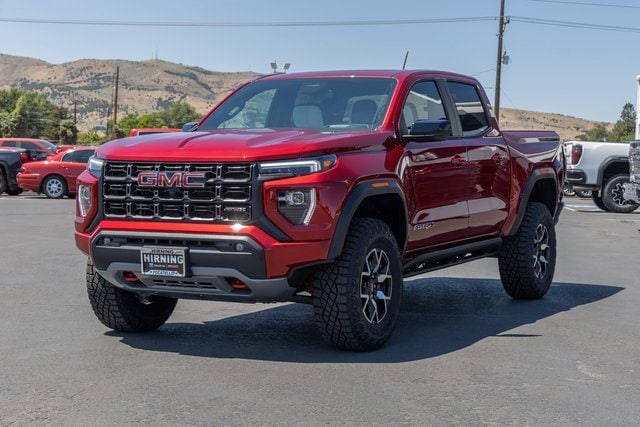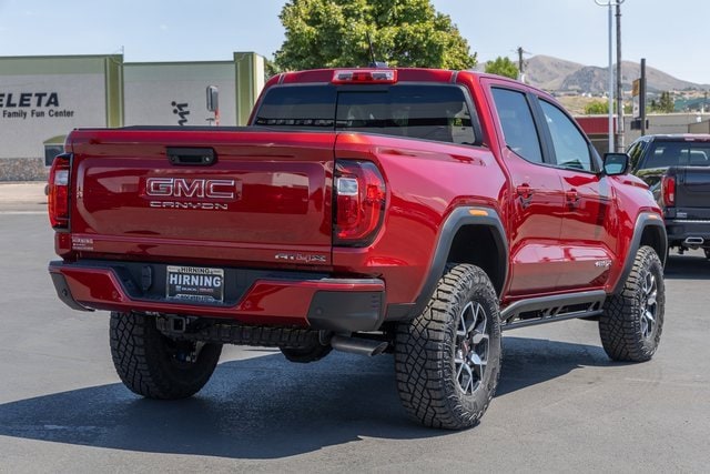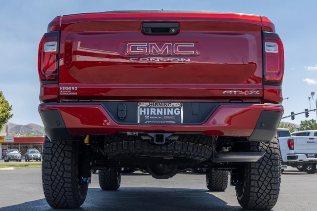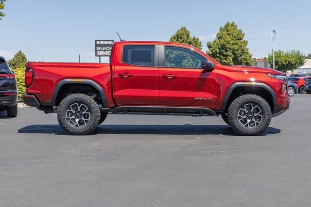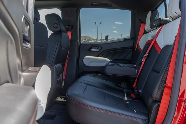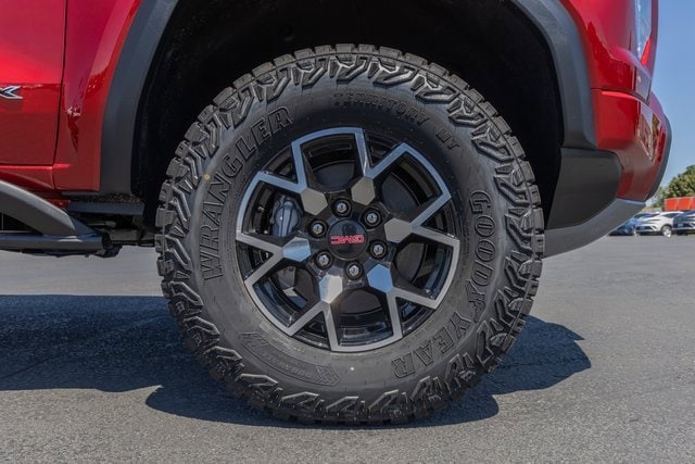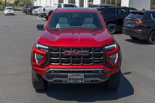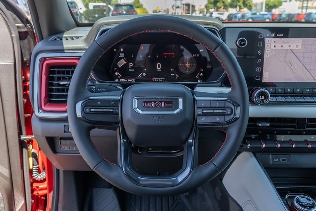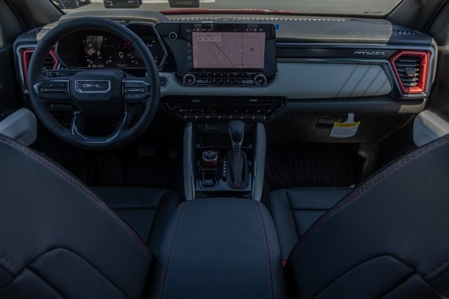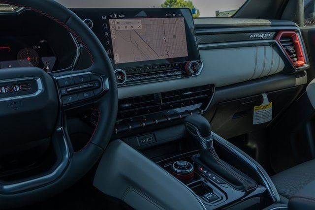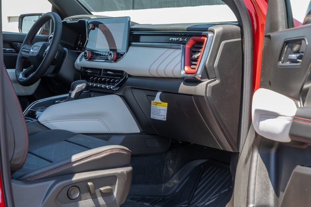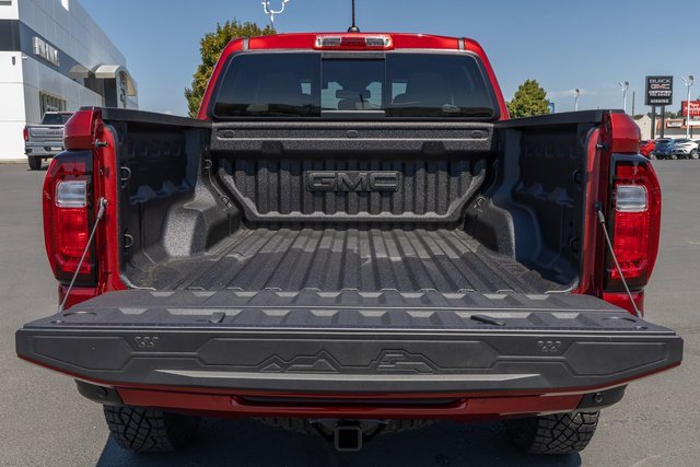 4WD. AT4X Package (1st & 2nd Rows All-Weather Floor Liners (LPO), Black Finish Sport Upper Bodyside Moldings, Black Off-Road Rocker Protection (LPO), Driver-Selectable Full-Locking Front Differential, Driver-Selectable Full-Locking Rear Differential, Front Side Laminated Solar Glazing Glass, Red Seat Belt Color, Safety Alert Seat, Spray-On Bedliner w/GMC Logo, Trailering App System, and Underbody Cameras), Canyon Safety Plus Package (Blind Zone Steering Assist w/Trailering, Rear Cross Traffic Braking, and Ultrasonic Rear Park Assist), Preferred Equipment Group 4TX (120-Volt Bed Mounted Power Outlet, 2 Rear USB Ports in Center Console (Charge-Only), 6-Way Power Passenger Seat Adjuster, 8-Way Power Driver Seat Adjuster, Adaptive Cruise Control, Automatic Emergency Braking, Canyon Pro Safety, Driver & Front Passenger Illuminated Visors, Driver & Front Passenger Ventilated Seats, Driver Memory, Driver Seatback Map Pocket, Dual-Zone Auto Climate Control Air Conditioning, EZ-Lift & Lower Tailgate, Following Distance Indicator, Forward Collision Alert, Front LED Fog Lamps, Front Pedestrian & Bicyclist Braking, HD Surround Vision, Heated Driver & Front Passenger Seats, Heated Steering Wheel, Inside Rear-View Auto-Dimming Mirror, IntelliBeam Automatic High Beam On/Off, Interior Overhead Courtesy Light w/Dual Reading Lamp, Lane Keep Assist w/Lane Departure Warning, Multicolor 6.3 Diagonal Head-Up Display, MultiStow Tailgate Storage Compartment, Power Driver Lumbar Control Seat Adjuster, Power Passenger Lumbar Control Seat Adjuster, Premium 7-Speaker Bose Sound System, Rear Center Fold-Down Armrest w/2 Cupholders, Rear of Console 120-Volt Power Outlet, Rear Pedestrian Alert, Remote Vehicle Starter System, Tailgate Keyed Cylinder Lock, Tilt & Telescopic Manual Steering Column, and Wireless Phone Charging), Trailering Package (Integrated Trailer Brake Controller), 4WD, 2 1st Row USB Charge/Data Ports, 3.42 Rear Axle Ratio, 4-Wheel Disc Brakes, 7 Speakers, ABS brakes, Air Conditioning, Alloy wheels, AM/FM radio: SiriusXM with 360L, Apple CarPlay/Android Auto, Auto High-beam Headlights, Auto-dimming Rear-View mirror, Automatic Stop/Start, Automatic temperature control, Brake assist, Bumpers: body-color, Compass, Delay-off headlights, Driver door bin, Driver Mode Selector, Driver vanity mirror, Dual front impact airbags, Dual front side impact airbags, Electronic Stability Control, Emergency communication system: OnStar, Front anti-roll bar, Front Bucket Seats, Front Center Armrest, Front dual zone A/C, Front fog lights, Front License Plate Kit, Front Passenger Seatback Map Pocket, Front reading lights, Front wheel independent suspension, Heads-Up Display, Heated door mirrors, Heated front seats, Heated steering wheel, Illuminated entry, Low tire pressure warning, Memory seat, Navigation System, Occupant sensing airbag, Off-Road Suspension, Outside temperature display, Overhead airbag, Overhead console, Panic alarm, Passenger door bin, Passenger vanity mirror, Perforated Leather-Appointed Seat Trim, Power door mirrors, Power driver seat, Power moonroof, Power passenger seat, Power steering, Power windows, Radio data system, Radio: 11.3 Diagonal Premium GMC Infotainment Sys, Rear reading lights, Rear seat center armrest, Rear step bumper, Rear window defroster, Remote keyless entry, Security system, SiriusXM w/360L, Speed control, Speed-sensing steering, Split folding rear seat, Steering wheel mounted audio controls, Stop/Start System Disable Button Engine Control, Tachometer, Telescoping steering wheel, Tilt steering wheel, Traction control, Trip computer, Variably intermittent wipers, Ventilated front seats, Wheels: 17 x 8 Black High Gloss Machined Finish, and Wireless Apple CarPlay/Wireless Android Auto.