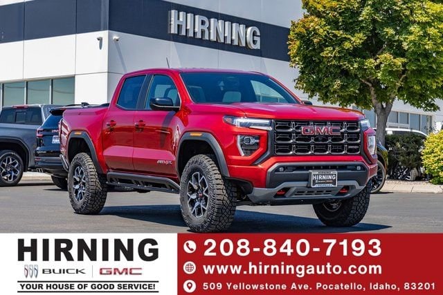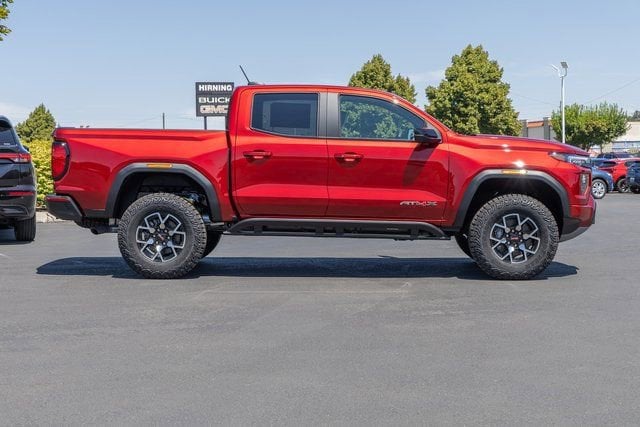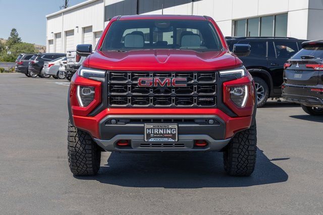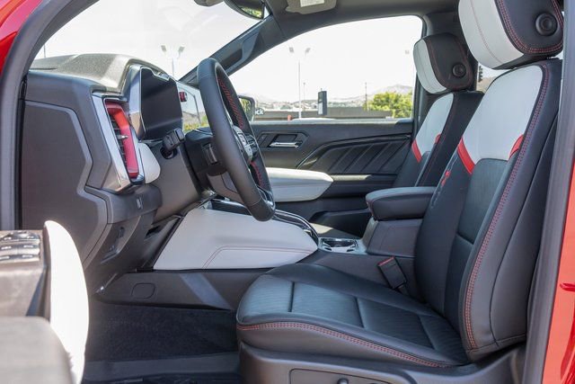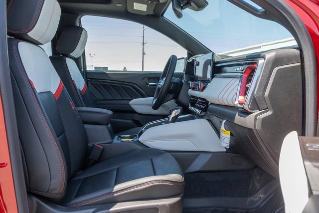 4WD. Canyon Safety Plus Package (Blind Zone Steering Assist with Trailering, Rear Cross Traffic Braking, and Ultrasonic Rear Park Assist), Preferred Equipment Group 4TX (120-Volt Bed Mounted Power Outlet, 1st and 2nd Rows All-Weather Floor Liners, 2 Rear USB Ports in Center Console (Charge-Only), 6-Way Power Passenger Seat Adjuster, 8-Way Power Driver Seat Adjuster, Adaptive Cruise Control, AT4X, Automatic Emergency Braking, Black Finish Sport Upper Bodyside Moldings, Black Off-Road Rocker Protection, Canyon Pro Safety, Driver and Front Passenger Illuminated Visors, Driver and Front Passenger Ventilated Seats, Driver Memory, Driver Seatback Map Pocket, Driver-Selectable Full-Locking Front Differential, Driver-Selectable Full-Locking Rear Differential, Dual-Zone Automatic Climate Control Air Conditioning, EZ-Lift and Lower Tailgate, Following Distance Indicator, Forward Collision Alert, Front LED Fog Lamps, Front Pedestrian and Bicyclist Braking, Front Side Laminated Solar Glazing Glass, HD Surround Vision, Heated Driver and Front Passenger Seats, Heated Steering Wheel, Inside Rear-View Auto-Dimming Mirror, IntelliBeam Automatic High Beam on/Off, Interior Overhead Courtesy Light with Dual Reading Lamp, Lane Keep Assist with Lane Departure Warning, Multicolor 6.3 Diagonal Head-Up Display, MultiStow Tailgate Storage Compartment, Off-Road Suspension, Power Driver Lumbar Control Seat Adjuster, Power Passenger Lumbar Control Seat Adjuster, Premium 7-Speaker Bose Sound System, Rear Center Fold-Down Armrest with 2 Cupholders, Rear of Console 120-Volt Power Outlet, Rear Pedestrian Alert, Red Seat Belt Color, Remote Vehicle Starter System, Safety Alert Seat, Spray-on Bedliner with GMC Logo, Tailgate Keyed Cylinder Lock, Til and Telescopic Manual Steering Column, Trailering App System, Underbody Cameras, Wheels: 17 x 8 Black High Gloss Machined Finish, and Wireless Phone Charging), Trailering Package (Integrated Trailer Brake Controller), 4WD, 2 1st Row USB Charge/Data Ports, 3.42 Rear Axle Ratio, 4-Wheel Disc Brakes, 7 Speakers, ABS brakes, Air Conditioning, Alloy wheels, AM/FM radio: SiriusXM with 360L, Apple CarPlay/Android Auto, Auto High-beam Headlights, Auto-dimming Rear-View mirror, Automatic Stop/Start, Automatic temperature control, Brake assist, Bumpers: body-color, Compass, Delay-off headlights, Driver door bin, Driver Mode Selector, Driver vanity mirror, Dual front impact airbags, Dual front side impact airbags, Electronic Stability Control, Emergency communication system: OnStar, Front anti-roll bar, Front Bucket Seats, Front Center Armrest, Front dual zone A/C, Front fog lights, Front License Plate Kit, Front Passenger Seatback Map Pocket, Front reading lights, Front wheel independent suspension, Heads-Up Display, Heated door mirrors, Heated front seats, Heated steering wheel, Illuminated entry, Low tire pressure warning, Memory seat, Navigation System, Occupant sensing airbag, Outside temperature display, Overhead airbag, Overhead console, Panic alarm, Passenger door bin, Passenger vanity mirror, Perforated Leather-Appointed Seat Trim, Power door mirrors, Power driver seat, Power moonroof, Power passenger seat, Power steering, Power windows, Radio data system, Radio: 11.3 Diagonal Premium GMC Infotainment System, Rear reading lights, Rear seat center armrest, Rear step bumper, Rear window defroster, Remote keyless entry, Security system, SiriusXM with 360L, Speed control, Speed-sensing steering, Split folding rear seat, Steering wheel mounted audio controls, Stop/Start System Disable Button Engine Control, Tachometer, Telescoping steering wheel, Tilt steering wheel, Traction control, Trip computer, Variably intermittent wipers, Ventilated front seats, and Wireless Apple CarPlay/Wireless Android Auto.