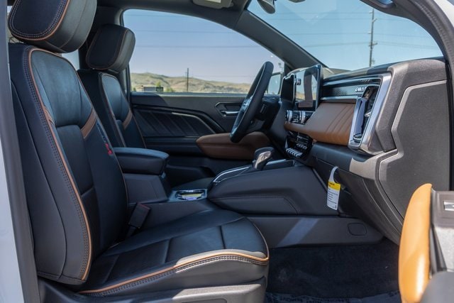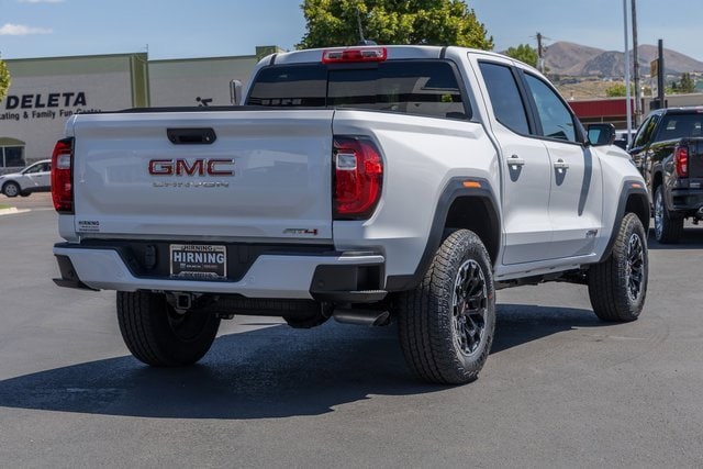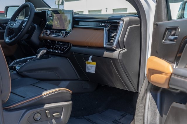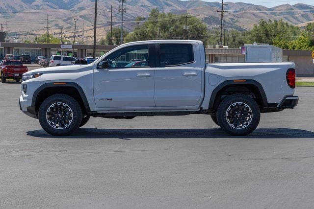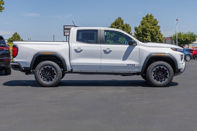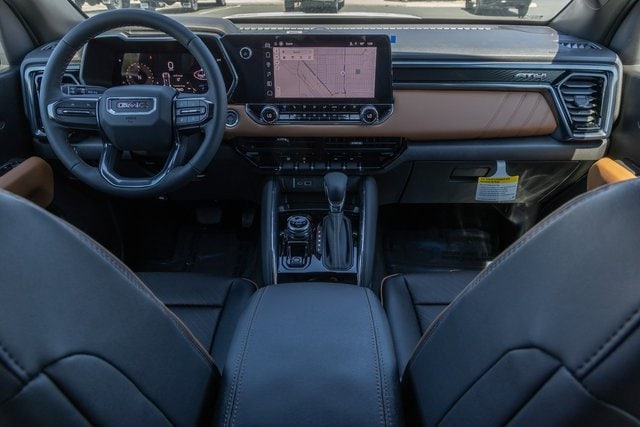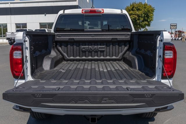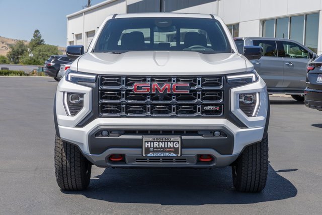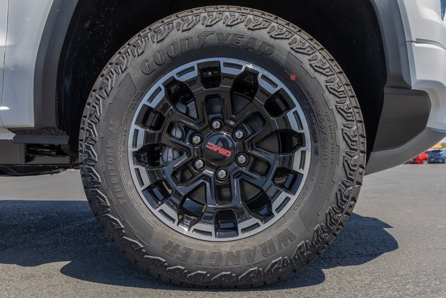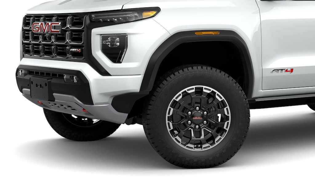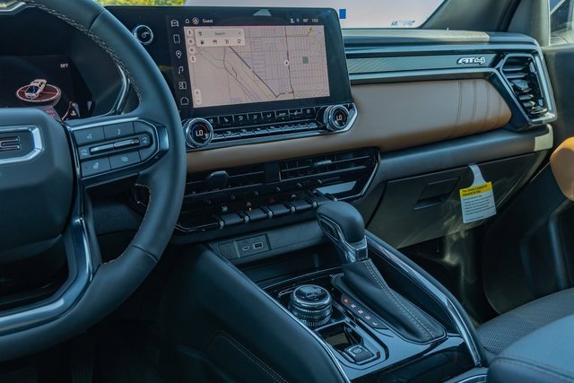 4WD. AT4 Premium Package (6-Way Power Passenger Seat Adjuster, Driver & Front Passenger Ventilated Seats, Driver Memory, Driver Seatback Map Pocket, Heated Steering Wheel, Perforated Leather-Appointed Seat Trim, Power Passenger Lumbar Control Seat Adjuster, Rear Center Fold-Down Armrest w/2 Cupholders, and Wireless Phone Charging), Canyon Safety Plus Package (Blind Zone Steering Assist w/Trailering, Rear Cross Traffic Braking, and Ultrasonic Rear Park Assist), Preferred Equipment Group 4SG (120-Volt Bed Mounted Power Outlet, 2 Rear USB Ports in Center Console (Charge-Only), 8-Way Power Driver Seat Adjuster, Automatic Emergency Braking, Canyon Pro Safety, Driver & Front Passenger Illuminated Visors, Dual-Zone Auto Climate Control Air Conditioning, EZ-Lift & Lower Tailgate, Following Distance Indicator, Forward Collision Alert, Front LED Fog Lamps, Front Pedestrian & Bicyclist Braking, Heated Driver & Front Passenger Seats, Inside Rear-View Auto-Dimming Mirror, IntelliBeam Automatic High Beam On/Off, Interior Overhead Courtesy Light w/Dual Reading Lamp, Lane Keep Assist w/Lane Departure Warning, MultiStow Tailgate Storage Compartment, Power Driver Lumbar Control Seat Adjuster, Rear of Console 120-Volt Power Outlet, Remote Vehicle Starter System, Tailgate Keyed Cylinder Lock, and Tilt & Telescopic Manual Steering Column), Technology Plus Package (Adaptive Cruise Control, HD Surround Vision, Laminated Windshield Acoustic Glass, Multicolor 6.3 Diagonal Head-Up Display, Power Inner Sliding Glass Sunroof w/Manual Shade, Premium 7-Speaker Bose Sound System, and Rear Pedestrian Alert), 4WD, 2 1st Row USB Charge/Data Ports, 3.42 Rear Axle Ratio, 4-Way Manual Front Passenger Seat Adjuster, 4-Wheel Disc Brakes, 6 Speakers, 6-Speaker Audio System Feature, ABS brakes, Air Conditioning, Alloy wheels, AM/FM radio: SiriusXM with 360L, Apple CarPlay/Android Auto, Auto High-beam Headlights, Auto-dimming Rear-View mirror, Automatic Stop/Start, Automatic temperature control, Brake assist, Bumpers: body-color, Cloth/CoreTec Seat Trim, Compass, Delay-off headlights, Driver door bin, Driver Mode Selector, Driver vanity mirror, Dual front impact airbags, Dual front side impact airbags, Electronic Stability Control, Emergency communication system: OnStar, Front anti-roll bar, Front Bucket Seats, Front Center Armrest, Front dual zone A/C, Front fog lights, Front License Plate Kit, Front Passenger Seatback Map Pocket, Front reading lights, Front wheel independent suspension, Heated door mirrors, Heated front seats, Illuminated entry, Low tire pressure warning, Navigation System, Occupant sensing airbag, Off-Road Suspension, Outside temperature display, Overhead airbag, Overhead console, Panic alarm, Passenger door bin, Passenger vanity mirror, Power door mirrors, Power driver seat, Power steering, Power windows, Radio data system, Radio: 11.3 Diagonal Premium GMC Infotainment Sys, Rear reading lights, Rear step bumper, Rear window defroster, Remote keyless entry, Security system, SiriusXM w/360L, Speed control, Speed-sensing steering, Split folding rear seat, Spray-On Bedliner w/GMC Logo, Steering wheel mounted audio controls, Stop/Start System Disable Button Engine Control, Tachometer, Telescoping steering wheel, Tilt steering wheel, Traction control, Trip computer, Variably intermittent wipers, Wheels: 18 x 8.5 Gloss Black, and Wireless Apple CarPlay/Wireless Android Auto.