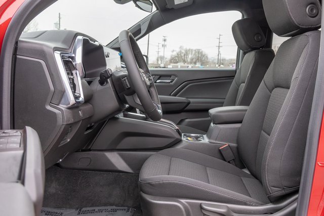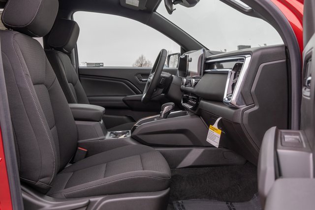 4WD. Canyon Safety Plus Package (Blind Zone Steering Assist with Trailering, Rear Cross Traffic Braking, and Ultrasonic Rear Park Assist), Preferred Equipment Group 4VL (Automatic Emergency Braking, Canyon Pro Safety, Following Distance Indicator, Forward Collision Alert, Front Pedestrian and Bicyclist Braking, IntelliBeam Automatic High Beam on/Off, and Lane Keep Assist with Lane Departure Warning), 4WD, 1 Rear USB Port in Center Console (Charge-Only), 2 1st Row USB Charge/Data Ports, 3.42 Rear Axle Ratio, 4-Way Manual Front Passenger Seat Adjuster, 4-Wheel Disc Brakes, 6 Speakers, 6-Speaker Audio System Feature, 6-Way Manual Driver Seat Adjuster, ABS brakes, Air Conditioning, Alloy wheels, AM/FM radio: SiriusXM with 360L, Apple CarPlay/Android Auto, Auto High-beam Headlights, Automatic Stop/Start, Brake assist, Bumpers: body-color, Cloth Seat Trim, Compass, Delay-off headlights, Driver door bin, Driver Mode Selector, Driver vanity mirror, Dual front impact airbags, Dual front side impact airbags, Electronic Stability Control, Emergency communication system: OnStar, Front anti-roll bar, Front Bucket Seats, Front Center Armrest, Front License Plate Kit, Front Passenger Seatback Map Pocket, Front wheel independent suspension, Heated door mirrors, Illuminated entry, Low tire pressure warning, Navigation System, Occupant sensing airbag, Off-Road Suspension, Outside temperature display, Overhead airbag, Overhead console, Panic alarm, Passenger door bin, Passenger vanity mirror, Power door mirrors, Power steering, Power windows, Radio data system, Radio: 11.3 Diagonal Premium GMC Infotainment System, Rear reading lights, Rear step bumper, Rear window defroster, Remote keyless entry, Security system, SiriusXM with 360L, Speed control, Speed-sensing steering, Split folding rear seat, Spray-on Bedliner with GMC Logo, Steering wheel mounted audio controls, Stop/Start System Disable Button Engine Control, Tachometer, Tilt steering wheel, Traction control, Trip computer, Variably intermittent wipers, Wheels: 18 x 8.5 Gloss Black Finish Aluminum, and Wireless Apple CarPlay/Wireless Android Auto.