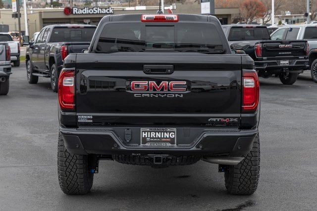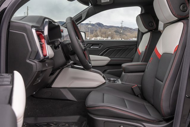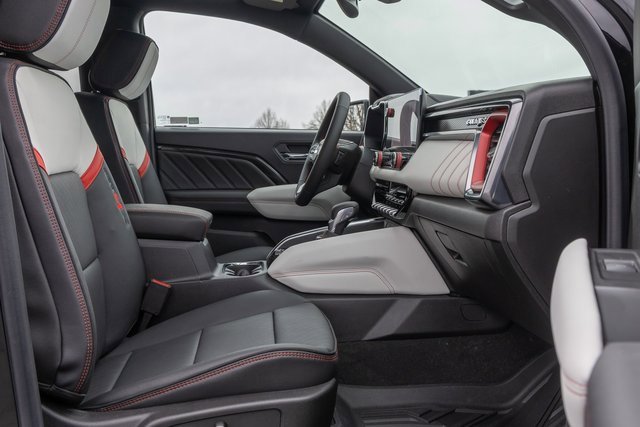 4WD. Canyon Safety Plus Package (Blind Zone Steering Assist with Trailering, Rear Cross Traffic Braking, and Ultrasonic Rear Park Assist), Preferred Equipment Group 4TX (120-Volt Bed Mounted Power Outlet, 1st and 2nd Rows All-Weather Floor Liners, 2 Rear USB Ports in Center Console (Charge-Only), 6-Way Power Passenger Seat Adjuster, 8-Way Power Driver Seat Adjuster, Adaptive Cruise Control, AT4X, Automatic Emergency Braking, Black Finish Sport Upper Bodyside Moldings, Black Off-Road Rocker Protection, Canyon Pro Safety, Driver and Front Passenger Illuminated Visors, Driver and Front Passenger Ventilated Seats, Driver Memory, Driver Seatback Map Pocket, Driver-Selectable Full-Locking Front Differential, Driver-Selectable Full-Locking Rear Differential, Dual-Zone Automatic Climate Control Air Conditioning, EZ-Lift and Lower Tailgate, Following Distance Indicator, Forward Collision Alert, Front LED Fog Lamps, Front Pedestrian and Bicyclist Braking, Front Side Laminated Solar Glazing Glass, HD Surround Vision, Heated Driver and Front Passenger Seats, Heated Steering Wheel, Inside Rear-View Auto-Dimming Mirror, IntelliBeam Automatic High Beam on/Off, Interior Overhead Courtesy Light with Dual Reading Lamp, Lane Keep Assist with Lane Departure Warning, Multicolor 6.3 Diagonal Head-Up Display, MultiStow Tailgate Storage Compartment, Off-Road Suspension, Power Driver Lumbar Control Seat Adjuster, Power Passenger Lumbar Control Seat Adjuster, Premium 7-Speaker Bose Sound System, Rear Center Fold-Down Armrest with 2 Cupholders, Rear of Console 120-Volt Power Outlet, Rear Pedestrian Alert, Red Seat Belt Color, Remote Vehicle Starter System, Safety Alert Seat, Spray-on Bedliner with GMC Logo, Tailgate Keyed Cylinder Lock, Til and Telescopic Manual Steering Column, Trailering App System, Underbody Cameras, Wheels: 17 x 8 Black High Gloss Machined Finish, and Wireless Phone Charging), Trailering Package (Integrated Trailer Brake Controller), 4WD, 2 1st Row USB Charge/Data Ports, 3.42 Rear Axle Ratio, 4-Wheel Disc Brakes, 7 Speakers, ABS brakes, Air Conditioning, Alloy wheels, AM/FM radio: SiriusXM with 360L, Apple CarPlay/Android Auto, Auto High-beam Headlights, Auto-dimming Rear-View mirror, Automatic Stop/Start, Automatic temperature control, Brake assist, Bumpers: body-color, Compass, Delay-off headlights, Driver door bin, Driver Mode Selector, Driver vanity mirror, Dual front impact airbags, Dual front side impact airbags, Electronic Stability Control, Emergency communication system: OnStar, Front anti-roll bar, Front Bucket Seats, Front Center Armrest, Front dual zone A/C, Front fog lights, Front License Plate Kit, Front Passenger Seatback Map Pocket, Front reading lights, Front wheel independent suspension, Heads-Up Display, Heated door mirrors, Heated front seats, Heated steering wheel, Illuminated entry, Low tire pressure warning, Memory seat, Navigation System, Occupant sensing airbag, Outside temperature display, Overhead airbag, Overhead console, Panic alarm, Passenger door bin, Passenger vanity mirror, Perforated Leather-Appointed Seat Trim, Power door mirrors, Power driver seat, Power moonroof, Power passenger seat, Power steering, Power windows, Radio data system, Radio: 11.3 Diagonal Premium GMC Infotainment System, Rear reading lights, Rear seat center armrest, Rear step bumper, Rear window defroster, Remote keyless entry, Security system, SiriusXM with 360L, Speed control, Speed-sensing steering, Split folding rear seat, Steering wheel mounted audio controls, Stop/Start System Disable Button Engine Control, Tachometer, Telescoping steering wheel, Tilt steering wheel, Traction control, Trip computer, Variably intermittent wipers, Ventilated front seats, and Wireless Apple CarPlay/Wireless Android Auto.