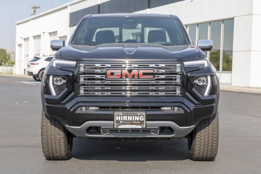 4WD. Canyon Safety Plus Package (Blind Zone Steering Assist w/Trailering, Rear Cross Traffic Braking, and Ultrasonic Rear Park Assist), Preferred Equipment Group 5SB (120-Volt Bed Mounted Power Outlet, 2 Rear USB Ports in Center Console (Charge-Only), 5 Rectangular Chrome Assist Steps, 6-Way Power Passenger Seat Adjuster, 8-Way Power Driver Seat Adjuster, Adaptive Cruise Control, Automatic Emergency Braking, Canyon Pro Safety, Driver & Front Passenger Illuminated Visors, Driver & Front Passenger Ventilated Seats, Driver Memory, Driver Seatback Map Pocket, Dual-Zone Auto Climate Control Air Conditioning, EZ-Lift & Lower Tailgate, Following Distance Indicator, Forward Collision Alert, Front LED Fog Lamps, Front Pedestrian & Bicyclist Braking, HD Surround Vision, Heated Driver & Front Passenger Seats, Heated Steering Wheel, Inside Rear-View Auto-Dimming Mirror, IntelliBeam Automatic High Beam On/Off, Interior Overhead Courtesy Light w/Dual Reading Lamp, Lane Keep Assist w/Lane Departure Warning, Multicolor 6.3 Diagonal Head-Up Display, MultiStow Tailgate Storage Compartment, Power Driver Lumbar Control Seat Adjuster, Power Passenger Lumbar Control Seat Adjuster, Premium 7-Speaker Bose Sound System, Rear Center Fold-Down Armrest w/2 Cupholders, Rear of Console 120-Volt Power Outlet, Rear Pedestrian Alert, Remote Vehicle Starter System, Safety Alert Seat, Spray-On Bedliner w/GMC Logo, Tailgate Keyed Cylinder Lock, Tilt & Telescopic Manual Steering Column, and Wireless Phone Charging), 4WD, 1st & 2nd Rows All-Weather Floor Liner (LPO), 2 1st Row USB Charge/Data Ports, 3.42 Rear Axle Ratio, 4-Wheel Disc Brakes, 7 Speakers, ABS brakes, Air Conditioning, Alloy wheels, AM/FM radio: SiriusXM with 360L, Apple CarPlay/Android Auto, Auto High-beam Headlights, Auto-dimming Rear-View mirror, Automatic Stop/Start, Automatic temperature control, Brake assist, Bumpers: body-color, Compass, Delay-off headlights, Driver door bin, Driver Mode Selector, Driver vanity mirror, Dual front impact airbags, Dual front side impact airbags, Electronic Stability Control, Emergency communication system: OnStar, Front anti-roll bar, Front Bucket Seats, Front Center Armrest, Front dual zone A/C, Front fog lights, Front License Plate Kit, Front Passenger Seatback Map Pocket, Front reading lights, Front wheel independent suspension, Genuine wood dashboard insert, Genuine wood door panel insert, Heads-Up Display, Heated door mirrors, Heated front seats, Heated steering wheel, Illuminated entry, Low tire pressure warning, Memory seat, Navigation System, Occupant sensing airbag, Off-Road Suspension, Outside temperature display, Overhead airbag, Overhead console, Panic alarm, Passenger door bin, Passenger vanity mirror, Perforated Leather-Appointed Seat Trim, Power door mirrors, Power driver seat, Power Inner Sliding Glass Sunroof w/Manual Shade, Power passenger seat, Power steering, Power windows, Radio data system, Radio: 11.3 Diagonal Premium GMC Infotainment Sys, Rear reading lights, Rear seat center armrest, Rear step bumper, Rear window defroster, Remote keyless entry, Security system, SiriusXM w/360L, Speed control, Speed-sensing steering, Split folding rear seat, Steering wheel mounted audio controls, Stop/Start System Disable Button Engine Control, Tachometer, Telescoping steering wheel, Tilt steering wheel, Traction control, Trip computer, Variably intermittent wipers, Ventilated front seats, Wheels: 20 x 9 Diamond Cut Dark Gray Aluminum, and Wireless Apple CarPlay/Wireless Android Auto.
