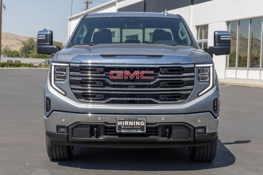 10-Speed Automatic, 4WD, Black Leather. High Capacity Suspension Package, Max Trailering Package (Enhanced Cooling Radiator, Heavier Duty Rear Springs, and Increased RGAWR), Preferred Equipment Group 4SA (120-Volt Bed Mounted Power Outlet, 120-Volt Interior Power Outlet, 170 Amp Alternator, 2 Charge/Data USB Ports, 2 Type-C Charge-Only Rear USB Ports, 6-Speaker Audio System Feature, Auto-Locking Rear Differential, Auxiliary External Transmission Oil Cooler, Chrome Header & Chrome Grille Insert Bars, Color-Keyed Carpeting Floor Covering, Deep-Tinted Glass, Electric Rear-Window Defogger, Front Frame-Mounted Black Recovery Hooks, Front Rain-Sensing Wipers, HD Rear Vision Camera, Integrated Trailer Brake Controller, Keyless Open & Start, LED Cargo Area Lighting, Manual Tilt-Wheel & Telescoping Steering Column, OnStar Services Capable, Perimeter Lighting, Power Door Locks, Power Front Passenger Windows w/Express Up/Down, Power Front Windows w/Driver Express Up/Down, Power Rear Windows w/Express Down, Push Button Start, Rear Wheelhouse Liners, Remote Vehicle Starter System, SiriusXM w/360L Trial Subscription, Steering Wheel Audio Controls, Theft Deterrent System (Unauthorized Entry), and Wi-Fi Hotspot Capable), ProGrade Trailering System (Hitch View and In-Vehicle Trailering System App), Sierra Safety Plus Package (HD Surround Vision, Rear Cross Traffic Braking, Rear Pedestrian Detection, Safety Alert Seat, Trailer Camera Provisions, Trailer Side Blind Zone Alert, and Ultrasonic Front & Rear Park Assist), SLT Convenience Package (2 Charge/Data USB Ports Inside Center Console, Electronic Precision Shift, Floor-Mounted Center Console, Front Bucket Seats, Power Rake & Telescoping Steering Column, Premium Bose 7-Speaker Sound System, Ventilated Driver & Front Passenger Seats, and Wireless Charging), SLT Preferred Package (Adaptive Cruise Control, Heated 2nd Row Outboard Seats, Power Sliding Rear Window w/Rear Defogger, and Universal Home Remote), SLT Premium Plus Package (Chrome Wheel To Wheel Assist Steps and Spray-On Pickup Bedliner w/GMC Logo), Standard Suspension Package, Trailering Package (Hitch Guidance), 10-Speed Automatic, 4WD, Black Leather, 10-Way Power Driver Seat Adjuster w/Lumbar, 10-Way Power Passenger Seat Adjuster w/Lumbar, 20 Polished Aluminum Wheels, 220 Amp Alternator, 4-Wheel Disc Brakes, 6 Speakers, ABS brakes, Air Conditioning, All-Weather Floor Liner (LPO), Alloy wheels, AM/FM radio: SiriusXM with 360L, Apple CarPlay/Android Auto, Auto High-beam Headlights, Auto-dimming door mirrors, Auto-dimming Rear-View mirror, Automatic Emergency Braking, Automatic temperature control, Brake assist, Buckle to Drive, Bumpers: chrome, Compass, Delay-off headlights, Driver door bin, Driver Memory, Driver vanity mirror, Dual Active Exhaust, Dual front impact airbags, Dual front side impact airbags, Electronic Stability Control, Emergency communication system: OnStar, Following Distance Indicator, Forward Collision Alert, Front & Rear Black Molded Splash Guards (LPO), Front 40/20/40 Split-Bench Seat, Front anti-roll bar, Front Center Armrest w/Storage, Front dual zone A/C, Front fog lights, Front License Plate Kit, Front Pedestrian Braking, Front reading lights, Front wheel independent suspension, Fully automatic headlights, Heated door mirrors, Heated Driver & Front Outboard Passenger Seating, Heated front seats, Heated steering wheel, Illuminated entry, IntelliBeam Automatic High Beam On/Off, Lane Keep Assist w/Lane Departure Warning, Low tire pressure warning, Memory seat, Navigation System, Occupant sensing airbag, Outside temperature display, Overhead airbag, Overhead console, Panic alarm, Passenger door bin, Passenger vanity mirror, Perf Leather-Appointed Front Outboard Seat Trim, Power door mirrors, Power driver seat, Power passenger seat, Power steering, Power windows, Pwr-Adjustabl