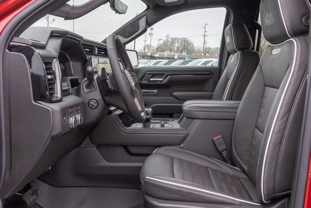 10-Speed Automatic, 4WD, Obsidian Rush Leather. AT4X AEV Edition (1st & 2nd Row AEV All-Weather Floor Liners (LPO), AEV Branded Front Head Restraints, AEV Stamped-Steel Rear Bumper, AEV Tailgate Decal with Exterior Badging, Gloss Black Door Handles, Rocker Protection, and Wheels: 18 x 8.5 12-Spoke High Gloss Black Aluminum), Preferred Equipment Group 4SG (120-Volt Bed Mounted Power Outlet, 120-Volt Interior Power Outlet, 2 Charge/Data USB Ports Inside Center Console, 2 Type-C Charge-Only Rear USB Ports, 2 USB Ports, Bed View Camera, Bose Premium Series with 12- Speaker System, Color-Keyed Carpeting Floor Covering, Deep-Tinted Glass, Driver-Selectable Full-Locking Front Differential, Driver-Selectable Full-Locking Rear Differential, Electric Rear-Window Defogger, Floor-Mounted Center Console, Front Premium Floor Liners with Removable Carpet Insert, Front Rain-Sensing Wipers, Gloss Black Header with Dark Nickel Grille Insert Bars, HD Surround Vision, Heated 2nd Row Outboard Seats, Heated Driver and Front Outboard Passenger Seating, Heavy-Duty Air Filter, Hill Descent Control, Hitch View, in-Vehicle Trailering System App, Integrated Trailer Brake Controller, Keyless Open and Start, LED Cargo Area Lighting, Multicolor 15 Diagonal Head-Up Display, MultiPro Tailgate Audio System by Kicker, Off-Road Suspension, OnStar Services Capable, Perimeter Lighting, Power Door Locks, Power Front Passenger Windows with Express Up/Down, Power Front Windows with Driver Express Up/Down, Power Rake and Telescoping Steering Column, Power Rear Windows with Express Down, Power Sliding Rear Window with Rear Defogger, Power Sunroof, Push Button Start, Rear Cross Traffic Braking, Rear Pedestrian Detection, Rear Premium Floor Liners with Removable Carpet Insert, Rear Wheelhouse Liners, Remote Vehicle Starter System, SiriusXM with 360L Trial Subscription, Spray-on Pickup Bedliner with GMC Logo, Steering Wheel Audio Controls, Theft Deterrent System (unauthorized Entry), Trailer Camera Provisions, Trailer Side Blind Zone Alert, Trailer Tire Pressure Monitor System, Ultrasonic Front and Rear Park Assist, Universal Home Remote, Ventilated Driver and Front Passenger Seats, Wi-Fi Hotspot Capable, and Wireless Charging), Trailering Package (Hitch Guidance), 10-Speed Automatic, 4WD, Obsidian Rush Leather, 12 Speakers, 16-Way Power Driver Seat Adjuster with Lumbar, 16-Way Power Passenger Seat Adjuster with Lumbar, 220 Amp Alternator, 3.23 Rear Axle Ratio, 4-Wheel Disc Brakes, ABS brakes, Air Conditioning, Alloy wheels, AM/FM radio: SiriusXM with 360L, Apple CarPlay/Android Auto, Auto High-beam Headlights, Auto-dimming door mirrors, Auto-dimming Rear-View mirror, Automatic Emergency Braking, Automatic temperature control, Block heater, Brake assist, Buckle to Drive, Compass, Delay-off headlights, Driver door bin, Driver Memory, Driver vanity mirror, Dual front impact airbags, Dual front side impact airbags, Electronic Stability Control, Emergency communication system: OnStar, Engine Block Heater, Following Distance Indicator, Forward Collision Alert, Front anti-roll bar, Front Bucket Seats, Front Center Armrest, Front dual zone A/C, Front fog lights, Front Pedestrian Braking, Front reading lights, Front wheel independent suspension, Full Grain Leather Seat Trim, Fully automatic headlights, Garage door transmitter, Genuine wood dashboard insert, Genuine wood door panel insert, Heads-Up Display, Heated door mirrors, Heated front seats, Heated rear seats, Heated steering wheel, Illuminated entry, IntelliBeam Automatic High Beam on/Off, Lane Keep Assist with Lane Departure Warning, Leather steering wheel, Low tire pressure warning, Memory seat, Navigation System, Occupant sensing airbag, Outside temperature display, Overhead airbag, Overhead console, Panic alarm, Passenger door bin, Passenger vanity mirror, Power door mirrors, Power