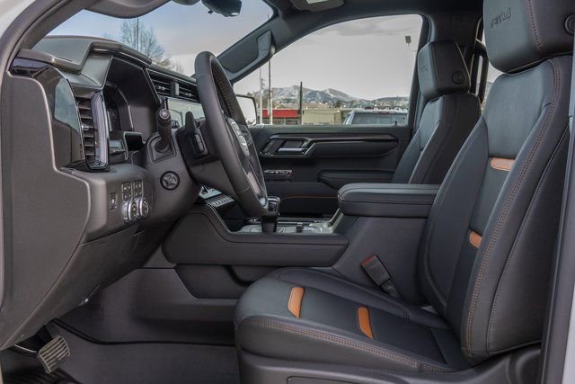 10-Speed Automatic, 4WD, Leather. Trailering Package (Hitch Guidance), 10-Speed Automatic, 4WD, Leather, 10-Way Power Driver Seat Adjuster with Lumbar, 10-Way Power Passenger Seat Adjuster with Lumbar, 120-Volt Bed Mounted Power Outlet, 120-Volt Interior Power Outlet, 2 Charge/Data USB Ports Inside Center Console, 2 Type-C Charge-Only Rear USB Ports, 2 USB Ports, 220 Amp Alternator, 3.23 Rear Axle Ratio, 4-Wheel Disc Brakes, 7 Speakers, ABS brakes, Air Conditioning, Alloy wheels, AM/FM radio: SiriusXM with 360L, Apple CarPlay/Android Auto, Auto High-beam Headlights, Auto-dimming door mirrors, Auto-dimming Rear-View mirror, Auto-Locking Rear Differential, Automatic Emergency Braking, Automatic temperature control, Black Chrome Grille Insert Bars, Block heater, Brake assist, Buckle to Drive, Bumpers: body-color, Color-Keyed Carpeting Floor Covering, Compass, Deep-Tinted Glass, Delay-off headlights, Driver door bin, Driver Memory, Driver vanity mirror, Dual front impact airbags, Dual front side impact airbags, Electric Rear-Window Defogger, Electronic Stability Control, Emergency communication system: OnStar, Floor-Mounted Center Console, Following Distance Indicator, Forward Collision Alert, Front anti-roll bar, Front Bucket Seats, Front Center Armrest, Front dual zone A/C, Front fog lights, Front Pedestrian Braking, Front Premium Floor Liners with Removable Carpet Insert, Front Rain-Sensing Wipers, Front reading lights, Front wheel independent suspension, Fully automatic headlights, HD Surround Vision, Heated 2nd Row Outboard Seats, Heated door mirrors, Heated Driver and Front Outboard Passenger Seating, Heated front seats, Heated rear seats, Heated steering wheel, Heavy-Duty Air Filter, Hill Descent Control, Hitch View, Illuminated entry, in-Vehicle Trailering System App, Integrated Trailer Brake Controller, IntelliBeam Automatic High Beam on/Off, Keyless Open and Start, Lane Keep Assist with Lane Departure Warning, LED Cargo Area Lighting, Low tire pressure warning, Memory seat, Navigation System, Occupant sensing airbag, Off-Road Suspension, OnStar Services Capable, Outside temperature display, Overhead airbag, Overhead console, Panic alarm, Passenger door bin, Passenger vanity mirror, Perforated Front Leather Seat Trim, Perimeter Lighting, Power Door Locks, Power door mirrors, Power driver seat, Power Front Passenger Windows with Express Up/Down, Power Front Windows with Driver Express Up/Down, Power passenger seat, Power Rake and Telescoping Steering Column, Power Rear Windows with Express Down, Power steering, Power windows, Premium Bose 7-Speaker Sound System, Push Button Start, Radio data system, Radio: Premium GMC Infotainment Audio System, Rain sensing wipers, Rear Cross Traffic Braking, Rear Pedestrian Detection, Rear Premium Floor Liners with Removable Carpet Insert, Rear reading lights, Rear seat center armrest, Rear step bumper, Rear Wheelhouse Liners, Rear window defroster, Red Recovery Hooks, Remote keyless entry, Remote Vehicle Starter System, Safety Alert Seat, Security system, SiriusXM with 360L Trial Subscription, Speed control, Speed-sensing steering, Split folding rear seat, Spray-on Pickup Bedliner with GMC Logo, Steering Wheel Audio Controls, Steering wheel mounted audio controls, Tachometer, Telescoping steering wheel, Theft Deterrent System (unauthorized Entry), Tilt steering wheel, Traction control, Trailer Camera Provisions, Trailer Side Blind Zone Alert, Trip computer, Ultrasonic Front and Rear Park Assist, Variably intermittent wipers, Ventilated Driver and Front Passenger Seats, Ventilated front seats, Voltmeter, Wheels: 20 x 9 Machined Aluminum, Wi-Fi Hotspot Capable, Wireless Apple CarPlay/Wireless Android Auto, and Wireless Charging.