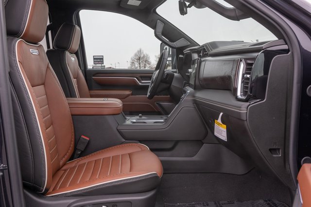 10-Speed Automatic, 4WD, Alpine Umber Leather. Gooseneck/5th Wheel Prep Package, Preferred Equipment Group 5SB (120-Volt Bed Mounted Power Outlet, 120-Volt Instrument Panel Power Outlet, 2 Charge-Only Rear USB Ports, 2 Charge/Data USB Ports Inside Center Console, 2 USB Ports, 2-Speed Active Transfer Case, Bed View Camera with Two Trailer Camera Provisions, Bose Premium Series 12-Speaker System, Deep-Tinted Glass, Electric Rear-Window Defogger, Floor-Mounted Center Console, Front Rain-Sensing Wipers, HD Surround Vision, Heated 2nd Row Outboard Seats, Heated Driver and Front Outboard Passenger Seats, Keyless Open and Start, LED Cargo Area Lighting, LED Smoked Amber Roof Marker Lamps, Manual Tilt-Wheel/Telescoping Steering Column, OnStar Services Capable, Power Front Passenger Windows with Express Up/Down, Power Sliding Rear Window with Defogger, Power Sunroof, Push Button Start, Rear Cross Traffic Alert, Rear Wheelhouse Liners, Remote Vehicle Starter System, Safety Alert Seat, Signature Denali Ultimate Grille in Vadar Chrome, SiriusXM with 360L Trial Subscription, Spray-on Pickup Bedliner with GMC Logo, Steering Wheel Audio Controls, Trailer Cam Provisions and Trailer Viewing Software, Trailer Side Blind Zone Alert, Trailer Tire Pressure Monitor Sensors, Ultrasonic Front and Rear Park Assist, Unauthorized Entry Theft-Deterrent System, Universal Home Remote, Ventilated Driver and Front Passenger Seats, Wireless Charging, and Wireless Phone Projection), Technology Package (Inside Rearview Auo-Dimming Rear Camera Mirror and Multicolor 15 Diagonal Head-Up Display), X31 Off-Road Package (Hill Descent Control and Off-Road Suspension), 10-Speed Automatic, 4WD, Alpine Umber Leather, 12 Speakers, 16-Way Power Driver Seat Adjuster with Lumbar, 16-Way Power Passenger Seat Adjuster with Lumbar, 220-Amp Alternator, 3.42 Axle Ratio, 4-Wheel Disc Brakes, ABS brakes, Air Conditioning, Alloy wheels, AM/FM radio: SiriusXM with 360L, Apple CarPlay/Android Auto, Auto High-beam Headlights, Auto-dimming door mirrors, Auto-dimming Rear-View mirror, Automatic Emergency Braking, Automatic temperature control, Block heater, Brake assist, Buckle to Drive, Bumpers: body-color, Compass, Delay-off headlights, Driver door bin, Driver Memory, Driver vanity mirror, Dual front impact airbags, Dual front side impact airbags, Dual Heavy-Duty 70 Amp Battery, Electronic Stability Control, Emergency communication system: OnStar, Following Distance Indicator, Forward Collision Alert, Front anti-roll bar, Front Bucket Seats, Front Center Armrest, Front dual zone A/C, Front fog lights, Front License Plate Kit, Front Pedestrian Braking, Front reading lights, Front wheel independent suspension, Full Grain Leather Seat Trim, Fully automatic headlights, Garage door transmitter, Genuine wood dashboard insert, Genuine wood door panel insert, Heads-Up Display, Heated door mirrors, Heated front seats, Heated rear seats, Heated steering wheel, Hitch Guidance with Hitch View, Illuminated entry, in-Vehicle Trailering System App, IntelliBeam Automatic High Beam on/Off, Lane Departure Warning System, Leather steering wheel, Low tire pressure warning, Memory seat, Occupant sensing airbag, Outside temperature display, Overhead airbag, Overhead console, Panic alarm, Passenger door bin, Passenger vanity mirror, Pickup Box, Power door mirrors, Power driver seat, Power moonroof, Power passenger seat, Power steering, Power windows, Premium audio system: Premium GMC Infotainment System, Radio: AM/FM Stereo with Premium GMC Infotainment System, Rain sensing wipers, Rear reading lights, Rear seat center armrest, Rear step bumper, Rear window defroster, Remote keyless entry, Security system, Speed control, Speed-sensing steering, Split folding rear seat, Steering wheel mounted audio controls, Tachometer, Telescoping steeri