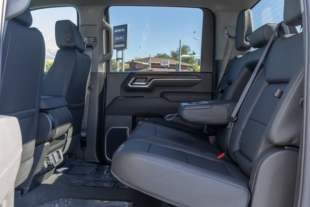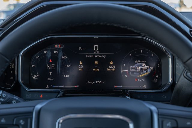 10-Speed Automatic, 4WD, Black Leather. Gooseneck/5th Wheel Prep Package (Spray-On Pickup Bedliner w/GMC Logo), Preferred Equipment Group 4SA (120-Volt Bed Mounted Power Outlet, 120-Volt Instrument Panel Power Outlet, 2 Charge-Only Rear USB Ports, 2 Charge/Data USB Ports, 2-Speed Active Transfer Case, 6-Speaker Audio System Feature, Chrome Surround Grille w/Chrome Insert Bars, Deep-Tinted Glass, Electric Rear-Window Defogger, Front Rain-Sensing Wipers, Heated Driver & Front Outboard Passenger Seats, Keyless Open & Start, LED Cargo Area Lighting, Manual Tilt-Wheel/Telescoping Steering Column, OnStar Services Capable, Power Front Passenger Windows w/Express Up/Down, Push Button Start, Rear Wheelhouse Liners, Remote Vehicle Starter System, SiriusXM w/360L Trial Subscription, Steering Wheel Audio Controls, Unauthorized Entry Theft-Deterrent System, and Wireless Phone Projection), Suspension Package, X31 Off-Road Package (Hill Descent Control and Off-Road Suspension), 10-Speed Automatic, 4WD, Black Leather, 10-Way Power Driver Seat Adjuster w/Lumbar, 10-Way Power Passenger Seat Adjuster w/Lumbar, 18 Machined Aluminum Wheels, 3.73 Rear Axle Ratio, 4-Wheel Disc Brakes, 6 Speakers, 6 Rectangular Chromed Tubular Assist Steps, ABS brakes, Air Conditioning, Alloy wheels, AM/FM radio: SiriusXM with 360L, Apple CarPlay/Android Auto, Auto High-beam Headlights, Auto-dimming door mirrors, Auto-dimming Rear-View mirror, Automatic Emergency Braking, Automatic temperature control, Brake assist, Buckle to Drive, Bumpers: chrome, Compass, Delay-off headlights, Driver door bin, Driver Memory, Driver vanity mirror, Dual front impact airbags, Dual front side impact airbags, Electronic Stability Control, Emergency communication system: OnStar, Following Distance Indicator, Forward Collision Alert, Front 40/20/40 Split-Bench Seats, Front anti-roll bar, Front Center Armrest w/Storage, Front dual zone A/C, Front fog lights, Front License Plate Kit, Front Pedestrian Braking, Front reading lights, Front wheel independent suspension, Fully automatic headlights, GMC MultiPro Tailgate, Heated door mirrors, Heated front seats, Heated steering wheel, Heavy-Duty 80 Amp Battery, Hitch Guidance w/Hitch View, Illuminated entry, In-Vehicle Trailering System App, IntelliBeam Automatic High Beam On/Off, Lane Departure Warning System, Low tire pressure warning, Memory seat, Occupant sensing airbag, Outside temperature display, Overhead airbag, Overhead console, Panic alarm, Passenger door bin, Passenger vanity mirror, Perf Leather-Appointed Front Outboard Seat Trim, Pickup Box, Power door mirrors, Power driver seat, Power passenger seat, Power steering, Power windows, Premium audio system: Premium GMC Infotainment System, Radio: AM/FM w/Premium GMC Infotainment System, Rain sensing wipers, Rear reading lights, Rear seat center armrest, Rear step bumper, Rear window defroster, Remote keyless entry, Security system, Speed control, Speed-sensing steering, Split folding rear seat, Steering wheel mounted audio controls, Tachometer, Telescoping steering wheel, Tilt steering wheel, Traction control, Trailer Tire Pressure Monitor Sensors, Trip computer, Turn signal indicator mirrors, Variably intermittent wipers, and Voltmeter.