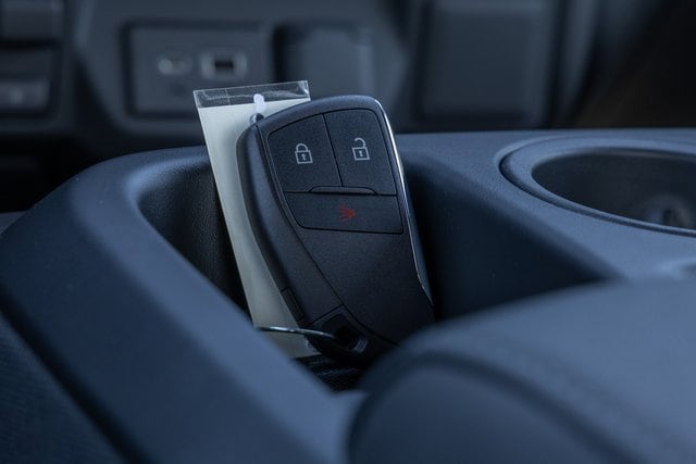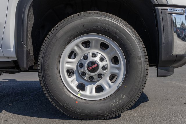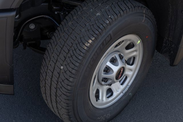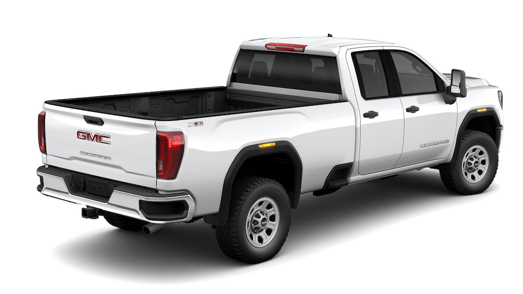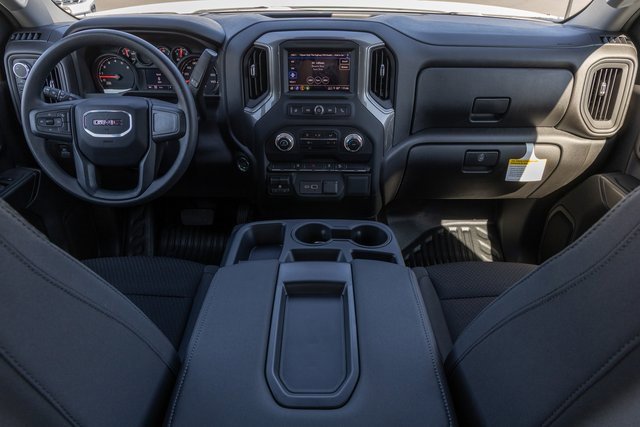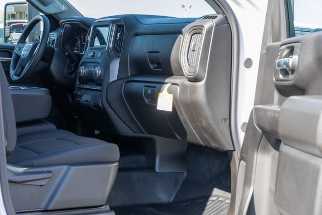 10-Speed Automatic, 4WD, Jet Black Vinyl. Gooseneck/5th Wheel Prep Package (Spray-On Pickup Bedliner), Preferred Equipment Group 1SA (2 Charge/Data USB Ports, 2-Speed Electronic Shift Transfer Case, Chrome Grille w/Flat Black Grille Insert Bars, Push Button Start, Remote Keyless Entry, Solar Absorbing Tinted Glass, and Wireless Phone Projection), Suspension Package, 10-Speed Automatic, 4WD, Jet Black Vinyl, 3.73 Rear Axle Ratio, 4-Way Manual Driver Seat Adjuster, 4-Way Manual Passenger Seat Adjuster, 4-Wheel Disc Brakes, 6 Speakers, 6-Speaker Audio System Feature, ABS brakes, Air Conditioning, AM/FM radio, Auto High-beam Headlights, Automatic Emergency Braking, Brake assist, Buckle to Drive, Bumpers: chrome, Compass, Delay-off headlights, Driver door bin, Dual front impact airbags, Dual front side impact airbags, Electronic Stability Control, Emergency communication system: OnStar Services capable, Exterior Parking Camera Rear, Following Distance Indicator, Forward Collision Alert, Front 40/20/40 Split-Bench Seats w/Lockable Storage, Front anti-roll bar, Front Center Armrest w/Storage, Front License Plate Kit, Front Pedestrian Braking, Front reading lights, Front wheel independent suspension, Fully automatic headlights, Heavy-Duty 80 Amp-Hr Battery, Illuminated entry, IntelliBeam Automatic High Beam On/Off, Lane Departure Warning System, Low tire pressure warning, Occupant sensing airbag, Outside temperature display, Overhead airbag, Overhead console, Panic alarm, Passenger door bin, Passenger vanity mirror, Pickup Bed, Power steering, Power windows, Premium audio system: GMC Infotainment System, Radio: AM/FM w/GMC Infotainment System, Rear reading lights, Rear step bumper, Remote keyless entry, SiriusXM Trial Subscription, Speed control, Split folding rear seat, Tachometer, Tilt steering wheel, Traction control, Trip computer, Upfitter Switch Kit (5), Variably intermittent wipers, Vinyl Seat Trim, and Voltmeter.