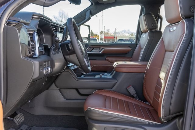 10-Speed Automatic, 4WD, Alpine Umber Leather. Gooseneck/5th Wheel Prep Package, Preferred Equipment Group 5SB (120-Volt Bed Mounted Power Outlet, 120-Volt Instrument Panel Power Outlet, 2 Charge-Only Rear USB Ports, 2 Charge/Data USB Ports Inside Center Console, 2 USB Ports, 2-Speed Active Transfer Case, Bed View Camera with Two Trailer Camera Provisions, Bose Premium Series 12-Speaker System, Deep-Tinted Glass, Electric Rear-Window Defogger, Floor-Mounted Center Console, Front Rain-Sensing Wipers, HD Surround Vision, Heated 2nd Row Outboard Seats, Heated Driver and Front Outboard Passenger Seats, Hitch Guidance with Hitch View, in-Vehicle Trailering App, Keyless Open and Start, LED Cargo Area Lighting, LED Smoked Amber Roof Marker Lamps, Manual Tilt-Wheel/Telescoping Steering Column, Power Front Windows with Passenger Express Up/Down, Power Sliding Rear Window with Defogger, Power Sunroof, ProGrade Trailering System, Push Button Start, Rear Cross Traffic Alert, Rear Wheelhouse Liners, Remote Vehicle Starter System, Safety Alert Seat, Signature Denali Ultimate Grille in Vader Chrome, SiriusXM with 360L Trial Subscription, Spray-on Pickup Bedliner with GMC Logo, Steering Wheel Audio Controls, Trailer Camera Provisions, Trailer Side Blind Zone Alert, Trailer Tire Pressure Monitor Sensors, Ultrasonic Front and Rear Park Assist, Unauthorized Entry Theft-Deterrent System, Universal Home Remote, Ventilated Driver and Front Passenger Seats, Wireless Charging, and Wireless Phone Projection), Technology Package (Auto-Dimming Inside Rearview Mirror with Camera and Multicolor 15 Diagonal Head-Up Display), X31 Off-Road Package (Hill Descent Control and Off-Road Suspension), 10-Speed Automatic, 4WD, Alpine Umber Leather, 12 Speakers, 16-Way Power Driver Seat Adjuster with Lumbar, 16-Way Power Passenger Seat Adjuster with Lumbar, 220 Amp Alternator, 3.42 Rear Axle Ratio, 4-Wheel Disc Brakes, ABS brakes, Air Conditioning, Alloy wheels, AM/FM radio: SiriusXM with 360L, Auto High-beam Headlights, Auto-dimming door mirrors, Auto-dimming Rear-View mirror, Automatic Emergency Braking, Automatic temperature control, Block heater, Brake assist, Buckle to Drive, Bumpers: body-color, Compass, Delay-off headlights, Driver door bin, Driver Memory, Driver vanity mirror, Dual front impact airbags, Dual front side impact airbags, Dual Heavy-Duty 70 Amp-Hour Battery, Electronic Stability Control, Emergency communication system: OnStar Services capable, Exterior Parking Camera Rear, Following Distance Indicator, Forward Collision Alert, Front anti-roll bar, Front Bucket Seats, Front Center Armrest, Front dual zone A/C, Front fog lights, Front License Plate Kit, Front Pedestrian Braking, Front reading lights, Front wheel independent suspension, Full Grain Leather Seat Trim, Fully automatic headlights, Garage door transmitter, Genuine wood dashboard insert, Genuine wood door panel insert, GMC Premium 13.4 Diagonal Information Display, Heads-Up Display, Heated door mirrors, Heated front seats, Heated rear seats, Heated steering wheel, Illuminated entry, IntelliBeam Automatic High Beam on/Off, Lane Departure Warning System, Leather steering wheel, Low tire pressure warning, Memory seat, Occupant sensing airbag, Outside temperature display, Overhead airbag, Overhead console, Panic alarm, Passenger door bin, Passenger vanity mirror, Pickup Bed, Power door mirrors, Power driver seat, Power moonroof, Power passenger seat, Power steering, Power windows, Premium audio system: Premium GMC Infotainment System, Radio: AM/FM Stereo with Premium GMC Infotainment System, Rain sensing wipers, Rear reading lights, Rear seat center armrest, Rear step bumper, Rear window defroster, Remote keyless entry, Security system, Speed control, Speed-sensing steering, Split folding rear seat, Steering wheel mounted