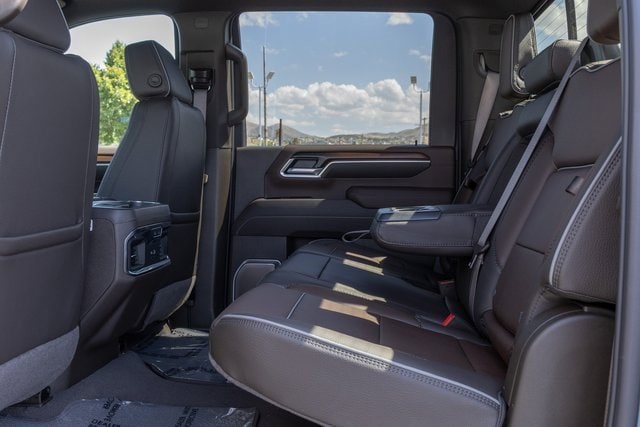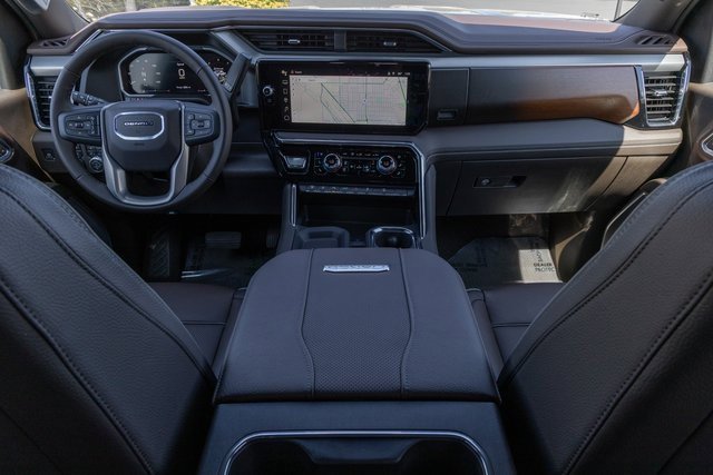 10-Speed Automatic, 4WD, Atmosphere/Brownstone Leather. Denali Reserve Package (Power Sunroof), Gooseneck/5th Wheel Prep Package, Preferred Equipment Group 5SA (120-Volt Bed Mounted Power Outlet, 120-Volt Instrument Panel Power Outlet, 2 Charge-Only Rear USB Ports, 2 Charge/Data USB Ports Inside Center Console, 2 USB Ports, 2-Speed Active Transfer Case, Bed View Camera w/2 Trailer Camera Provisions, Bose Premium 7-Speaker Sound System, Deep-Tinted Glass, Electric Rear-Window Defogger, Floor-Mounted Center Console, Front Rain-Sensing Wipers, HD Surround Vision, Heated 2nd Row Outboard Seats, Heated Driver & Front Outboard Passenger Seats, Keyless Open & Start, LED Cargo Area Lighting, LED Smoked Amber Roof Marker Lamps, Manual Tilt-Wheel/Telescoping Steering Column, Polished Exhaust Tip, Power Front Windows w/Passenger Express Up/Down, Power Sliding Rear Window w/Defogger, Push Button Start, Rear Cross Traffic Alert, Rear Wheelhouse Liners, Remote Vehicle Starter System, Safety Alert Seat, Signature Chrome Denali Grille, SiriusXM w/360L Trial Subscription, Spray-On Pickup Bedliner w/GMC Logo, Steering Wheel Audio Controls, Trailer Camera Provisions, Trailer Side Blind Zone Alert, Ultrasonic Front & Rear Park Assist, Unauthorized Entry Theft-Deterrent System, Universal Home Remote, Ventilated Driver & Front Passenger Seats, Wireless Charging, and Wireless Phone Projection), Technology Package (Auto-Dimming Inside Rearview Mirror w/Camera and Multicolor 15 Diagonal Head-Up Display), X31 Off-Road Package (Hill Descent Control), 10-Speed Automatic, 4WD, Atmosphere/Brownstone Leather, 12-Way Power Driver Seat Adjuster w/Lumbar, 12-Way Power Passenger Seat Adjuster w/Lumbar, 220 Amp Alternator, 4-Wheel Disc Brakes, 7 Speakers, ABS brakes, Air Conditioning, Alloy wheels, AM/FM radio: SiriusXM with 360L, Auto High-beam Headlights, Auto-dimming door mirrors, Auto-dimming Rear-View mirror, Automatic Emergency Braking, Automatic temperature control, Brake assist, Buckle to Drive, Bumpers: body-color, Compass, Delay-off headlights, Driver door bin, Driver Memory, Driver vanity mirror, Dual front impact airbags, Dual front side impact airbags, Electronic Stability Control, Emergency communication system: OnStar Services capable, Engine Block Heater, Exhaust Brake, Exterior Parking Camera Rear, Following Distance Indicator, Forge Perforated Leather Seat Trim, Forward Collision Alert, Front anti-roll bar, Front Bucket Seats, Front Center Armrest, Front dual zone A/C, Front fog lights, Front License Plate Kit, Front Pedestrian Braking, Front reading lights, Front wheel independent suspension, Fully automatic headlights, Garage door transmitter, Genuine wood dashboard insert, Genuine wood door panel insert, GMC Premium 13.4 Diagonal Information Display, Heated door mirrors, Heated front seats, Heated rear seats, Heated steering wheel, Heavy-Duty 80 Amp-Hr Battery, Hitch Guidance w/Hitch View, Illuminated entry, IntelliBeam Automatic High Beam On/Off, Lane Departure Warning System, Low tire pressure warning, Memory seat, Occupant sensing airbag, Off-Road Suspension, Outside temperature display, Overhead airbag, Overhead console, Panic alarm, Passenger door bin, Passenger vanity mirror, Pickup Bed, Power door mirrors, Power driver seat, Power passenger seat, Power steering, Power windows, Power-Retractable Assist Steps, Premium audio system: Premium GMC Infotainment System, Radio: AM/FM w/Premium GMC Infotainment System, Rain sensing wipers, Rear reading lights, Rear seat center armrest, Rear step bumper, Rear window defroster, Remote keyless entry, Security system, Speed control, Speed-sensing steering, Split folding rear seat, Steering wheel mounted audio controls, Tachometer, Telescoping steering wheel, Tilt steering wheel, Traction control, Trip computer, Turn signal indicator mirrors,