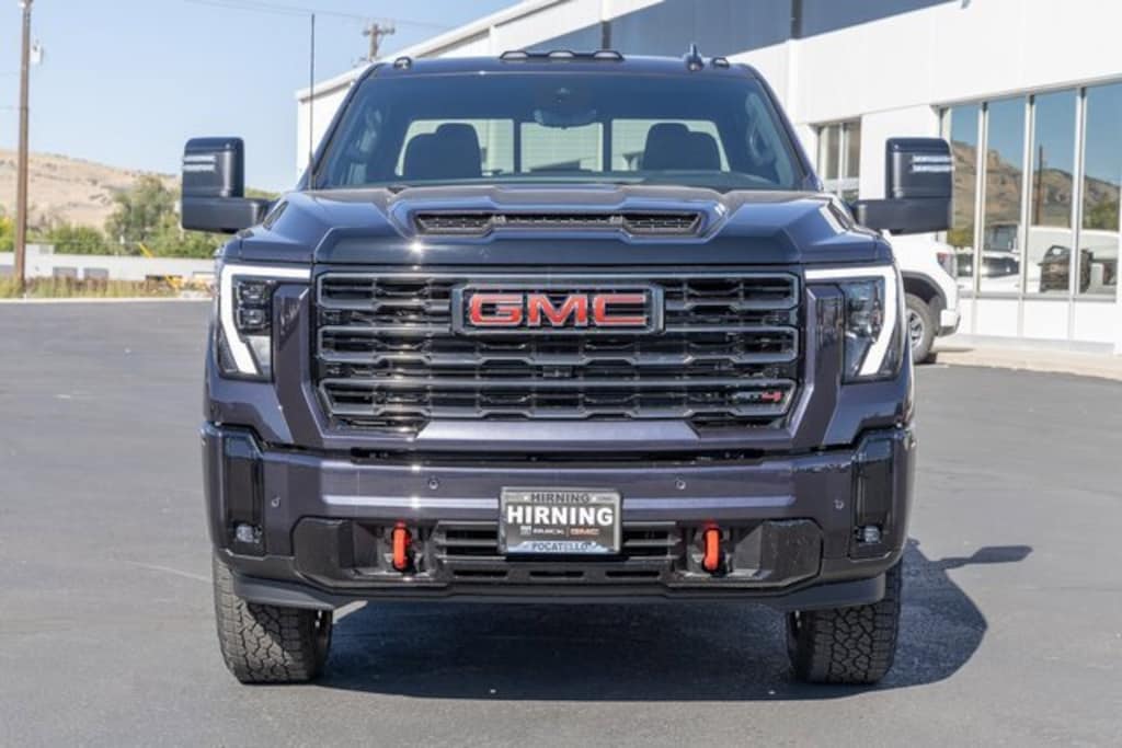 10-Speed Automatic, 4WD, Jet Black With Kalahari Accents Leather. AT4 Preferred Package (LED Smoked Amber Roof Marker Lamps, Power Sliding Rear Window w/Defogger, and Universal Home Remote), AT4 Premium Plus Package (Off-Road High Clearance Step (LPO) and Power Sunroof), Gooseneck/5th Wheel Prep Package, Preferred Equipment Group 4SB (120-Volt Bed Mounted Power Outlet, 120-Volt Instrument Panel Power Outlet, 2 Charge-Only Rear USB Ports, 2 Charge/Data USB Ports Inside Center Console, 2 USB Ports, 2-Speed Active Transfer Case, Bed View Camera w/2 Trailer Camera Provisions, Bose Premium 7-Speaker Sound System, Deep-Tinted Glass, Electric Rear-Window Defogger, Floor-Mounted Center Console, Front Rain-Sensing Wipers, Gloss Black Header & Grille Insert Bars, HD Surround Vision, Heated 2nd Row Outboard Seats, Heated Driver & Front Outboard Passenger Seats, Keyless Open & Start, LED Cargo Area Lighting, Manual Tilt-Wheel/Telescoping Steering Column, Power Front Windows w/Passenger Express Up/Down, Prem Front Floor Liners w/Removable Carpet Insert, Prem Rear Floor Liners w/Removable Carpet Insert, Push Button Start, Rear Cross Traffic Alert, Rear Wheelhouse Liners, Remote Vehicle Starter System, Safety Alert Seat, SiriusXM w/360L Trial Subscription, Spray-On Pickup Bedliner w/GMC Logo, Steering Wheel Audio Controls, Trailer Camera Provisions, Trailer Side Blind Zone Alert, Ultrasonic Front & Rear Park Assist, Unauthorized Entry Theft-Deterrent System, Ventilated Driver & Front Passenger Seats, Wireless Charging, and Wireless Phone Projection), Technology Package (Auto-Dimming Inside Rearview Mirror w/Camera and Multicolor 15 Diagonal Head-Up Display), X31 Off-Road Package (Hill Descent Control), 10-Speed Automatic, 4WD, Jet Black With Kalahari Accents Leather, 10-Way Power Driver Seat Adjuster w/Lumbar, 10-Way Power Passenger Seat Adjuster w/Lumbar, 220 Amp Alternator, 4-Wheel Disc Brakes, 7 Speakers, ABS brakes, Air Conditioning, Alloy wheels, AM/FM radio: SiriusXM with 360L, Auto High-beam Headlights, Auto-dimming door mirrors, Auto-dimming Rear-View mirror, Automatic Emergency Braking, Automatic temperature control, Black Power-Retractable Assist Steps, Brake assist, Buckle to Drive, Bumpers: body-color, Compass, Delay-off headlights, Driver door bin, Driver Memory, Driver vanity mirror, Dual front impact airbags, Dual front side impact airbags, Electronic Stability Control, Emergency communication system: OnStar Services capable, Engine Block Heater, Exhaust Brake, Exterior Parking Camera Rear, Following Distance Indicator, Forward Collision Alert, Front anti-roll bar, Front Bucket Seats, Front Center Armrest, Front dual zone A/C, Front fog lights, Front License Plate Kit, Front Pedestrian Braking, Front reading lights, Front wheel independent suspension, Fully automatic headlights, GMC Premium 13.4 Diagonal Information Display, Heated door mirrors, Heated front seats, Heated rear seats, Heated steering wheel, Heavy-Duty 80 Amp-Hr Battery, Hitch Guidance w/Hitch View, Illuminated entry, IntelliBeam Automatic High Beam On/Off, Lane Departure Warning System, Low tire pressure warning, Memory seat, Occupant sensing airbag, Off-Road Suspension, Outside temperature display, Overhead airbag, Overhead console, Panic alarm, Passenger door bin, Passenger vanity mirror, Perforated Front Leather Seat Trim, Pickup Bed, Power door mirrors, Power driver seat, Power passenger seat, Power steering, Power windows, Premium audio system: Premium GMC Infotainment System, Radio: AM/FM w/Premium GMC Infotainment System, Rain sensing wipers, Rear reading lights, Rear seat center armrest, Rear step bumper, Rear window defroster, Remote keyless entry, Security system, Speed control, Speed-sensing steering, Split folding rear seat, Steering wheel mounted audio controls, Tachometer, Telescoping ste