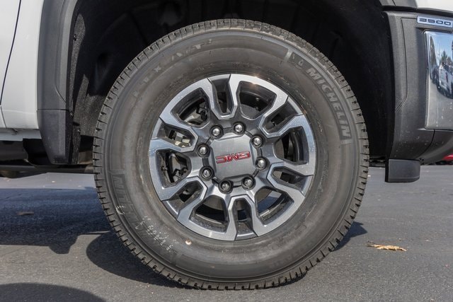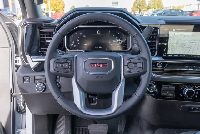 10-Speed Automatic, 4WD, Black Cloth. Gooseneck/5th Wheel Prep Package (Spray-on Pickup Bedliner with GMC Logo), Preferred Equipment Group 3SA (120-Volt Bed Mounted Power Outlet, 120-Volt Instrument Panel Power Outlet, 2 Charge-Only Rear USB Ports, 2 Charge/Data USB Ports, 2-Speed Electronic Shift Transfer Case, 4-Way Manual Driver Seat Adjuster, Chrome Surround Grille with Chrome Insert Bars, Deep-Tinted Glass, Keyless Open and Start, Push Button Start, SiriusXM with 360L Trial Subscription, Steering Wheel Audio Controls, and Wireless Phone Projection), Remote Start Package (Electric Rear-Window Defogger, Remote Vehicle Starter System, and Unauthorized Entry Theft-Deterrent System), SLE Convenience Package (10-Way Power Driver Seat Adjuster with Lumbar, Dual-Zone Automatic Climate Control, LED Fog Lamps, and Manual Tilt-Wheel/Telescoping Steering Column), SLE Heated Package (Heated Driver and Front Outboard Passenger Seats and Heated Steering Wheel), SLE Value Package, Suspension Package, 10-Speed Automatic, 4WD, Black Cloth, 3.73 Rear Axle Ratio, 4-Way Manual Passenger Seat Adjuster, 4-Wheel Disc Brakes, 6 Speakers, 6-Speaker Audio System Feature, ABS brakes, Air Conditioning, AM/FM radio: SiriusXM with 360L, Auto High-beam Headlights, Automatic Emergency Braking, Brake assist, Buckle to Drive, Bumpers: chrome, Cloth Seat Trim, Compass, Delay-off headlights, Driver door bin, Driver vanity mirror, Dual front impact airbags, Dual front side impact airbags, Electronic Stability Control, Emergency communication system: OnStar Services capable, Exterior Parking Camera Rear, Following Distance Indicator, Forward Collision Alert, Front 40/20/40 Split-Bench Seats with Lockable Storage, Front anti-roll bar, Front Center Armrest w/Storage, Front License Plate Kit, Front Pedestrian Braking, Front reading lights, Front wheel independent suspension, Fully automatic headlights, GMC Premium 13.4 Diagonal Information Display, Heated door mirrors, Heavy-Duty 80 Amp-Hour Battery, Illuminated entry, IntelliBeam Automatic High Beam on/Off, Lane Departure Warning System, Low tire pressure warning, Occupant sensing airbag, Outside temperature display, Overhead airbag, Overhead console, Panic alarm, Passenger door bin, Passenger vanity mirror, Pickup Bed, Power door mirrors, Power steering, Power windows, Premium audio system: Premium GMC Infotainment System, Radio: AM/FM Stereo with Premium GMC Infotainment System, Rear reading lights, Rear step bumper, Remote keyless entry, Speed control, Split folding rear seat, Steering wheel mounted audio controls, Tachometer, Tilt steering wheel, Traction control, Trip computer, Turn signal indicator mirrors, Upfitter Switch Kit (5), Variably intermittent wipers, and Voltmeter.