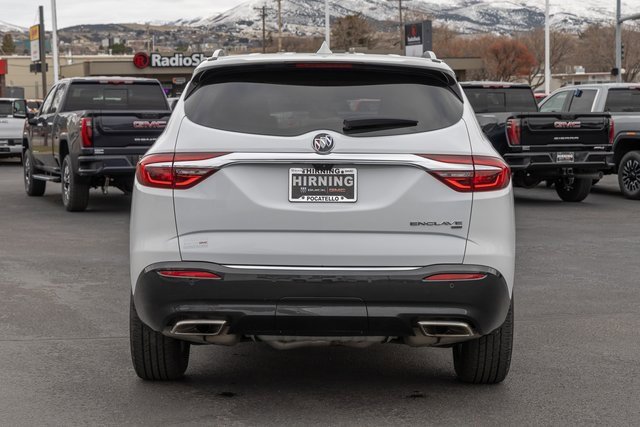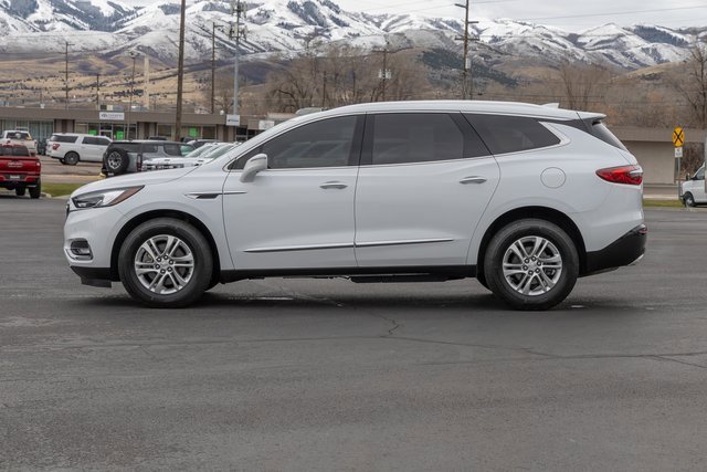 AWD. 5000lbs Trailering Package (Heavy-Duty Cooling System), Buick Interior Protection Package (LPO) (3rd Row All-Weather Floor Mats, All-Weather Cargo Mat (LPO), and All-Weather Floor Mats), Front Mounting License Plate Bracket Package, Memory Package, Preferred Equipment Group 1SN, Premium Package (120-Volt Power Outlet, 3rd Row 60/40 Power Fold Split-Bench, Automatic Heated Steering Wheel, Bose Performance-Enhanced 10-Speaker System, HD Radio, Heated 2nd Row Outboard Seats, Heated Driver & Front Passenger Seats, Outside Heated Power-Adjustable Mirrors, Power Tilt & Telescopic Steering Column, and Ventilated Driver & Front Passenger Seats), AWD, 10 Speakers, 18 Painted Aluminum Wheels, 3.49 Axle Ratio, 3rd row seats: split-bench, 4-Wheel Disc Brakes, 7-Passenger Seating, ABS brakes, Air Conditioning, Alloy wheels, AM/FM radio: SiriusXM, Apple CarPlay/Android Auto, Audio memory, Auto High-beam Headlights, Auto tilt-away steering wheel, Auto-dimming door mirrors, Auto-dimming Rear-View mirror, Automatic temperature control, Bird's Eye View Surround Vision, Brake assist, Bumpers: body-color, Compass, Delay-off headlights, Driver door bin, Driver vanity mirror, Dual front impact airbags, Dual front side impact airbags, Electronic Stability Control, Emergency communication system: OnStar and Buick connected services capable, Four wheel independent suspension, Front anti-roll bar, Front Bucket Seats, Front Center Armrest, Front dual zone A/C, Front reading lights, Fully automatic headlights, Garage door transmitter, Heated door mirrors, Heated front seats, Heated rear seats, Heated steering wheel, Illuminated entry, Inside Rearview Mirror w/Full Camera Display, Leather steering wheel, Low tire pressure warning, Memory seat, Navigation System, Occupant sensing airbag, Outside temperature display, Overhead airbag, Overhead console, Panic alarm, Passenger door bin, Passenger vanity mirror, Perforated Leather-Appointed Seat Trim, Power door mirrors, Power Driver Lumbar Control Seat Adjuster, Power driver seat, Power Liftgate, Power Passenger Lumbar Control Seat Adjuster, Power passenger seat, Power steering, Power windows, Premium audio system: Buick Infotainment System, Radio data system, Radio: Buick Infotainment Sys AM/FM Stereo w/Nav, Radio: Buick Infotainment System AM/FM Stereo, Rear air conditioning, Rear anti-roll bar, Rear reading lights, Rear window defroster, Rear window wiper, Remote keyless entry, Roof rack: rails only, Security system, SiriusXM Radio, Speed control, Speed-sensing steering, Spoiler, Steering wheel memory, Steering wheel mounted audio controls, Tachometer, Telescoping steering wheel, Tilt steering wheel, Traction control, Trip computer, Turn signal indicator mirrors, Variably intermittent wipers, Ventilated front seats, and Voltmeter.