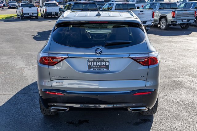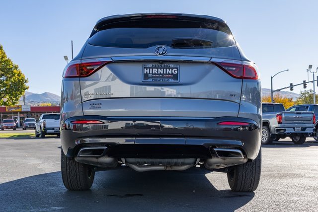 AWD, Experience Buick Package, Front Power Sliding Moonroof, Sport Touring Edition, Sport Touring Liftgate Badging, Unique Sport Grille w/Body-Color Surround, Wheels: 20 Gloss Black. Experience Buick Package (Front Power Sliding Moonroof), Sport Touring Edition (Sport Touring Liftgate Badging, Unique Sport Grille w/Body-Color Surround, and Wheels: 20 Gloss Black), 5,000 lbs Trailering Package (Heavy-Duty Cooling System, Hitch Guidance, and Hitch Guidance w/Hitch View), Front Mounting License Plate Bracket Package, Preferred Equipment Group 1SL (Vehicle Health Management), AWD, 18 Aluminum Wheels, 3.49 Final Drive Axle Ratio, 3rd row seats: split-bench, 4-Wheel Disc Brakes, 6 Speakers, 6-Speaker Audio System Feature, 6-Way Power Front Passenger Seat Adjuster, 7-Passenger Seating, 8-Way Power Driver Seat Adjuster, ABS brakes, Air Conditioning, Alloy wheels, AM/FM radio: SiriusXM with 360L, Auto High-beam Headlights, Auto-dimming door mirrors, Auto-dimming Rear-View mirror, Automatic temperature control, Brake assist, Bumpers: body-color, Compass, Delay-off headlights, Driver door bin, Driver vanity mirror, Dual front impact airbags, Dual front side impact airbags, Electronic Stability Control, Emergency communication system: OnStar and Buick connected services capable, Four wheel independent suspension, Front anti-roll bar, Front Bucket Seats, Front Center Armrest, Front dual zone A/C, Front reading lights, Fully automatic headlights, Garage door transmitter, Heated door mirrors, Heated Driver & Front Passenger Seats, Heated front seats, Heated steering wheel, Illuminated entry, Leather steering wheel, Low tire pressure warning, Occupant sensing airbag, Outside temperature display, Overhead airbag, Overhead console, Panic alarm, Passenger door bin, Passenger vanity mirror, Perforated Leather-Appointed Seat Trim, Power door mirrors, Power Driver Lumbar Control Seat Adjuster, Power driver seat, Power Liftgate, Power Passenger Lumbar Control Seat Adjuster, Power passenger seat, Power steering, Power windows, Premium audio system: Buick Infotainment System, Radio data system, Radio: Buick Infotainment System AM/FM Stereo, Rear air conditioning, Rear anti-roll bar, Rear reading lights, Rear window defroster, Rear window wiper, Remote keyless entry, Security system, SiriusXM w/360L, Speed control, Speed-sensing steering, Spoiler, Steering wheel mounted audio controls, Tachometer, Telescoping steering wheel, Tilt steering wheel, Traction control, Trip computer, Turn signal indicator mirrors, Variably intermittent wipers, Voltmeter, and Wireless Apple CarPlay/Wireless Android Auto.