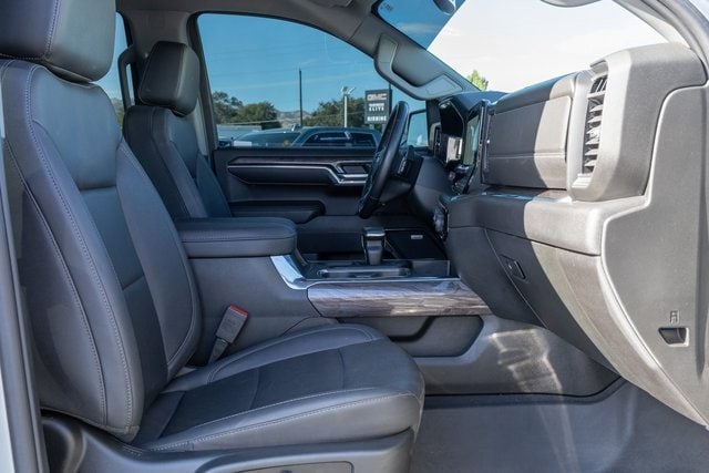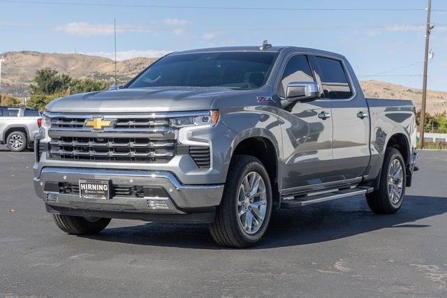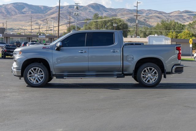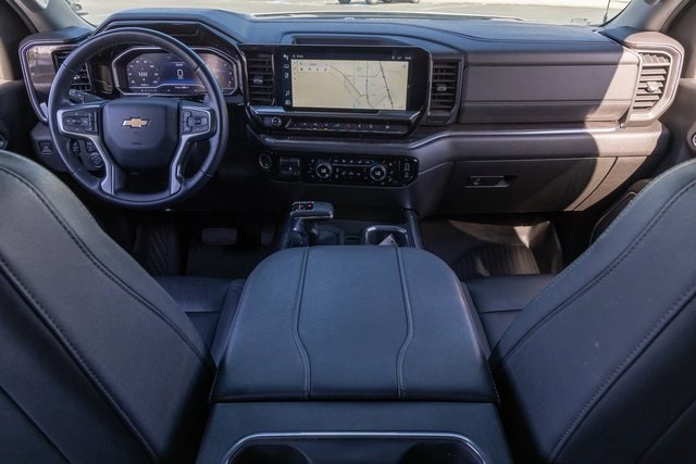 Certified. 2023 Chevrolet Silverado 1500 LTZ Sterling Gray Metallic 4WD 10-Speed Automatic EcoTec3 5.3L V8 Odometer is 26041 miles below market average!10-Speed Automatic, 4WD, Jet Black Leather. High Capacity Suspension Package, LTZ Convenience Package (2 USB Data Ports, Floor Mounted Center Console, Power Tilt & Telescoping Steering Column, Premium Bose 7-Speaker Sound System, Ventilated Driver & Front Passenger Seats, and Wireless Charging), LTZ Convenience Package II (2nd Row Heated Outboard Seats, Adaptive Cruise Control, Power Sliding Rear Window w/Rear Defogger, and Universal Home Remote), LTZ Plus Package, Preferred Equipment Group 1LZ (10-Way Power Driver Seat w/Lumbar, 10-Way Power Passenger Seat Adjuster w/Lumbar, 12.3 Multicolor Reconfigurable Digital Display, 120-Volt Bed Mounted Power Outlet, 120-Volt Instrument Panel Power Outlet, Auto-Dimming Inside Rear-View Mirror, Auto-Locking Rear Differential, Bluetooth® For Phone, Chevrolet Connected Access Capable, Chrome Mirror Caps, Color-Keyed Carpeting Floor Covering, Compass, Deep-Tinted Glass, Driver Memory, Dual Rear USB Ports (Charge Only), Electric Rear-Window Defogger, Electrical Steering Column Lock, Electronic Cruise Control, Front Frame-Mounted Black Recovery Hooks, Front LED Fog Lamps, Front Rainsensing Wipers, Front Rubberized Vinyl Floor Mats, Heated Driver & Front Outboard Passenger Seats, Heated Steering Wheel, Hitch Guidance w/Hitch View, Integrated Trailer Brake Controller, Keyless Open & Start, LED Cargo Area Lighting, OnStar & Chevrolet Connected Services Capable, Outside Heated Power-Adjustable Mirrors, Power Front Passenger Windows w/Express Up/Down, Power Front Windows w/Driver Express Up/Down, Power Rear Windows w/Express Down, Power Tailgate, Rear Rubberized-Vinyl Floor Mats, Rear Wheelhouse Liners, Remote Vehicle Starter System, SiriusXM w/360L, Standard Tailgate, Steering Wheel Audio Controls, Theft Deterrent System (Unauthorized Entry), Trailering App, Wi-Fi Hot Spot Capable, Wireless Phone Projection, and Wrapped Steering Wheel), Safety Package (HD Surround Vision, Perimeter Lighting, Rear Cross Traffic Alert-Braking, Rear Pedestrian Alert, Safety Alert Seat, Trailer Camera Provisions, Trailer Side Blind Zone Alert, and Ultrasonic Front & Rear Park Assist), Trailering Package (Hitch Guidance), Up-Level Rear Seat w/Storage Package, Z71 Off-Road & Protection Package (All-Weather Floor Liner (LPO) (AAK) and Chevytec Spray-On Black Bedliner), Z71 Off-Road Package (Dual Exhaust w/Polished Outlets, Heavy-Duty Air Filter, Hill Descent Control, and Off-Road Suspension), Chevrolet Certified Pre-Owned Certified, 10-Speed Automatic, 4WD, Jet Black Leather, 170 Amp Alternator, 3.23 Rear Axle Ratio, 4-Wheel Disc Brakes, 7 Speakers, ABS brakes, Air Conditioning, Alloy wheels, AM/FM radio: SiriusXM with 360L, Apple CarPlay/Android Auto, Auto High-beam Headlights, Auto-dimming door mirrors, Auto-dimming Rear-View mirror, Automatic Emergency Braking, Automatic temperature control, Brake assist, Bumpers: chrome, Delay-off headlights, Driver door bin, Driver vanity mirror, Dual front impact airbags, Dual front side impact airbags, Electronic Stability Control, Electronic Transmission Range Selector Shifter, Following Distance Indicator, Forward Collision Alert, Front anti-roll bar, Front Bucket Seats, Front Center Armrest, Front dual zone A/C, Front fog lights, Front License Plate Kit, Front Pedestrian Braking, Front reading lights, Front wheel independent suspension, Fully automatic headlights, Heated door mirrors, Heated front seats, Heated steering wheel, Illuminated entry, IntelliBeam Automatic High Beam On/Off, Lane Keep Assist w/Lane Departure Warning, Low tire pressure warning, Memory seat, Not Equipped w/Steering Column Lock, Occupant sensing airbag, Outside temperature display, Overhead airbag, Overhead console, Panic alarm, Passenger door bin, Passenger vanity mirror, Perforated Leather-Appointed Front Seat Trim, Power door mirrors, Po