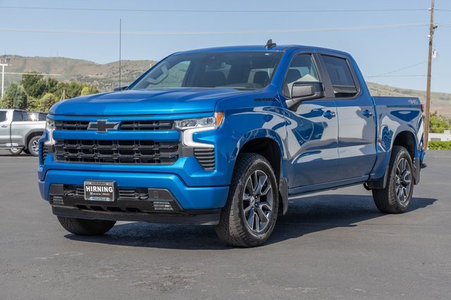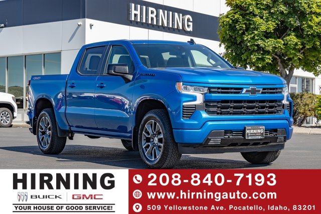 Certified. 2024 Chevrolet Silverado 1500 RST Glacier Blue Metallic 4WD 8-Speed Automatic 2.7L I4 Turbocharged DOHC 16V LEV3-SULEV30 310hp8-Speed Automatic, 4WD, Black Cloth. Convenience Package (10-Way Power Driver Seat w/Lumbar, 120-Volt Bed Mounted Power Outlet, 120-Volt Interior Power Outlet, Dual Rear USB Ports (Charge Only), Dual-Zone Automatic Climate Control, Electric Rear-Window Defogger, Heated Driver & Front Outboard Passenger Seats, Heated Steering Wheel, Keyless Open & Start, Remote Vehicle Starter System, Theft Deterrent System (Unauthorized Entry), and Wrapped Steering Wheel), Dark Essentials Package (LPO) (Black Name Plates (LPO)), High Capacity Suspension Package, Preferred Equipment Group 1SP (12.3 Multicolor Reconfigurable Digital Display, 6-Speaker Audio System, All-Star Edition, Auto-Locking Rear Differential, Bluetooth® For Phone, Chevrolet Connected Access Capable, Color-Keyed Carpeting Floor Covering, Deep-Tinted Glass, Electrical Steering Column Lock, Electronic Cruise Control, EZ Lift Power Lock & Release Tailgate, Front Frame-Mounted Black Recovery Hooks, Front LED Fog Lamps, Front Rubberized Vinyl Floor Mats, HD Rear Vision Camera, Heated Power-Adjustable Outside Mirrors, High Gloss Black Mirror Caps, Inside Rear-View Mirror w/Tilt, LED Cargo Area Lighting, OnStar & Chevrolet Connected Services Capable, Power Front Windows w/Driver Express Up/Down, Power Front Windows w/Passenger Express Down, Power Rear Windows w/Express Down, Rear 60/40 Folding Bench Seat (Folds Up), Rear Rubberized-Vinyl Floor Mats, SiriusXM w/360L, Standard Tailgate, Steering Wheel Audio Controls, and Wi-Fi Hot Spot Capable), Protection Package (Chevytec Spray-On Black Bedliner and Rear Wheelhouse Liners), Standard Suspension Package, Trailering Package (Hitch Guidance), Chevrolet Certified Pre-Owned Certified, 8-Speed Automatic, 4WD, Black Cloth, 220 Amp Alternator, 3.42 Rear Axle Ratio, 4-Wheel Disc Brakes, 40/20/40 Front Split-Bench Seat, 6 Speakers, ABS brakes, Air Conditioning, All-Weather Floor Liner (LPO), Alloy wheels, AM/FM radio: SiriusXM with 360L, Auto High-beam Headlights, Automatic Emergency Braking, Automatic temperature control, Black Chrome Exhaust Tip (LPO), Black Tailgate CHEVROLET Lettering (LPO), Brake assist, Bumpers: body-color, Cloth Seat Trim, Compass, Delay-off headlights, Driver door bin, Driver vanity mirror, Dual front impact airbags, Dual front side impact airbags, Electronic Stability Control, Following Distance Indicator, Forward Collision Alert, Front anti-roll bar, Front Center Armrest w/Storage, Front dual zone A/C, Front fog lights, Front License Plate Kit, Front Pedestrian Braking, Front reading lights, Front wheel independent suspension, Fully automatic headlights, Heated door mirrors, Heated front seats, Heated steering wheel, Illuminated entry, Integrated Trailer Brake Controller, IntelliBeam Automatic High Beam On/Off, Lane Keep Assist w/Lane Departure Warning, Low tire pressure warning, Occupant sensing airbag, Outside temperature display, Overhead airbag, Overhead console, Panic alarm, Passenger door bin, Passenger vanity mirror, Power door mirrors, Power driver seat, Power steering, Power windows, Premium audio system: Chevrolet Infotainment 3 Premium, Radio data system, Radio: Chevrolet Infotainment 3 Premium System, Rear reading lights, Rear step bumper, Rear window defroster, Remote keyless entry, Security system, Single Outlet Exhaust, Speed control, Speed-sensing steering, Split folding rear seat, Steering wheel mounted audio controls, Tachometer, Telescoping steering wheel, Tilt steering wheel, Traction control, Trip computer, Variably intermittent wipers, Voltmeter, Wheels: 18 x 8.5 Bright Silver Painted Aluminum, and Wheels: 20 x 9 Painted Aluminum.Chevrolet Certified Pre-Owned Details:* Warranty Deductible: $0* Limited Warranty: 12 Month/12,000 Mile (whichever comes first) from certified purchase date* 172 Point Inspection