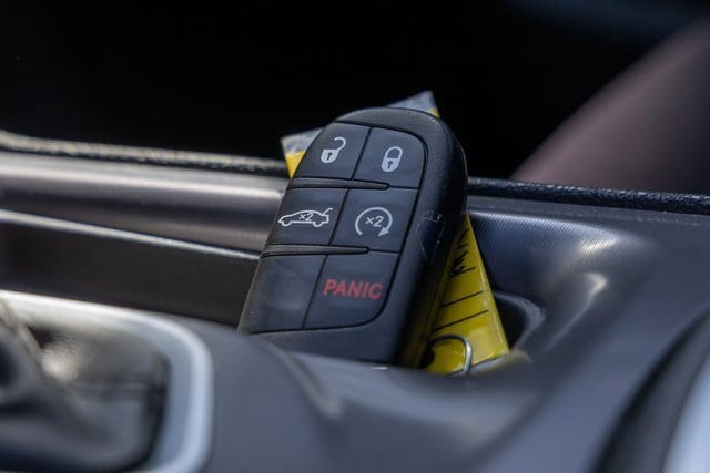 AWD, Black Cloth. Cold Weather Package (Heated Front Seats and Heated Steering Wheel), Quick Order Package 29G, AWD, Black Cloth, 1-Yr SiriusXM Guardian Trial, 2-Piece Shark Fin Antenna, 4-Wheel Disc Brakes, 4G LTE Wi-Fi Hot Spot, 6 Speakers, 8.4 Touchscreen Display, ABS brakes, Air Conditioning, Alloy wheels, AM/FM radio: SiriusXM, Anti-whiplash front head restraints, Apple CarPlay, Apple CarPlay/Android Auto, Auto-dimming Rear-View mirror, Automatic temperature control, Brake assist, Bumpers: body-color, Compass, Delay-off headlights, Driver & Passenger Lower LED Lamps, Driver door bin, Driver vanity mirror, Dual front impact airbags, Dual front side impact airbags, Electronic Stability Control, Emergency communication system: SiriusXM Guardian, For Details, Visit DriveUconnect.com, Four wheel independent suspension, Front anti-roll bar, Front Bucket Seats, Front Center Armrest, Front dual zone A/C, Front License Plate Bracket, Front reading lights, Fully automatic headlights, Google Android Auto, GPS Antenna Input, HD Radio, Heated door mirrors, Houndstooth Cloth Sport Seat, Illuminated entry, Integrated Center Stack Radio, Integrated Voice Command w/Bluetooth, Knee airbag, Leather Shift Knob, Low tire pressure warning, Media Hub (2 USB, AUX), Occupant sensing airbag, Outside temperature display, Overhead airbag, Overhead console, Panic alarm, ParkView Rear Back-Up Camera, Passenger door bin, Passenger vanity mirror, Power 2-Way Driver Lumbar Adjust, Power door mirrors, Power driver seat, Power steering, Power windows, Radio: Uconnect 4C w/8.4 Display, Rear anti-roll bar, Rear Armrest w/Cupholder Seat, Rear reading lights, Rear seat center armrest, Rear window defroster, Remote keyless entry, Speed control, Speed-Sensitive Wipers, Split folding rear seat, Spoiler, Steering wheel mounted audio controls, Tachometer, Telescoping steering wheel, Tilt steering wheel, Traction control, Trip computer, USB Host Flip, Variably intermittent wipers, and Wheels: 19 x 7.5 Satin CarboN.