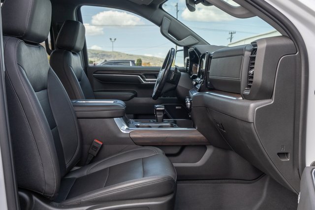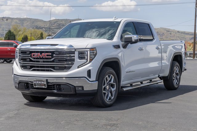 2022 GMC Sierra 1500 SLT 4WD Summit White 10-Speed Automatic 3.0L I6 22/26 City/Highway MPG10-Speed Automatic, 4WD, Jet Black Leather. High Capacity Suspension Package, Preferred Equipment Group 4SA (120-Volt Bed Mounted Power Outlet, 120-Volt Instrument Panel Power Outlet, 170 Amp Alternator, 2 Charge/Data USB Ports, 2 Type-C Charge-Only Rear USB Ports, 6-Speaker Audio System Feature, Auto-Locking Rear Differential, Auxiliary External Transmission Oil Cooler, Chrome Header & Chrome Grille Insert Bars, Color-Keyed Carpeting Floor Covering, Compass, Deep-Tinted Glass, Electric Rear-Window Defogger, Electrical Steering Column Lock, Front Frame-Mounted Black Recovery Hooks, Front Rainsensing Wipers, GMC Connected Access Capable, HD Rear Vision Camera, Heated Steering Wheel, Keyless Open & Start, LED Cargo Area Lighting, Manual Tilt-Wheel & Telescoping Steering Column, OnStar & GMC Connected Services Capable, Perimeter Lighting, Power Door Locks, Power Front Passenger Windows w/Express Up/Down, Power Front Windows w/Driver Express Up/Down, Power Rear Windows w/Express Down, Push Button Start, Rear Wheelhouse Liners, Remote Vehicle Starter System, SiriusXM w/360L, Steering Wheel Audio Controls, Theft Deterrent System (Unauthorized Entry), Wi-Fi Hotspot Capable, and Wireless Phone Projection), ProGrade Trailering System (Hitch Guidance w/Hitch View, In-Vehicle Trailering App, and Integrated Trailer Brake Controller), Sierra Safety Plus Package (HD Surround Vision, Rear Cross Traffic Braking, Rear Pedestrian Detection, Safety Alert Seat, Trailer Camera Provisions, Trailer Side Blind Zone Alert, and Ultrasonic Front & Rear Park Assist), SLT Convenience Package (2 Charge/Data USB Ports Inside Center Console, Electronic Precision Shift, Floor-Mounted Center Console, Front Bucket Seats, Power Rake & Telescoping Steering Column, Premium Bose 7-Speaker Sound System, Ventilated Driver & Front Passenger Seats, and Wireless Charging), Standard Suspension Package, Trailering Package (Hitch Guidance), X31 Off-Road Package (Dual Exhaust System, Heavy-Duty Air Filter, Hill Descent Control, and X31 Hard Badge), 10-Speed Automatic, 4WD, Jet Black Leather, 10-Way Power Driver Seat Adjuster w/Lumbar, 10-Way Power Passenger Seat Adjuster w/Lumbar, 20 Polished Aluminum Wheels, 220 Amp Alternator, 3.23 Rear Axle Ratio, 4-Wheel Disc Brakes, 6 Speakers, ABS brakes, Air Conditioning, Alloy wheels, AM/FM radio: SiriusXM with 360L, Apple CarPlay/Android Auto, Auto High-beam Headlights, Auto-dimming door mirrors, Auto-dimming Rear-View mirror, Automatic Emergency Braking, Automatic temperature control, Brake assist, Buckle to Drive, Bumpers: chrome, Delay-off headlights, Driver door bin, Driver Memory, Driver vanity mirror, Dual front impact airbags, Dual front side impact airbags, Electronic Stability Control, Emergency communication system: OnStar and GMC Connected Services capable, Engine Block Heater, Exterior Parking Camera Rear, Following Distance Indicator, Forward Collision Alert, Front 40/20/40 Split-Bench Seat, Front anti-roll bar, Front Center Armrest w/Storage, Front dual zone A/C, Front fog lights, Front License Plate Kit, Front Pedestrian Braking, Front reading lights, Front wheel independent suspension, Fully automatic headlights, Heated door mirrors, Heated Driver & Front Outboard Passenger Seating, Heated front seats, Heated steering wheel, Illuminated entry, IntelliBeam Automatic High Beam On/Off, Lane Keep Assist w/Lane Departure Warning, Low tire pressure warning, Memory seat, Navigation System, Not Equipped w/Front & Rear Park Assist, Not Equipped w/Heated/Ventilated Front Seats, Occupant sensing airbag, Outside temperature display, Overhead airbag, Overhead console, Panic alarm, Passenger door bin, Passenger vanity mirror, Perf Leather-Appointed Front Outboard Seat Trim, Power door mirrors, Power driver seat, Power passenger seat, Power steering, Power windows, Premium audio system: GMC Infotainment System, Radio data system