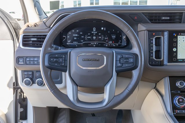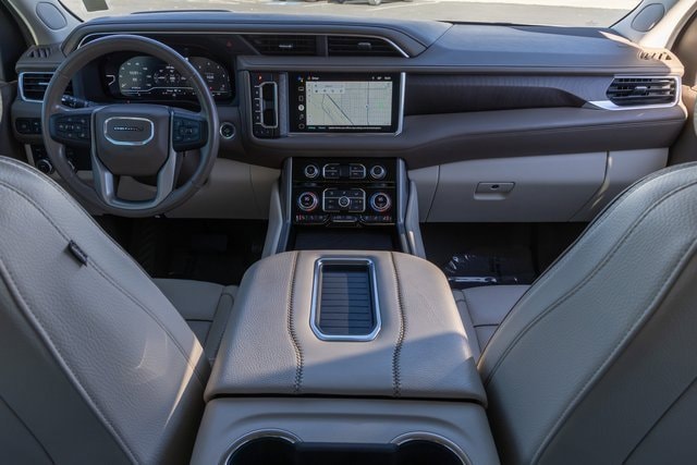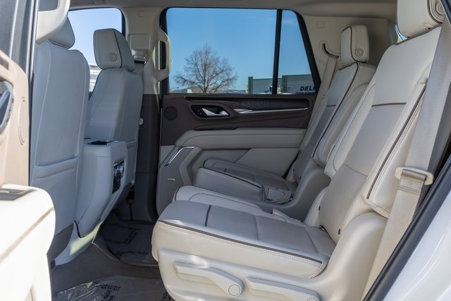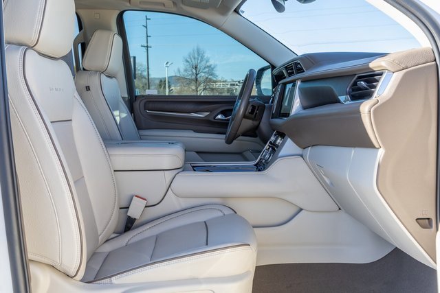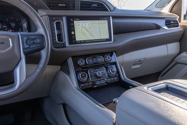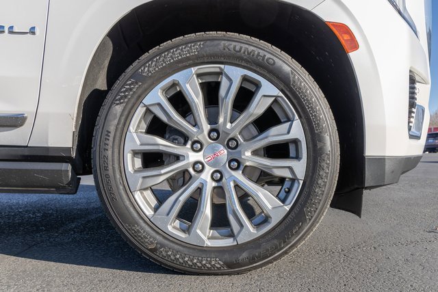 4WD, Bose 14-Speaker Surround w/CenterPoint, Heads-Up Display, Lane Change Alert w/Side Blind Zone Alert, Wheel Locks (Set of 4) (LPO), Wheels: 22 x 9 Bright Machined Aluminum. License Plate Front Mounting Package, Preferred Equipment Group 5SA (15 Diagonal Multi-Color Head-Up Display, 2 Presets For Outside Rearview Mirrors, 3 Years of GMC Connected Services, 3rd Row 60/40 Power-Folding Split-Bench Seat, Automatic Stop/Start, Bright Front & Rear Door Sill Plates, Chrome Door Handles w/Body-Color Strip, Dual Exhaust System, Floor Console, Galvano Bodyside Moldings, Hands-Free Power Programmable Rear Liftgate, HD Surround Vision, Heated & Ventilated Driver & Front Passenger Seats, Heated 2nd Row Outboard Position Seats, Heated Driver & Front Passenger Seats, Heated Steering Wheel, Hill Descent Control, Inside Rear-View Auto-Dimming Mirror, Outside Heated Power-Adjustable Mirrors, Power Release 2nd Row Bucket Seats, Power Tilt & Telescopic Steering Column, Rear Pedestrian Alert, Safety Alert Seat, Start/Stop System Disable Button, Universal Home Remote, and Wireless Charging), 4WD, Bose 14-Speaker Surround w/CenterPoint, Heads-Up Display, Lane Change Alert w/Side Blind Zone Alert, Wheel Locks (Set of 4) (LPO), Wheels: 22 x 9 Bright Machined Aluminum, 14 Speakers, 3.23 Rear Axle Ratio, 3rd row seats: split-bench, 4-Wheel Disc Brakes, ABS brakes, Adaptive suspension, Air Conditioning, Alloy wheels, AM/FM radio: SiriusXM with 360L, AM/FM Stereo, Apple CarPlay/Android Auto, Auto High-beam Headlights, Auto-dimming door mirrors, Auto-dimming Rear-View mirror, Auto-leveling suspension, Automatic Emergency Braking, Automatic temperature control, Black Roof Rack Cross Rails, Bodyside moldings, Brake assist, Bumpers: body-color, Cat-Back Performance Exhaust (LPO), Compass, Delay-off headlights, Driver door bin, Driver vanity mirror, Dual front impact airbags, Dual front side impact airbags, Dual-Pane Panoramic Power Sunroof, Electronic Stability Control, Emergency communication system: OnStar and GMC Connected Services capable, Following Distance Indicator, Forward Collision Alert, Four wheel independent suspension, Front & Rear Park Assist, Front anti-roll bar, Front Bucket Seats, Front Center Armrest, Front dual zone A/C, Front fog lights, Front Pedestrian Braking, Front reading lights, Fully automatic headlights, Garage door transmitter, Heated door mirrors, Heated front seats, Heated rear seats, Heated steering wheel, Illuminated entry, IntelliBeam Automatic High Beam On/Off, Lane Keep Assist w/Lane Departure Warning, Leather steering wheel, Low tire pressure warning, Magnetic Ride Control Suspension, Memory seat, Navigation System, Not Equipped w/4-Way Driver & Fr Pass Pwr Lumbar, Not Equipped w/Steering Column Lock, Occupant sensing airbag, Outside temperature display, Overhead airbag, Overhead console, Panic alarm, Passenger door bin, Passenger vanity mirror, Perforated Leather Seating Surfaces, Power door mirrors, Power driver seat, Power Liftgate, Power passenger seat, Power steering, Power windows, Power-Retractable Assist Steps, Rain sensing wipers, Rear air conditioning, Rear anti-roll bar, Rear Cross Traffic Alert, Rear reading lights, Rear window defroster, Rear window wiper, Remote keyless entry, Roof rack: rails only, Security system, SiriusXM w/360L, Speed control, Speed-sensing steering, Split folding rear seat, Spoiler, Steering wheel memory, Steering wheel mounted audio controls, Tachometer, Telescoping steering wheel, Tilt steering wheel, Traction control, Trip computer, Turn signal indicator mirrors, Variably intermittent wipers, Ventilated front seats, Voltmeter, and Wheels: 20 x 9 6-Spoke Polished Aluminum.