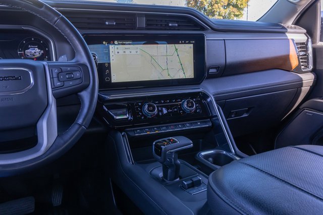 10-Speed Automatic, 4WD, Jet Black Leather. Denali Reserve Super Package (Enhanced Automatic Emergency Braking, GMC MultiPro Power Steps, Power Sunroof, Super Cruise, Super Cruise Wrapped Steering Wheel, Wheel Locks (Set of 4) (LPO), and Wheels: 22 x 9 Painted Aluminum), Preferred Equipment Group 5SA (120-Volt Bed Mounted Power Outlet, 120-Volt Instrument Panel Power Outlet, 170 Amp Alternator, 2 Charge/Data USB Ports Inside Center Console, 2 Type-C Charge-Only Rear USB Ports, 2 USB Ports, Auto-Locking Rear Differential, Auxiliary External Transmission Oil Cooler, Bed View Camera, Chrome Header w/Signature Denali Chrome Grille, Chrome Recovery Hooks, Chrome Wheel To Wheel Assist Steps, Color-Keyed Carpeting Floor Covering, Compass, Deep-Tinted Glass, Electric Rear-Window Defogger, Electrical Steering Column Lock, Floor-Mounted Center Console, Front Rainsensing Wipers, GMC Connected Access Capable, HD Surround Vision, Heated 2nd Row Outboard Seats, Heated Driver & Front Outboard Passenger Seating, Heavy-Duty Air Filter, Hill Descent Control, Hitch Guidance w/Hitch View, In-Vehicle Trailering App, Integrated Trailer Brake Controller, Keyless Open & Start, LED Cargo Area Lighting, OnStar & GMC Connected Services Capable, Perimeter Lighting, Power Door Locks, Power Front Passenger Windows w/Express Up/Down, Power Front Windows w/Driver Express Up/Down, Power Rake & Telescoping Steering Column, Power Rear Windows w/Express Down, Power Sliding Rear Window w/Rear Defogger, Premium Bose 7-Speaker Sound System, Push Button Start, Rear Cross Traffic Braking, Rear Pedestrian Detection, Rear Wheelhouse Liners, Remote Vehicle Starter System, SiriusXM w/360L, Spray-On Pickup Bed Liner w/Denali Logo, Steering Wheel Audio Controls, Theft Deterrent System (Unauthorized Entry), Trailer Camera Provisions, Trailer Side Blind Zone Alert, Ultrasonic Front & Rear Park Assist, Universal Home Remote, Ventilated Driver & Front Passenger Seats, Wi-Fi Hotspot Capable, Wireless Charging, and Wireless Phone Projection), Technology Package (Adaptive Cruise Control, Multicolor 15 Diagonal Head-Up Display, and Rear Camera Mirror), Trailering Package (Hitch Guidance), 10-Speed Automatic, 4WD, Jet Black Leather, 10-Way Power Driver Seat Adjuster w/Lumbar, 10-Way Power Passenger Seat Adjuster w/Lumbar, 220 Amp Alternator, 3.23 Rear Axle Ratio, 4-Wheel Disc Brakes, 7 Speakers, ABS brakes, Adaptive suspension, Air Conditioning, Alloy wheels, AM/FM radio, Apple CarPlay/Android Auto, Auto High-beam Headlights, Auto-dimming door mirrors, Auto-dimming Rear-View mirror, Automatic Emergency Braking, Automatic temperature control, Brake assist, Buckle to Drive, Bumpers: body-color, Delay-off headlights, Denali Premium Suspension w/Adaptive Ride Control, Driver door bin, Driver Memory, Driver vanity mirror, Dual front impact airbags, Dual front side impact airbags, Electronic Stability Control, Emergency communication system: OnStar and GMC connected services capable, Engine Block Heater, Following Distance Indicator, Forge Perforated Leather Seat Trim, Forward Collision Alert, Front anti-roll bar, Front Bucket Seats, Front Center Armrest, Front dual zone A/C, Front fog lights, Front License Plate Kit, Front Pedestrian Braking, Front Prem Floor Liners w/Removable Carpet Insert, Front reading lights, Front wheel independent suspension, Fully automatic headlights, Garage door transmitter, Genuine wood console insert, Genuine wood dashboard insert, Genuine wood door panel insert, Heated door mirrors, Heated front seats, Heated rear seats, Heated steering wheel, Illuminated entry, IntelliBeam Automatic High Beam On/Off, Lane Keep Assist w/Lane Departure Warning, Low tire pressure warning, Memory seat, Navigation System, Not Equipped w/Steering Column Lock, Occupant sensing