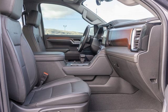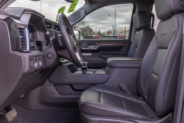 10-Speed Automatic, 4WD, Jet Black Leather. Denali Reserve Package (GMC MultiPro Power Steps, Power Sunroof, Wheel Locks (Set of 4) (LPO), and Wheels: 22 x 9 Painted Aluminum), Preferred Equipment Group 5SA (120-Volt Bed Mounted Power Outlet, 120-Volt Interior Power Outlet, 170 Amp Alternator, 2 Charge/Data USB Ports Inside Center Console, 2 Type-C Charge-Only Rear USB Ports, 2 USB Ports, Auto-Locking Rear Differential, Auxiliary External Transmission Oil Cooler, Bed View Camera, Chrome Header w/Signature Denali Chrome Grille, Chrome Recovery Hooks, Chrome Wheel To Wheel Assist Steps, Color-Keyed Carpeting Floor Covering, Deep-Tinted Glass, Electric Rear-Window Defogger, Floor-Mounted Center Console, Front Rain-Sensing Wipers, GMC Connected Access Capable, HD Surround Vision, Heated 2nd Row Outboard Seats, Heated Driver & Front Outboard Passenger Seating, Heavy-Duty Air Filter, Hill Descent Control, Hitch View, In-Vehicle Trailering System App, Integrated Trailer Brake Controller, Keyless Open & Start, LED Cargo Area Lighting, OnStar & GMC Connected Services Capable, Perimeter Lighting, Power Door Locks, Power Front Passenger Windows w/Express Up/Down, Power Front Windows w/Driver Express Up/Down, Power Rake & Telescoping Steering Column, Power Rear Windows w/Express Down, Power Sliding Rear Window w/Rear Defogger, Premium Bose 7-Speaker Sound System, Push Button Start, Rear Cross Traffic Braking, Rear Pedestrian Detection, Rear Wheelhouse Liners, Remote Vehicle Starter System, SiriusXM w/360L, Spray-On Pickup Bedliner w/Denali Logo, Steering Wheel Audio Controls, Theft Deterrent System (Unauthorized Entry), Trailer Camera Provisions, Trailer Side Blind Zone Alert, Ultrasonic Front & Rear Park Assist, Universal Home Remote, Ventilated Driver & Front Passenger Seats, Wi-Fi Hotspot Capable, and Wireless Charging), Technology Package (Multicolor 15 Diagonal Head-Up Display and Rear Camera Mirror), Trailering Package (Hitch Guidance), 10-Speed Automatic, 4WD, Jet Black Leather, 12-Way Power Driver Seat Adjuster w/Lumbar, 12-Way Power Passenger Seat Adjuster w/Lumbar, 220 Amp Alternator, 3.23 Rear Axle Ratio, 4-Wheel Disc Brakes, 7 Speakers, ABS brakes, Adaptive suspension, Air Conditioning, Alloy wheels, AM/FM radio: SiriusXM with 360L, Apple CarPlay/Android Auto, Auto High-beam Headlights, Auto-dimming door mirrors, Auto-dimming Rear-View mirror, Automatic temperature control, Brake assist, Buckle to Drive, Bumpers: body-color, Compass, Delay-off headlights, Denali Premium Suspension w/Adaptive Ride Control, Driver door bin, Driver Memory, Driver vanity mirror, Dual front impact airbags, Dual front side impact airbags, Electronic Stability Control, Emergency communication system: OnStar and GMC connected services capable, Engine Block Heater, Enhanced Automatic Emergency Braking, Following Distance Indicator, Forge Perforated Leather Seat Trim, Forward Collision Alert, Front anti-roll bar, Front Bucket Seats, Front Center Armrest, Front dual zone A/C, Front fog lights, Front License Plate Kit, Front Pedestrian Braking, Front reading lights, Front wheel independent suspension, Fully automatic headlights, Garage door transmitter, Genuine wood console insert, Genuine wood dashboard insert, Genuine wood door panel insert, Heated door mirrors, Heated front seats, Heated rear seats, Heated steering wheel, Illuminated entry, IntelliBeam Automatic High Beam On/Off, Lane Keep Assist w/Lane Departure Warning, Low tire pressure warning, Memory seat, Navigation System, Occupant sensing airbag, Outside temperature display, Overhead airbag, Overhead console, Panic alarm, Passenger door bin, Passenger vanity mirror, Power door mirrors, Power driver seat, Power passenger seat, Power steering, Power windows, Premium audio system: GMC Infot
