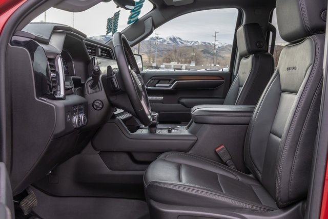 10-Speed Automatic, 4WD, Black Leather. Denali Reserve Package (GMC MultiPro Power Steps, Power Sunroof, Wheel Locks (Set of 4) (LPO), and Wheels: 22 x 9 Painted Aluminum), Preferred Equipment Group 5SA (120-Volt Bed Mounted Power Outlet, 120-Volt Interior Power Outlet, 170 Amp Alternator, 2 Charge/Data USB Ports Inside Center Console, 2 Type-C Charge-Only Rear USB Ports, 2 USB Ports, Auto-Locking Rear Differential, Auxiliary External Transmission Oil Cooler, Bed View Camera, Chrome Header w/Signature Denali Chrome Grille, Chrome Recovery Hooks, Chrome Wheel To Wheel Assist Steps, Color-Keyed Carpeting Floor Covering, Deep-Tinted Glass, Electric Rear-Window Defogger, Floor-Mounted Center Console, Front Rain-Sensing Wipers, GMC Connected Access Capable, HD Surround Vision, Heated 2nd Row Outboard Seats, Heated Driver & Front Outboard Passenger Seating, Heavy-Duty Air Filter, Hill Descent Control, Hitch View, In-Vehicle Trailering System App, Integrated Trailer Brake Controller, Keyless Open & Start, LED Cargo Area Lighting, OnStar & GMC Connected Services Capable, Perimeter Lighting, Power Door Locks, Power Front Passenger Windows w/Express Up/Down, Power Front Windows w/Driver Express Up/Down, Power Rake & Telescoping Steering Column, Power Rear Windows w/Express Down, Power Sliding Rear Window w/Rear Defogger, Premium Bose 7-Speaker Sound System, Push Button Start, Rear Cross Traffic Braking, Rear Pedestrian Detection, Rear Wheelhouse Liners, Remote Vehicle Starter System, SiriusXM w/360L, Spray-On Pickup Bedliner w/Denali Logo, Steering Wheel Audio Controls, Theft Deterrent System (Unauthorized Entry), Trailer Camera Provisions, Trailer Side Blind Zone Alert, Ultrasonic Front & Rear Park Assist, Universal Home Remote, Ventilated Driver & Front Passenger Seats, Wi-Fi Hotspot Capable, and Wireless Charging), Technology Package (Multicolor 15 Diagonal Head-Up Display and Rear Camera Mirror), Trailering Package (Hitch Guidance), 10-Speed Automatic, 4WD, Black Leather, 12-Way Power Driver Seat Adjuster w/Lumbar, 12-Way Power Passenger Seat Adjuster w/Lumbar, 220 Amp Alternator, 3.23 Rear Axle Ratio, 4-Wheel Disc Brakes, 7 Speakers, ABS brakes, Adaptive suspension, Air Conditioning, Alloy wheels, AM/FM radio: SiriusXM with 360L, Apple CarPlay/Android Auto, Auto High-beam Headlights, Auto-dimming door mirrors, Auto-dimming Rear-View mirror, Automatic temperature control, Brake assist, Buckle to Drive, Bumpers: body-color, Compass, Delay-off headlights, Denali Premium Suspension w/Adaptive Ride Control, Driver door bin, Driver Memory, Driver vanity mirror, Dual front impact airbags, Dual front side impact airbags, Electronic Stability Control, Emergency communication system: OnStar and GMC connected services capable, Engine Block Heater, Enhanced Automatic Emergency Braking, Following Distance Indicator, Forge Perforated Leather Seat Trim, Forward Collision Alert, Front anti-roll bar, Front Bucket Seats, Front Center Armrest, Front dual zone A/C, Front fog lights, Front License Plate Kit, Front Pedestrian Braking, Front reading lights, Front wheel independent suspension, Fully automatic headlights, Garage door transmitter, Genuine wood console insert, Genuine wood dashboard insert, Genuine wood door panel insert, Heated door mirrors, Heated front seats, Heated rear seats, Heated steering wheel, Illuminated entry, IntelliBeam Automatic High Beam On/Off, Lane Keep Assist w/Lane Departure Warning, Low tire pressure warning, Memory seat, Navigation System, Occupant sensing airbag, Outside temperature display, Overhead airbag, Overhead console, Panic alarm, Passenger door bin, Passenger vanity mirror, Power door mirrors, Power driver seat, Power passenger seat, Power steering, Power windows, Premium audio system: GMC Infotainment System, Ra
