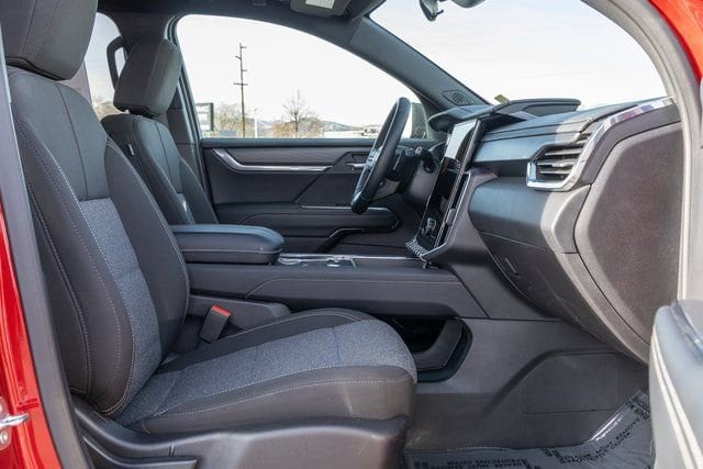 AWD, After Dark Cloth. Preferred Equipment Group 4SD, AWD, After Dark Cloth, 12 Speakers, 18 x 7.5 Aluminum Wheels, 2-Way Driver Power Lumbar Seat Adjuster, 3.49 Final Drive Axle Ratio, 3rd row seats: split-bench, 4-Way Manual Front Passenger Seat Adjuster, 4-Wheel Disc Brakes, 8-Passenger Seating (2-3-3 Seating Configuration), 8-Way Power Driver Seat Adjuster, ABS brakes, Air Conditioning, Alloy wheels, AM/FM radio: SiriusXM with 360L, Apple CarPlay/Android Auto, Auto High-beam Headlights, Auto-dimming Rear-View mirror, Automatic temperature control, Black Wheel Lug Nuts, Bodyside moldings, Bose Premium 12-Speaker System with Sub-Woofer, Brake assist, Bumpers: body-color, Cloth Seat Trim, Compass, Delay-off headlights, Driver door bin, Driver vanity mirror, Dual front impact airbags, Dual front side impact airbags, Electronic Stability Control, Emergency communication system: OnStar Services capable, Exterior Parking Camera Rear, Four wheel independent suspension, Front anti-roll bar, Front Bucket Seats, Front Center Armrest, Front dual zone A/C, Front fog lights, Front License Plate Bracket, Front reading lights, Fully automatic headlights, Heated door mirrors, Heated Driver and Front Passenger Seats, Heated front seats, Heated steering wheel, Illuminated entry, Leather steering wheel, Low tire pressure warning, Navigation System, Occupant sensing airbag, Outside temperature display, Overhead airbag, Overhead console, Panic alarm, Passenger door bin, Passenger vanity mirror, Power door mirrors, Power driver seat, Power Liftgate, Power steering, Power windows, Radio data system, Radio: 15 Diagonal Premium GMC Infotainment System, Rear air conditioning, Rear anti-roll bar, Rear reading lights, Rear seat center armrest, Rear side impact airbag, Rear window defroster, Rear window wiper, Remote keyless entry, Security system, SiriusXM with 360L, Speed control, Speed-sensing steering, Split folding rear seat, Spoiler, Sport steering wheel, Steering wheel mounted audio controls, Tachometer, Telescoping steering wheel, Tilt steering wheel, Traction control, Trip computer, Turn signal indicator mirrors, Variably intermittent wipers, and Voltmeter.