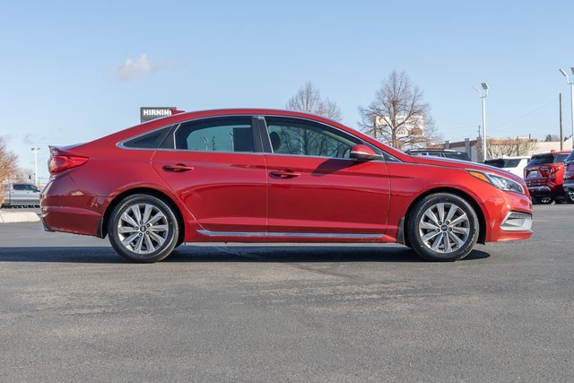 2016 Hyundai Sonata Sport Venetian Red Metallic FWD 6-Speed Automatic with Shiftronic 2.4L I4 DGI DOHC 16V ULEV II 185hp 25/38 City/Highway MPG Odometer is 20474 miles below market average!Beige Cloth. Option Group 01, Winter Weather Package (All-Weather Floor Mats and Mud Guards), Beige Cloth, 4-Wheel Disc Brakes, 6 Speakers, ABS brakes, Air Conditioning, Alloy wheels, AM/FM radio: SiriusXM, Apple CarPlay & Android Auto, Brake assist, Bumpers: body-color, CD player, Delay-off headlights, Driver door bin, Driver vanity mirror, Dual front impact airbags, Dual front side impact airbags, Electronic Stability Control, Emergency communication system: Blue Link, Exterior Parking Camera Rear, Four wheel independent suspension, Front anti-roll bar, Front Bucket Seats, Front Center Armrest, Front reading lights, Fully automatic headlights, Heated door mirrors, Illuminated entry, Knee airbag, Low tire pressure warning, Occupant sensing airbag, Outside temperature display, Overhead airbag, Overhead console, Panic alarm, Passenger door bin, Passenger vanity mirror, Power door mirrors, Power driver seat, Power steering, Power windows, Radio data system, Radio: AM/FM/SiriusXM/CD/MP3 Display Audio, Rear anti-roll bar, Rear reading lights, Rear seat center armrest, Rear window defroster, Remote keyless entry, Security system, Speed control, Speed-sensing steering, Speed-Sensitive Wipers, Split folding rear seat, Spoiler, Steering wheel mounted audio controls, Tachometer, Telescoping steering wheel, Tilt steering wheel, Traction control, Trip computer, Turn signal indicator mirrors, Variably intermittent wipers, Wheels: 17 x 7.0J Aluminum Alloy, and YES Essentials Premium Cloth Seating Surfaces.We are your House of Good Service!!! Please contact us for more information or to schedule a test drive today. www.hirningauto.com #GMCSierra1500.Awards:* 2016 KBB.com 10 Best Sedans Under $25,000 * 2016 KBB.com Best Buy Awards Finalist * 2016 KBB.com 10 Best Used Cars Under $15,000 * 2016 KBB.com 10 Most Comfortable Cars Under $30,000 * 2016 KBB.com 16 Best Family Cars * 2016 KBB.com 10 Most Awarded Cars * 2016 KBB.com 5-Year Cost to Own Awards
