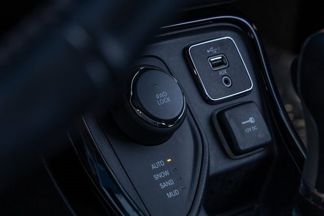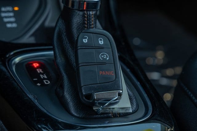 4WD. Quick Order Package 27G (DISC), 4WD, 3.73 Axle Ratio, 4-Wheel Disc Brakes, 6 Speakers, ABS brakes, Air Conditioning, Alloy wheels, AM/FM radio: SiriusXM, Anti-whiplash front head restraints, Apple CarPlay/Android Auto, Auto-dimming Rear-View mirror, Automatic temperature control, Brake assist, Bumpers: body-color, Compass, Delay-off headlights, Driver door bin, Driver vanity mirror, Dual front impact airbags, Dual front side impact airbags, Electronic Stability Control, Four wheel independent suspension, Front anti-roll bar, Front Bucket Seats, Front Center Armrest w/Storage, Front dual zone A/C, Front fog lights, Front reading lights, Fully automatic headlights, Google Android Auto, GPS Antenna Input, Heated door mirrors, Heated front seats, Heated steering wheel, Illuminated entry, Knee airbag, Leather Shift Knob, Leather Trimmed Bucket Seats, Low tire pressure warning, Manufacturer's Statement of Origin, Occupant sensing airbag, Outside temperature display, Overhead airbag, Overhead console, Panic alarm, ParkView Rear Back-Up Camera, Passenger door bin, Passenger vanity mirror, Power door mirrors, Power driver seat, Power steering, Power windows, Radio: Uconnect 4 w/8.4 Display, Rear anti-roll bar, Rear seat center armrest, Rear window defroster, Rear window wiper, Remote keyless entry, Roof rack: rails only, Security system, Speed control, Split folding rear seat, Spoiler, Steering wheel mounted audio controls, Tachometer, Telescoping steering wheel, Tilt steering wheel, Traction control, Trip computer, Turn signal indicator mirrors, USB Host Flip, Variably intermittent wipers, and Wheels: 18 x 7.0 Polished/Gray Pockets Aluminum.