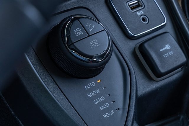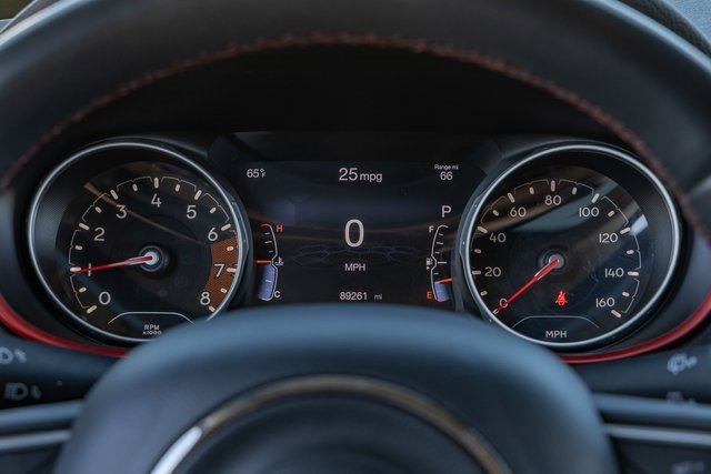 4WD. Quick Order Package 2GE, 4WD, 17 x 6.5 Aluminum Wheels, 4-Wheel Disc Brakes, 4.334 Axle Ratio, 6 Speakers, ABS brakes, Air Conditioning, Alloy wheels, AM/FM radio: SiriusXM, Anti-whiplash front head restraints, Apple CarPlay/Android Auto, Auto High-beam Headlights, Auto-dimming Rear-View mirror, Automatic temperature control, Brake assist, Bumpers: body-color, Compass, Delay-off headlights, Driver door bin, Driver vanity mirror, Dual front impact airbags, Dual front side impact airbags, Electronic Stability Control, Four wheel independent suspension, Front anti-roll bar, Front Bucket Seats, Front Center Armrest w/Storage, Front dual zone A/C, Front fog lights, Front License Plate Bracket, Front reading lights, Fully automatic headlights, Heated door mirrors, Illuminated entry, Knee airbag, Leather Shift Knob, Low tire pressure warning, Manufacturer's Statement of Origin, Occupant sensing airbag, Outside temperature display, Overhead airbag, Overhead console, Panic alarm, ParkView Rear Back-Up Camera, Passenger door bin, Passenger vanity mirror, Power door mirrors, Power steering, Power windows, Premium Cloth/Leather Trim Bucket Seats, Radio: Uconnect 4 w/8.4 Display, Rain sensing wipers, Rear anti-roll bar, Rear seat center armrest, Rear window defroster, Rear window wiper, Remote keyless entry, Roof rack: rails only, Security system, Speed control, Split folding rear seat, Spoiler, Steering wheel mounted audio controls, Tachometer, Telescoping steering wheel, Tilt steering wheel, Traction control, Trip computer, Turn signal indicator mirrors, and Variably intermittent wipers.