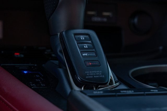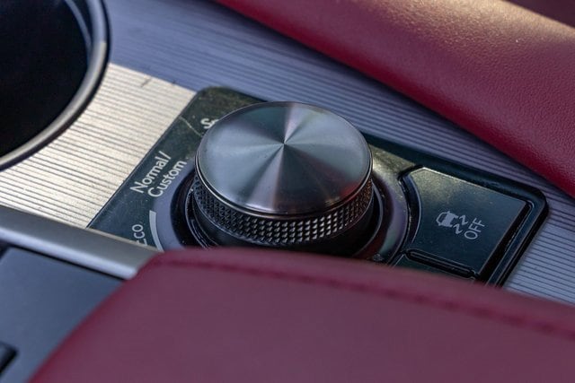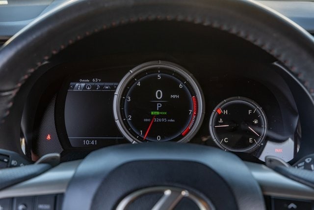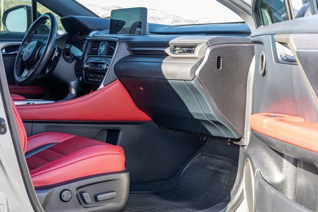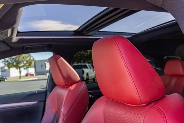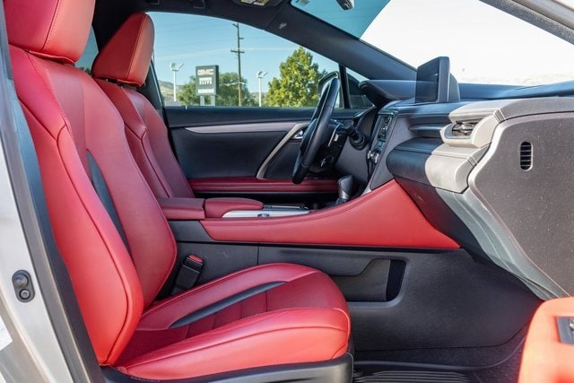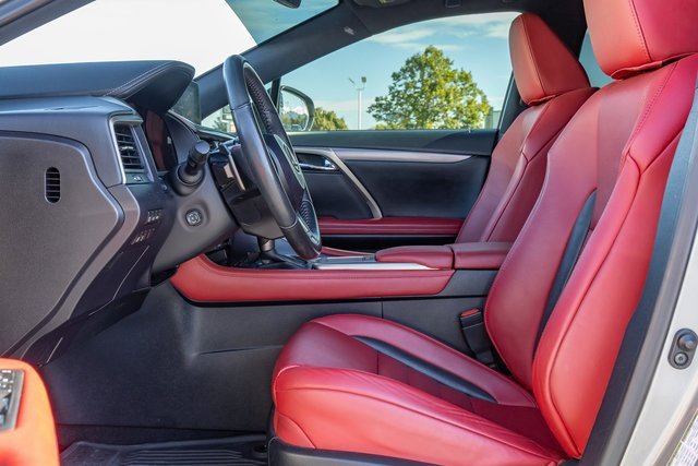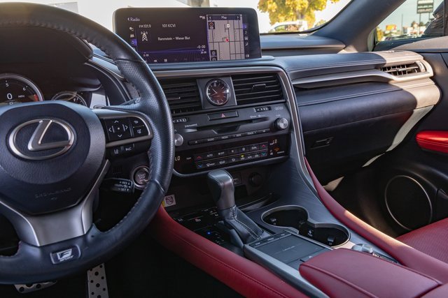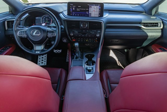 AWD, Circuit Red Artificial Leather. AWD, Circuit Red Artificial Leather, 3.329 Axle Ratio, 4-Wheel Disc Brakes, 9 Speakers, ABS brakes, Adaptive suspension, Air Conditioning, Alloy wheels, AM/FM radio: SiriusXM, AM/FM/CD Radio, Anti-whiplash front head restraints, Apple CarPlay/Android Auto, Auto High-beam Headlights, Auto tilt-away steering wheel, Auto-dimming door mirrors, Auto-dimming Rear-View mirror, Automatic temperature control, Brake assist, Bumpers: body-color, CD player, Compass, Delay-off headlights, Driver door bin, Driver vanity mirror, Dual front impact airbags, Dual front side impact airbags, Electronic Stability Control, Emergency communication system, Exterior Parking Camera Rear, F SPORT Heated Steering Wheel, F SPORT NuLuxe Seat Trim, Four wheel independent suspension, Front anti-roll bar, Front Bucket Seats, Front Center Armrest, Front dual zone A/C, Front fog lights, Front reading lights, Fully automatic headlights, Garage door transmitter: HomeLink, Heated & Ventilated F SPORT Front Bucket Seats, Heated door mirrors, Heated front seats, Heated steering wheel, Illuminated entry, Knee airbag, Leather Shift Knob, Leather steering wheel, Low tire pressure warning, Memory seat, Occupant sensing airbag, Outside temperature display, Overhead airbag, Overhead console, Panic alarm, Passenger door bin, Passenger vanity mirror, Power door mirrors, Power driver seat, Power Liftgate, Power passenger seat, Power steering, Power windows, Radio data system, Rain sensing wipers, Rear anti-roll bar, Rear reading lights, Rear seat center armrest, Rear side impact airbag, Rear window defroster, Rear window wiper, Remote keyless entry, Security system, Speed control, Speed-sensing steering, Split folding rear seat, Spoiler, Sport steering wheel, Steering wheel memory, Steering wheel mounted audio controls, Tachometer, Telescoping steering wheel, Tilt steering wheel, Traction control, Trip computer, Turn signal indicator mirrors, Variably intermittent wipers, Ventilated front seats, and Wheels: 20 F SPORT.