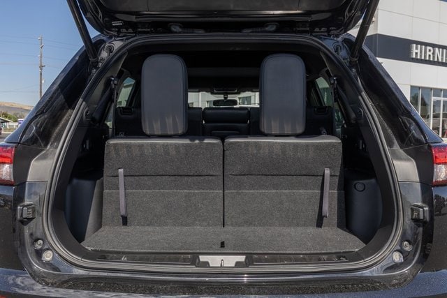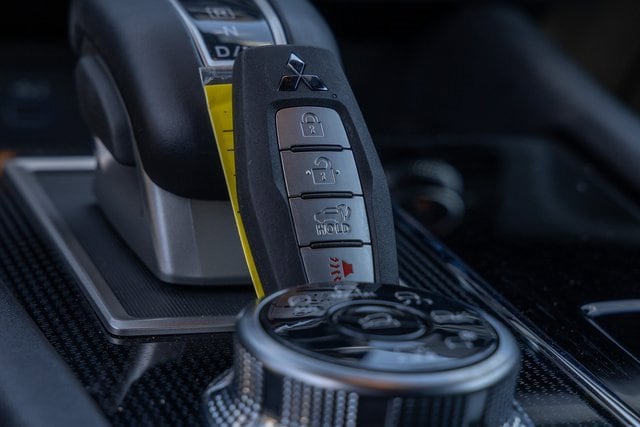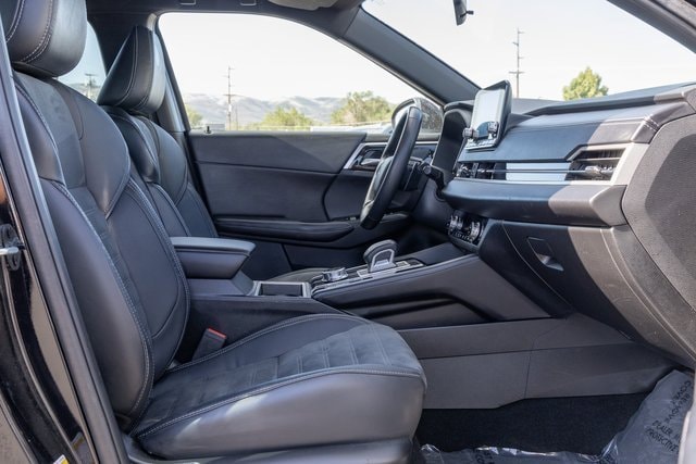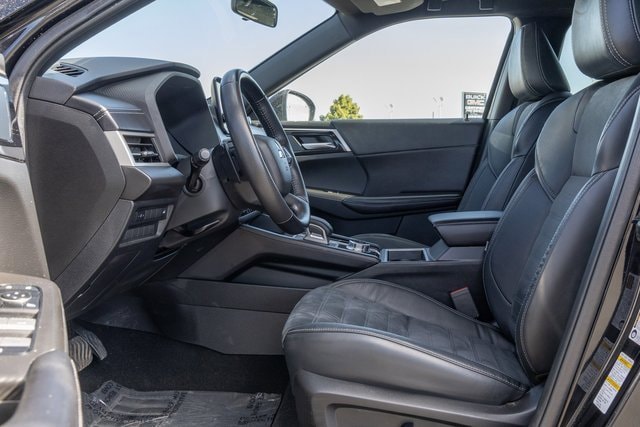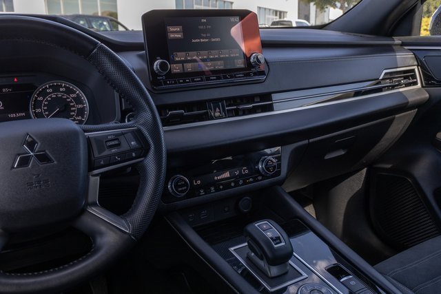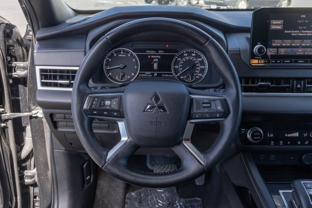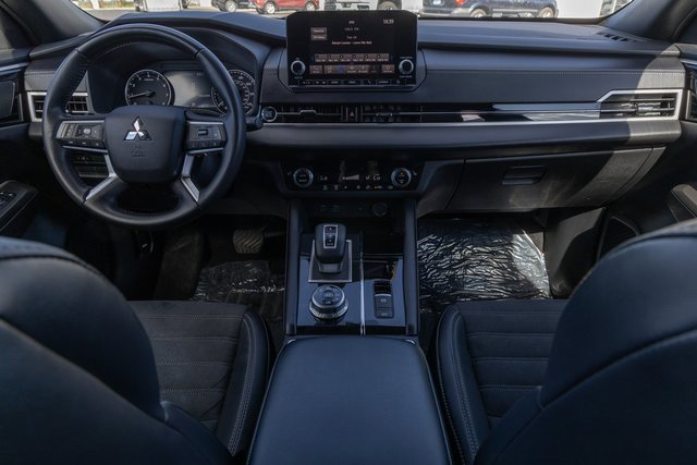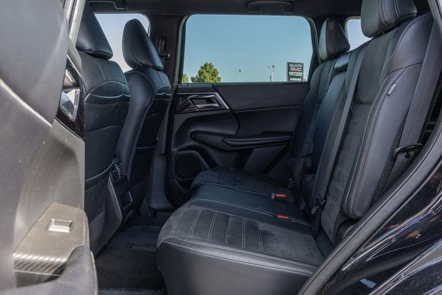 4WD. 4WD, 3rd row seats: split-bench, 4-Wheel Disc Brakes, ABS brakes, Air Conditioning, Alloy wheels, AM/FM radio: SiriusXM, Android Auto & Apple CarPlay, Auto High-beam Headlights, Automatic temperature control, Axle Ratio: 5.694, Brake assist, Bumpers: body-color, Driver door bin, Driver vanity mirror, Dual front impact airbags, Dual front side impact airbags, Electronic Stability Control, Emergency communication system: Mitsubishi Connect w/ 24-month trial, Four wheel independent suspension, Front anti-roll bar, Front Bucket Seats, Front Center Armrest w/Storage, Front dual zone A/C, Front fog lights, Front reading lights, Fully automatic headlights, Headlight cleaning, Heated door mirrors, Heated Front Bucket Seats, Heated front seats, Illuminated entry, Knee airbag, Leather Shift Knob, Leather steering wheel, Low tire pressure warning, Occupant sensing airbag, Outside temperature display, Overhead airbag, Overhead console, Panic alarm, Passenger door bin, Passenger vanity mirror, Power door mirrors, Power driver seat, Power Liftgate, Power steering, Power windows, Radio data system, Rain sensing wipers, Rear anti-roll bar, Rear seat center armrest, Rear side impact airbag, Rear window defroster, Rear window wiper, Reclining 3rd row seat, Remote keyless entry, Security system, Speed control, Speed-Sensitive Wipers, Split folding rear seat, Spoiler, Steering wheel mounted audio controls, Synthetic Leather Seat Trim, Tachometer, Telescoping steering wheel, Tilt steering wheel, Traction control, Trip computer, Turn signal indicator mirrors, and Variably intermittent wipers.